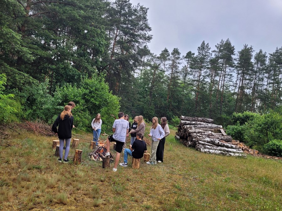 3 czerwca 2024 r. odbyło się ognisko klasowe klasy VIII pod patronatem Nadleśnictwa Wyszków. W wydarzeniu wzięli udział uczniowie klasy VIII wraz z wychowawczynią oraz rodzice, którzy pomogli w organizacji imprezy.