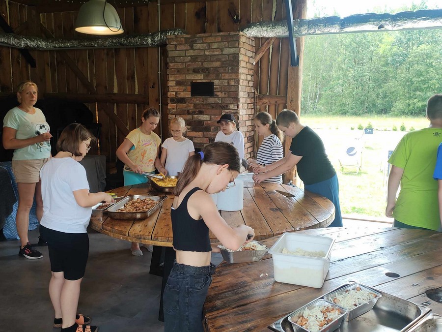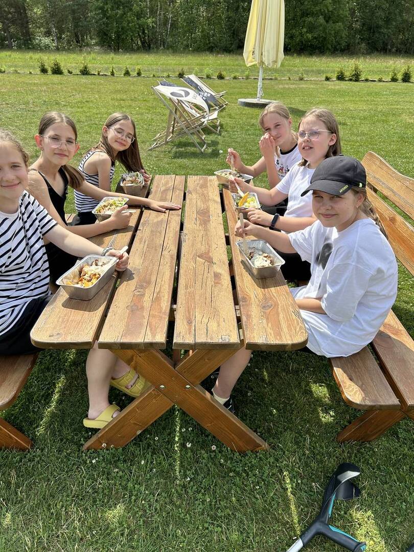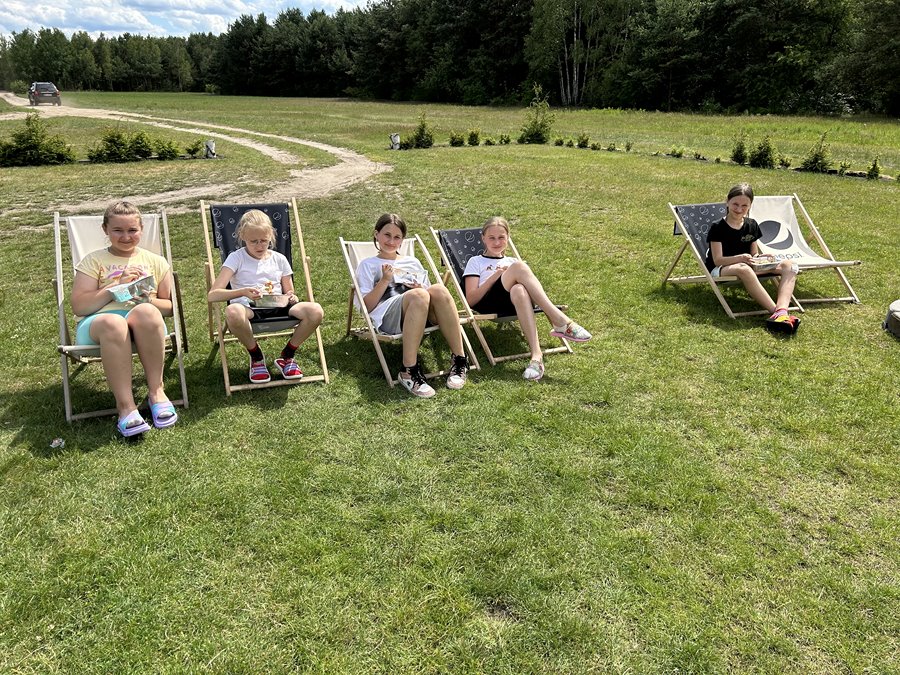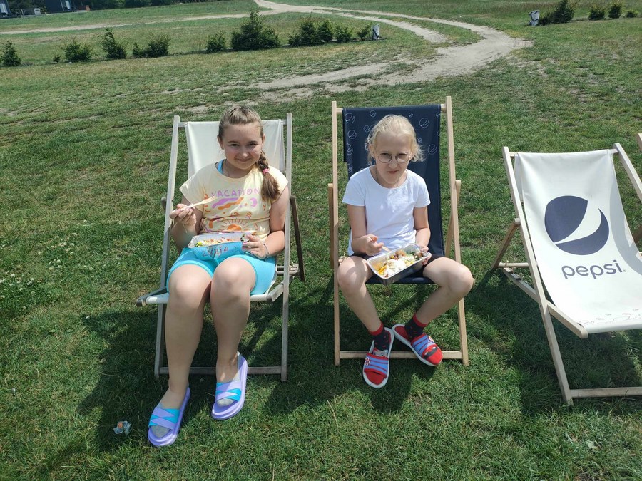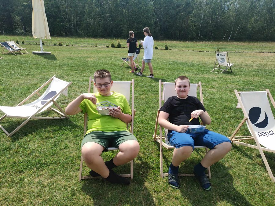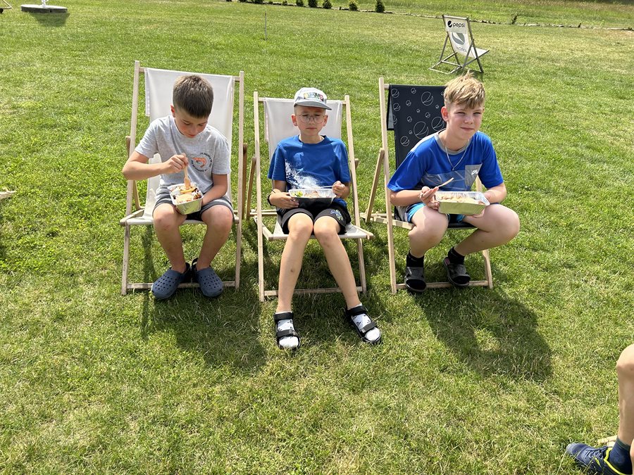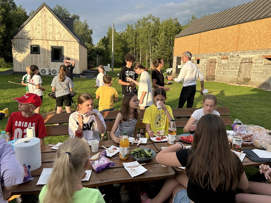 W dniach 18.06 - 19.06.2024 r. uczniowie klas piątych pod opieką p. Svitlany Hrechko, p. Anny Dąbkowskiej i p. Radosława Heronimka udali się na biwak do Fazendy Folwark. Pogoda dopisała, było pięknie i słonecznie. Zbieraliśmy szyszki w lesie, braliśmy udział w warsztatach kulinarnych. Przygotowaliśmy przepyszne kapsalony wraz z kucharzem. Smażyliśmy kiełbaski na ognisku oraz braliśmy udział w grach i zabawach integracyjnych. Dołączyli do nas także nasi rodzice. Największą atrakcją była kąpiel w baliach z podgrzewaną wodą oraz nocowanie w stodole w śpiworach. Wspaniale spędziliśmy czas a następnego dnia zmęczeni, ale zadowoleni wróciliśmy do domu.