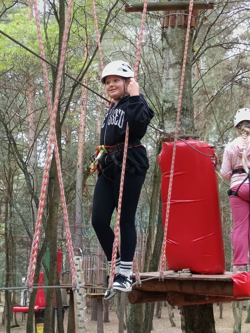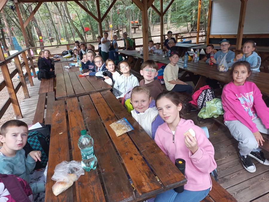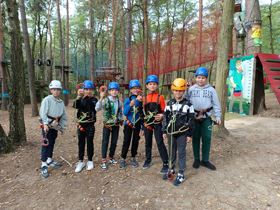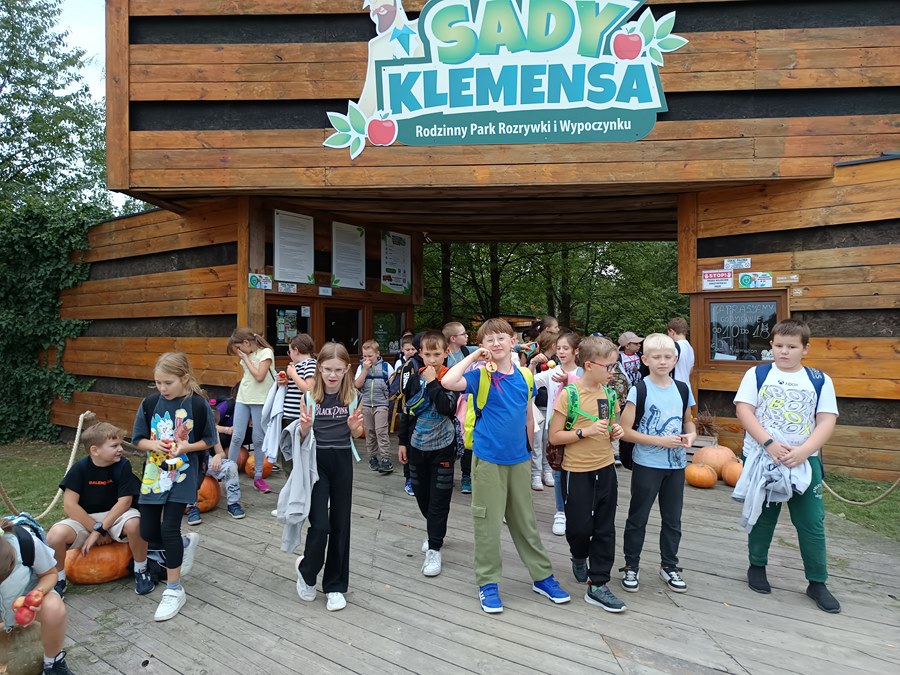 26 września uczniowie klas III uczestniczyli w wycieczce do Rodzinnego Parku Rozrywki i Wypoczynku „Sady Klemensa”. To wyjątkowe miejsce pełne atrakcji. Uczniowie spędzali tam czas na zabawach w ogromnej piaskownicy, brzozowym labiryncie, na torze przeszkód, w klockowni, zabawach na dmuchańcach, kretowisku, wspinaczce po ażurowym jabłku, strachowisku, a dla zmęczonych dostępna była strefa leżakowania. Największą jednak atrakcją okazał się Park Linowy, który był świetnym treningiem kształtującym siłę, zwinność, równowagę i koordynację ruchową. Trzecioklasiści wrócili do domów zmęczeni, ale bardzo zadowoleni.