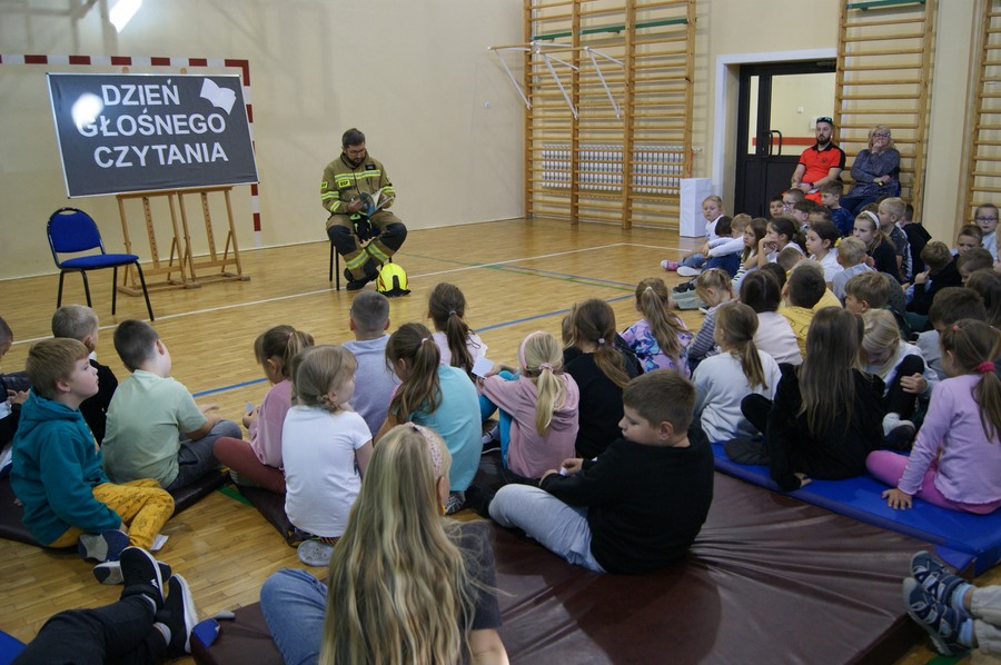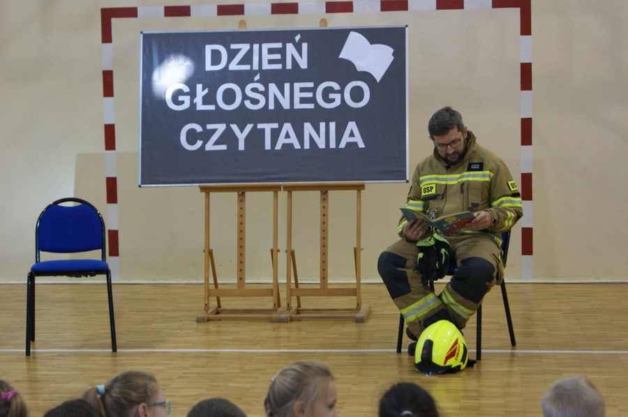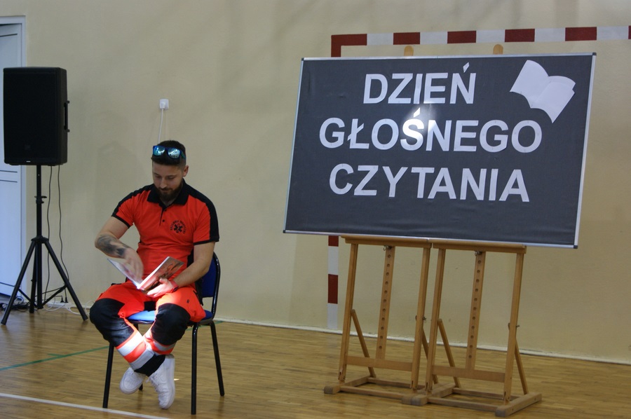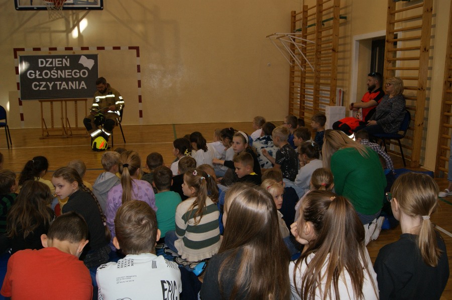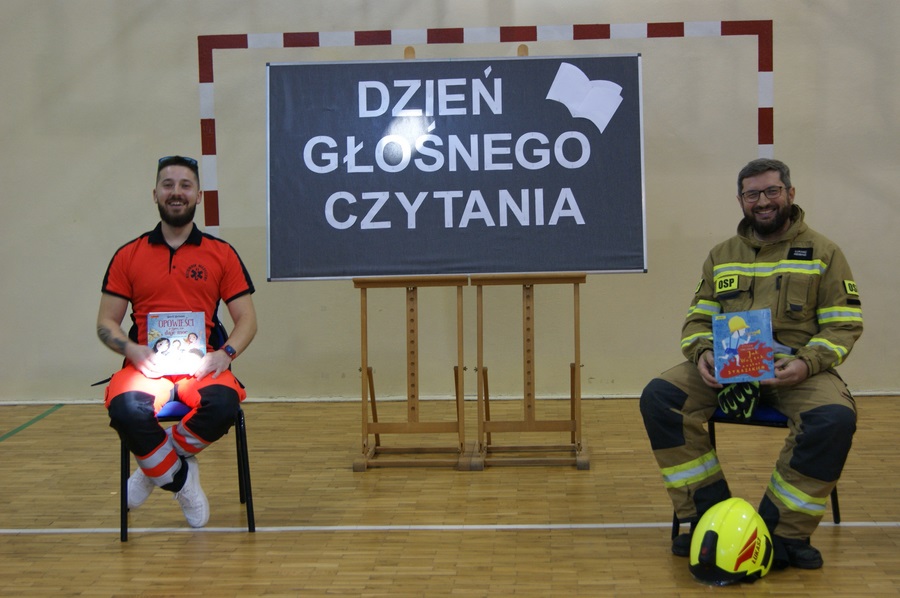 Dzień Głośnego Czytania upłynął nam w tym roku pod hasłem bezpieczeństwa. Zaprosiliśmy ratownika Medycznego pana Mateusza Sępkowskiego i strażaka ochotnika pana Łukasza Reisinga, aby przeczytali nam fragmenty książek ze swojej dziedziny> Panowie przyjęli nasze zaproszenie, przyszli nawet w swoich mundurach. Przygotowali fragmenty książek „Jak Wojtek został strażakiem” i „Opowieści o tym co daje moc”. Bardzo im dziękujemy.