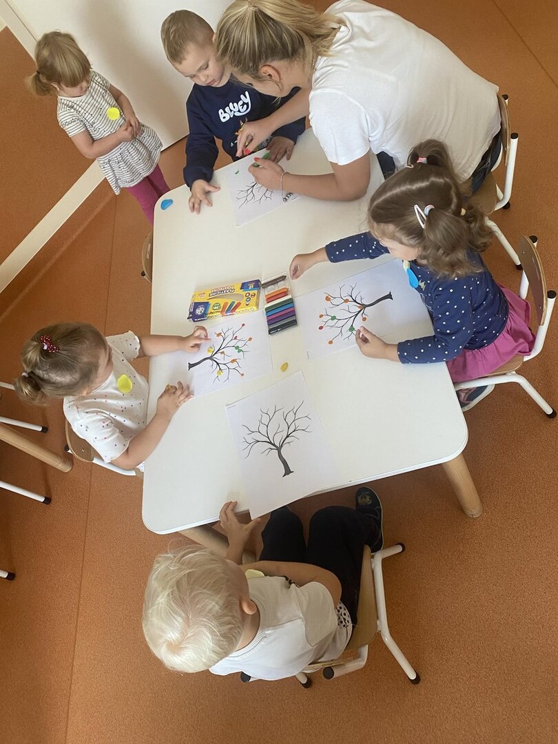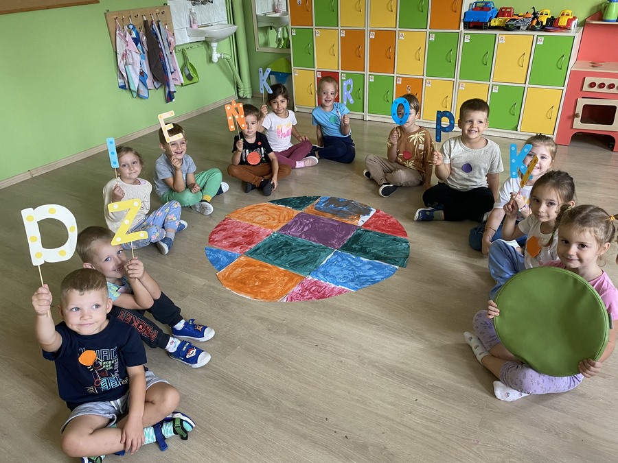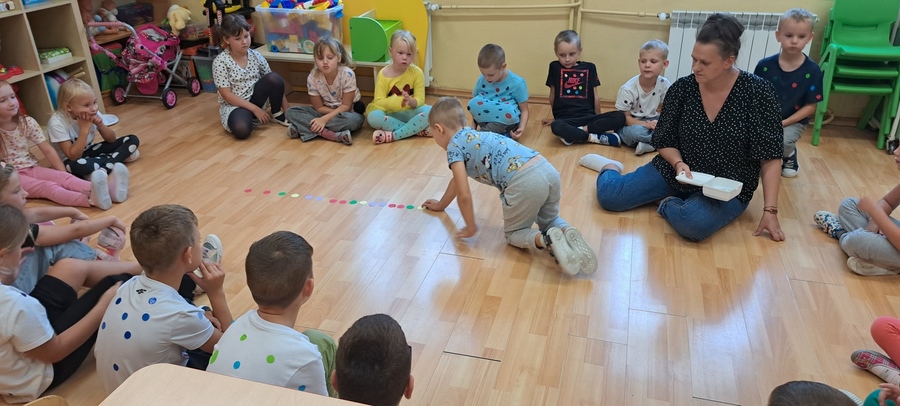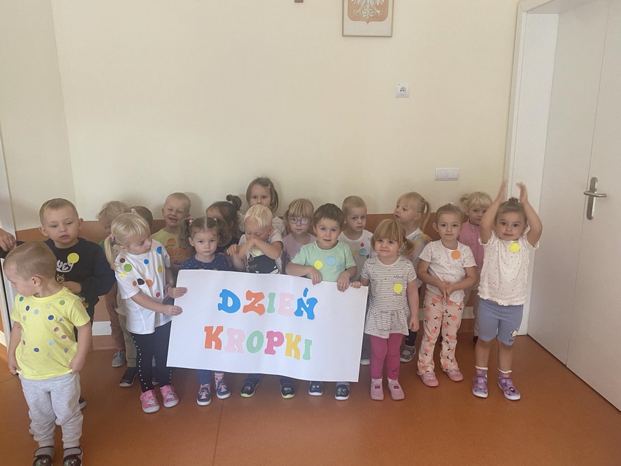 Dzień Kropki jest to święto kreatywności i odwagi. Tego dnia nasze zabawy wypełnione były kolorowymi kropkami. Na zajęciach poznaliśmy genezę tego święta. Dzieci uważnie wysłuchały opowiadania, jak to zwyczajna kropka zmieniła świat małej dziewczynki o imieniu Vashti. Historia ta uświadomiła przedszkolakom, że każdy z nas ma jakieś ukryte zdolności, TALENTY. Kropki gościły zarówno w zabawach ruchowych jak i matematycznych.