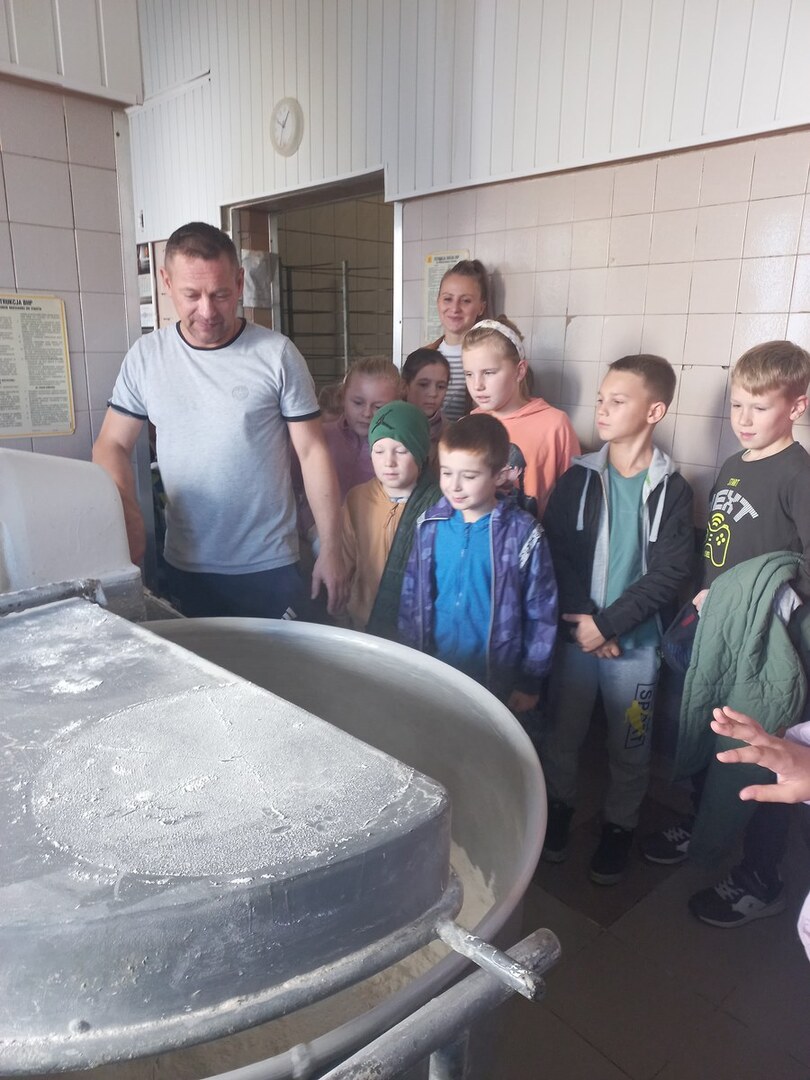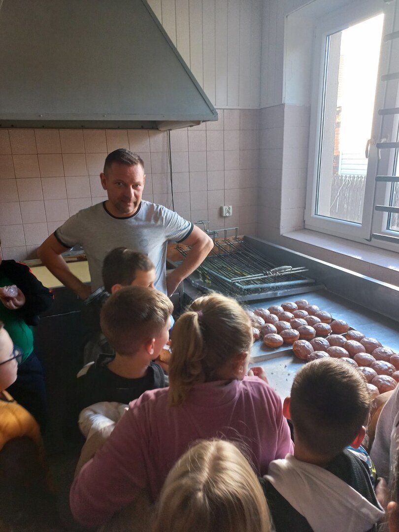 8 października uczniowie klas III wybrali się z wizytą do Piekarni Państwa Icińskich w Długosiodle. Celem było poznanie pracy piekarza oraz kolejnych etapów powstawania pieczywa. Pan Adam zaprezentował dzieciom w jaki sposób piecze się chleb, jak wyrabia bułeczki. Największe wrażenie na trzecioklasistach zrobiły maszyny, które pomagają w pracy piekarzowi: ogromne misy na ciasto, wózki na upieczony chleb oraz wielkie łopaty do wyjmowania pieczywa z pieca. Szczególną uwagę uczniowie zwrócili na ogromny piec, który miał wielopoziomowe drzwiczki. Pan Adam wyjaśnił również dzieciom w jakiej temperaturze i w jakim czasie pieczony jest chleb. Na koniec wszyscy zostali poczęstowani przepysznymi pączkami. Jeszcze raz bardzo dziękujemy Panu Adamowi za przybliżenie pracy piekarza, okazaną gościnność i bardzo miłą atmosferę.