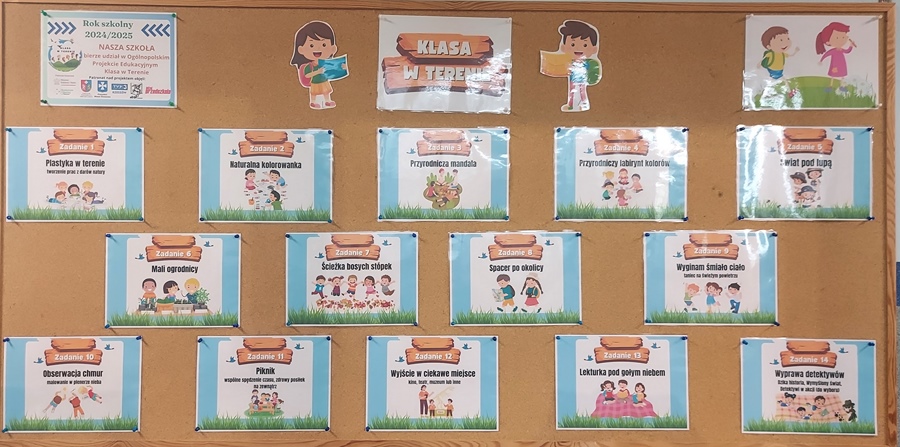 W roku szkolnym 2024/2025 uczniowie klas I-III biorą udział w Ogólnopolskim Projekcie Edukacyjnym „Klasa w terenie”, którego głównym celem jest promowanie wartości edukacji na świeżym powietrzu.