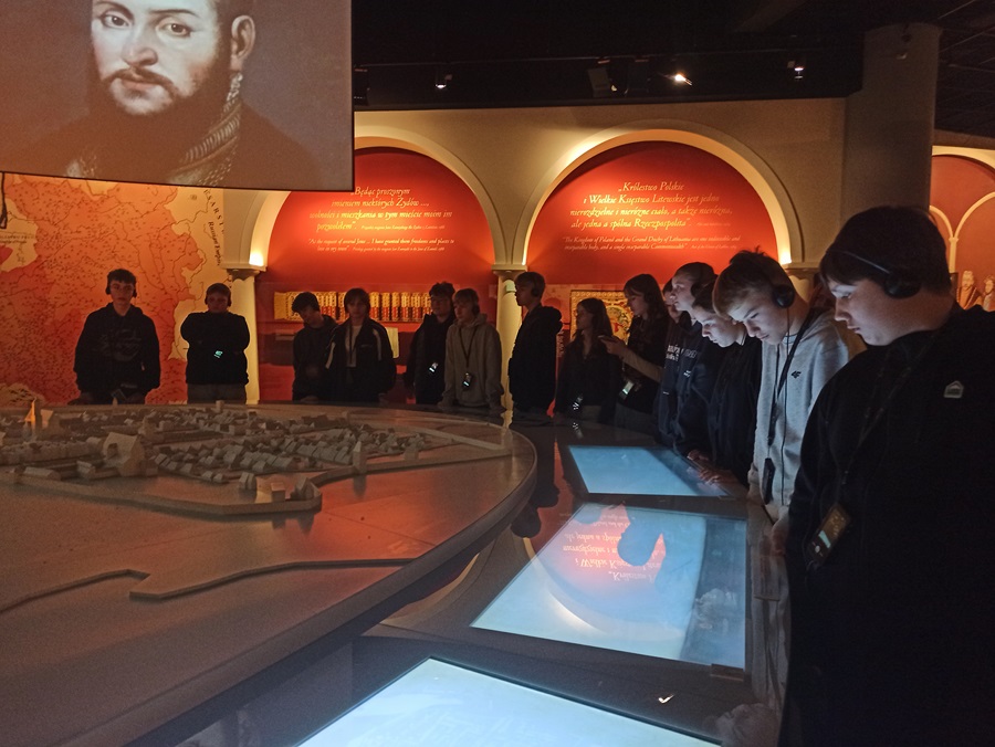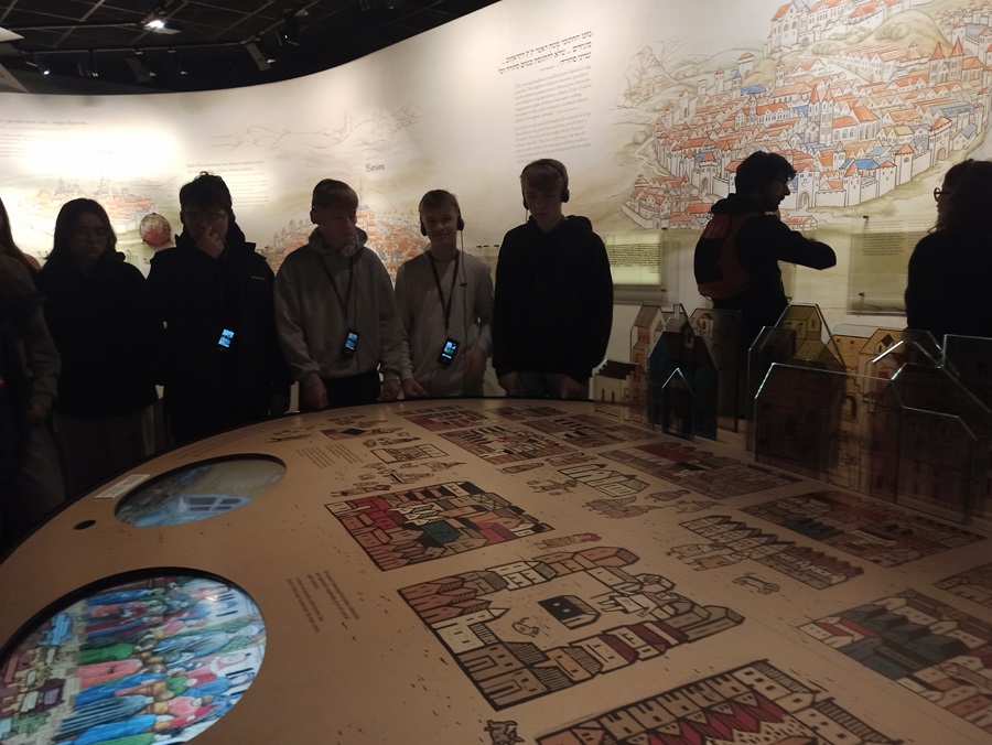 Kolejnym punktem programu była wizyta w Muzeum Historii Żydów Polskich POLIN. Zwiedzanie interaktywnych wystaw było niepowtarzalną okazją do wzbogacenia wiadomości nie tylko na temat mniejszości żydowskiej, ale też na temat historii Polski. Uświadomiło nam, czym jest wielokulturowość, co wnosi do życia jednostki i grupy.