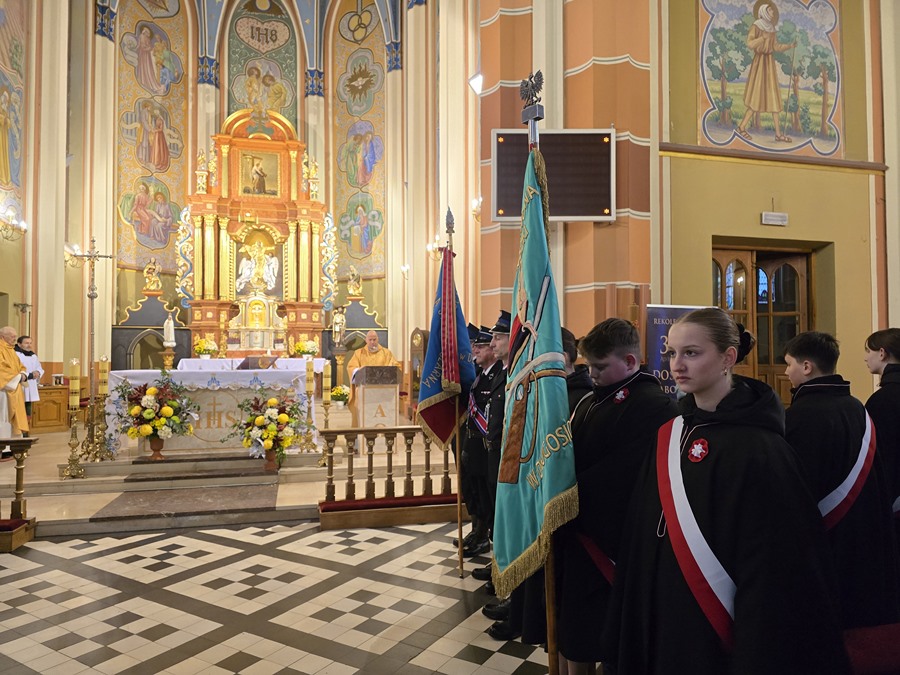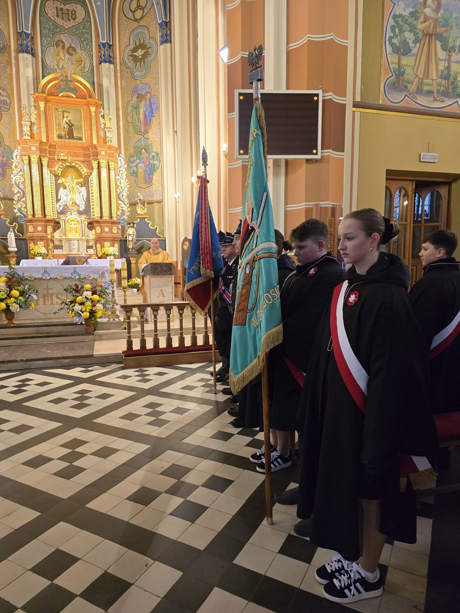 Udział Pocztu Sztandarowego w mszy świętej z okazji 106. rocznicy odzyskania przez Polskę niepodległości, 11.11.2024 r.