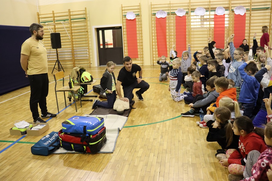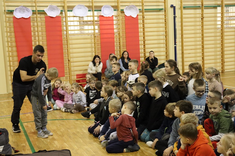 7 listopada uczniów klas I-III odwiedzili strażacy Ochotniczej Straży Pożarnej w Długosiodle - p. Łukasz Reising oraz p. Grzegorz Szydlik. Podczas spotkania dzieci mogły dowiedzieć się, jak wygląda codzienna służba strażaka, jakich sprzętów używają oraz jakie są podstawowe zasady bezpieczeństwa pożarowego. Strażacy przypomnieli dzieciom jak udzielać pierwszej pomocy lub jak zachować się w razie pożaru. Spotkania tego typu są nie tylko pouczające, ale także bardzo inspirujące dla młodszych uczniów i często budzą ogromne zainteresowanie oraz szacunek do pracy strażaków.