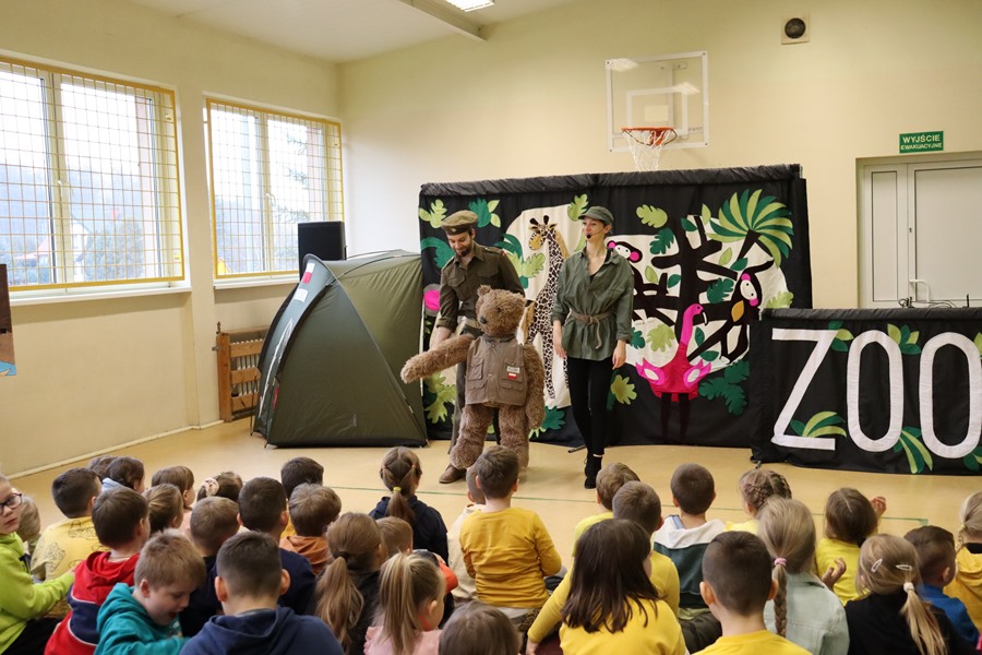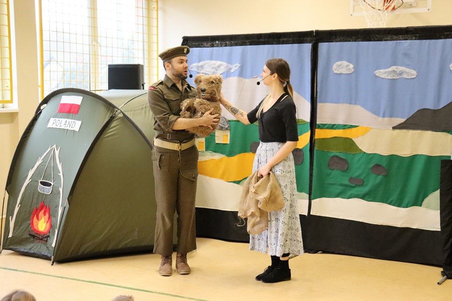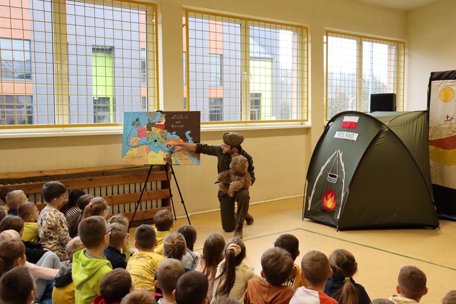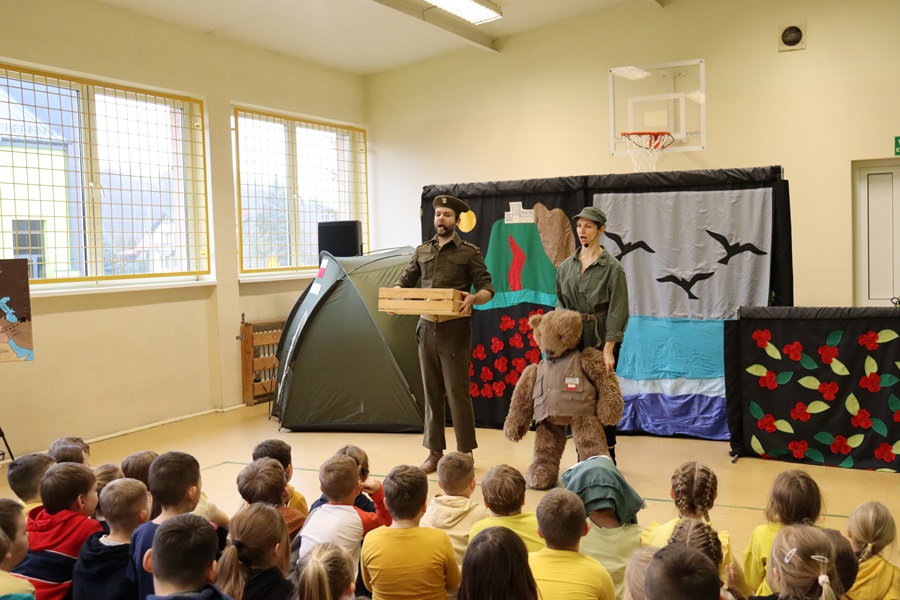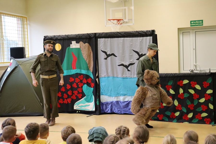 To niezwykła opowieść oparta na prawdziwej historii o niedźwiedziu Wojtku, który podczas II wojny światowej stał się symbolem odwagi i przyjaźni wśród polskich żołnierzy. Spektakl w ciekawy i przystępny sposób przybliżył dzieciom tę piękną historię, łącząc elementy edukacyjne z dobrą zabawą.