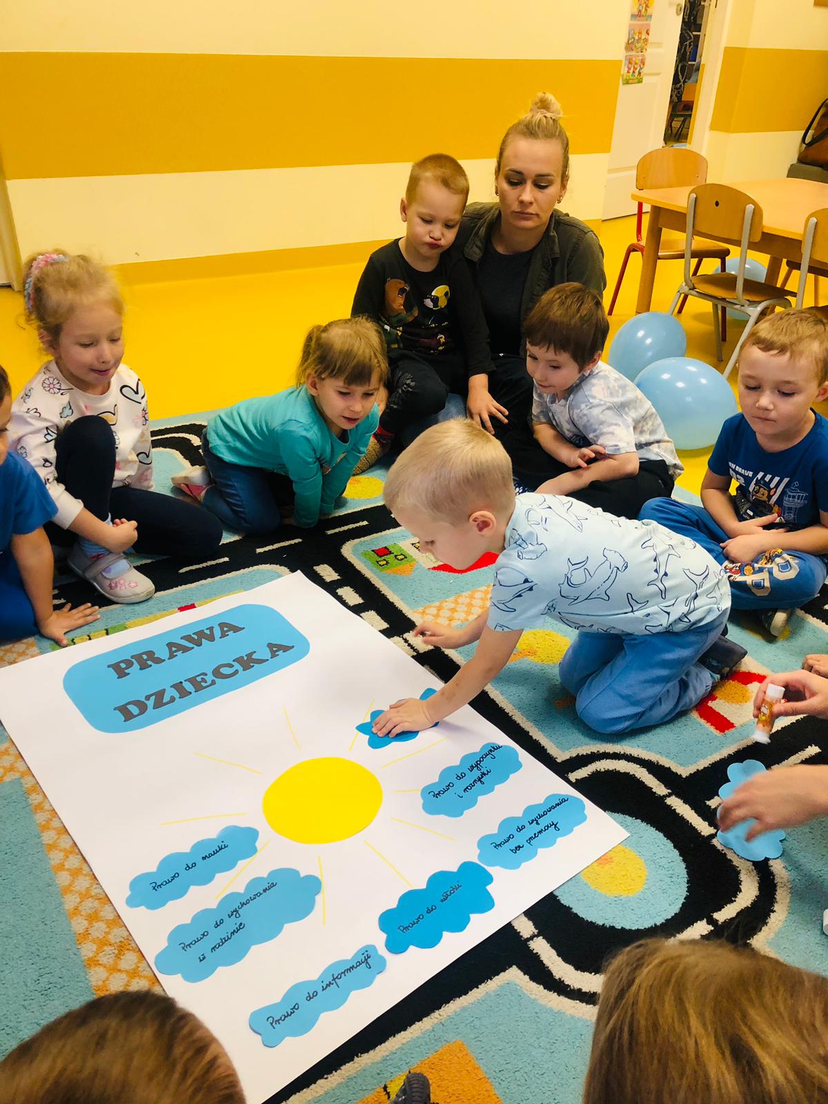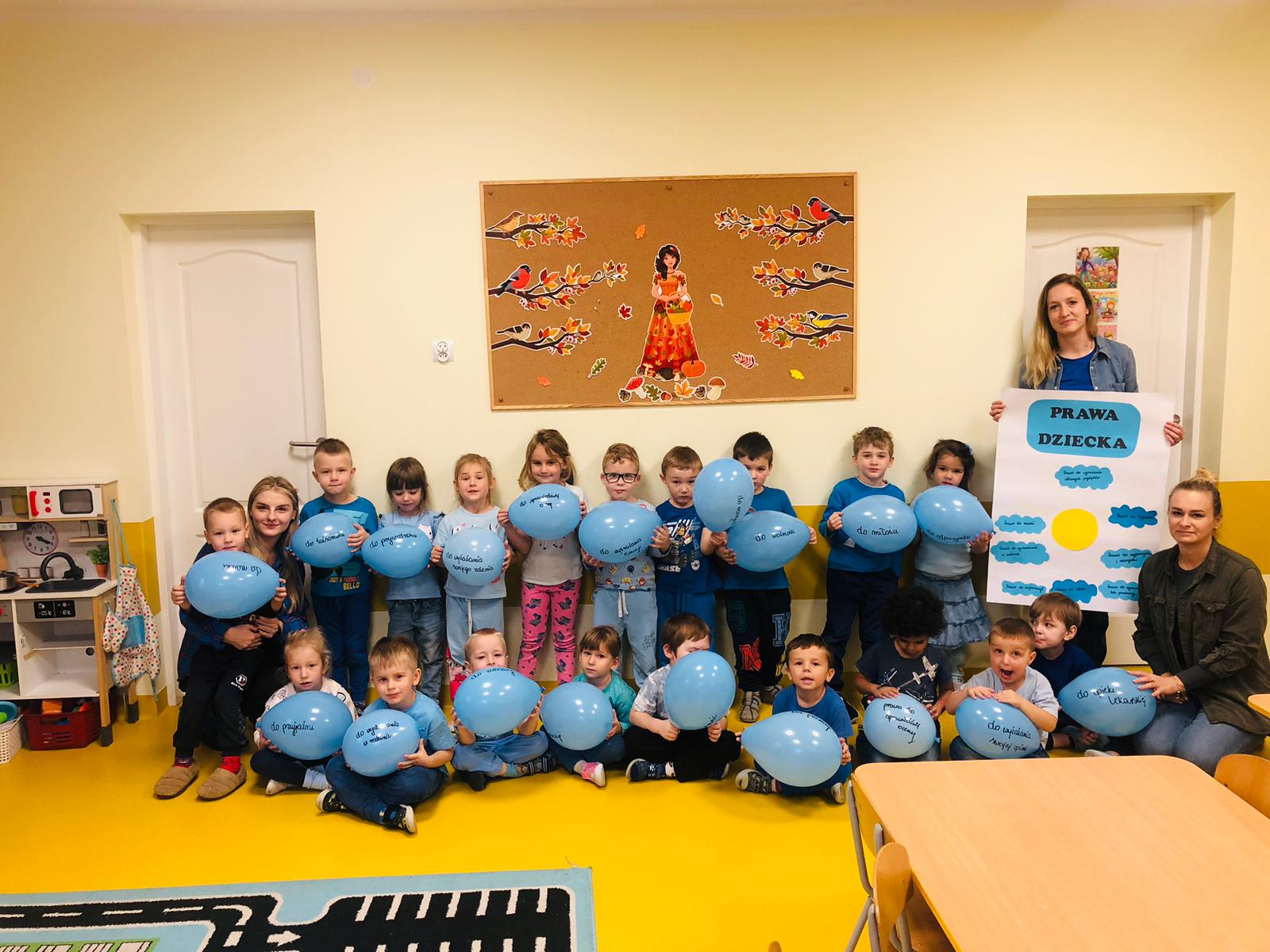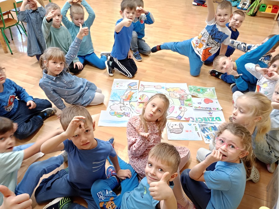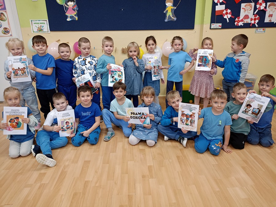 20.11.2024r. świętowaliśmy w naszym przedszkolu Międzynarodowy Dzień Praw Dziecka. Jest to moment, w którym uwaga wszystkich kierowana jest na dzieci i ich prawa. Tego dnia dzieci, nauczyciele oraz pracownicy naszego przedszkola przyszli ubrani na niebiesko lub mieli na sobie jakiś niebieski dodatek. Niebieski jest bowiem kolorem UNICEF- symbolizuje jedność z dziećmi na całym świecie. We wszystkich grupach odbyły się tematyczne zajęcia. Przedszkolaki oglądały prezentację multimedialną, bajki na podstawie których wypowiadały się na temat swoich praw, kolorowały obrazki przedstawiające dzieci różnych ras oraz wykonywały plakaty ,,Prawa dziecka”. Dzięki podjętym w tym dniu działaniom przedszkolaki wiedzą, że mają prawo do radości, uśmiechu, zabawy, odpoczynku, rodziny, miłości, spokojnej nauki i ciekawego poznawania otaczającego je świata. Ale taki dzień jest także okazją do tego, abyśmy My - dorośli nigdy o tych prawach nie zapominali. Wierzymy, że dobrze ugruntowana wiedza dziecka, poczucie jego własnej wartości oraz świadomość swoich praw da dobre podstawy do tego aby w przyszłości stać się wspaniałym człowiekiem. Pamiętajmy o tym!