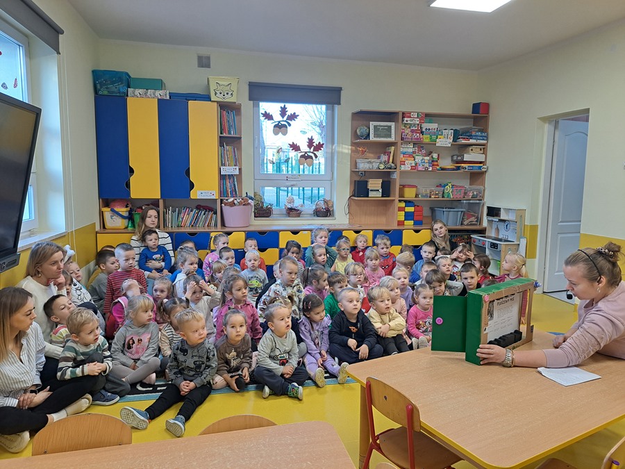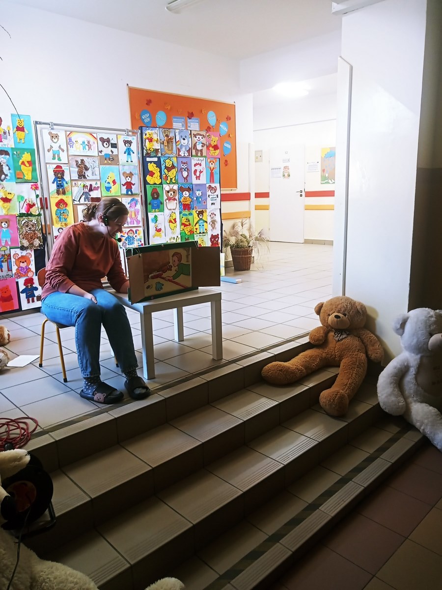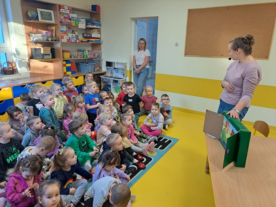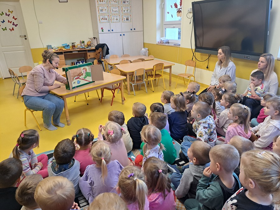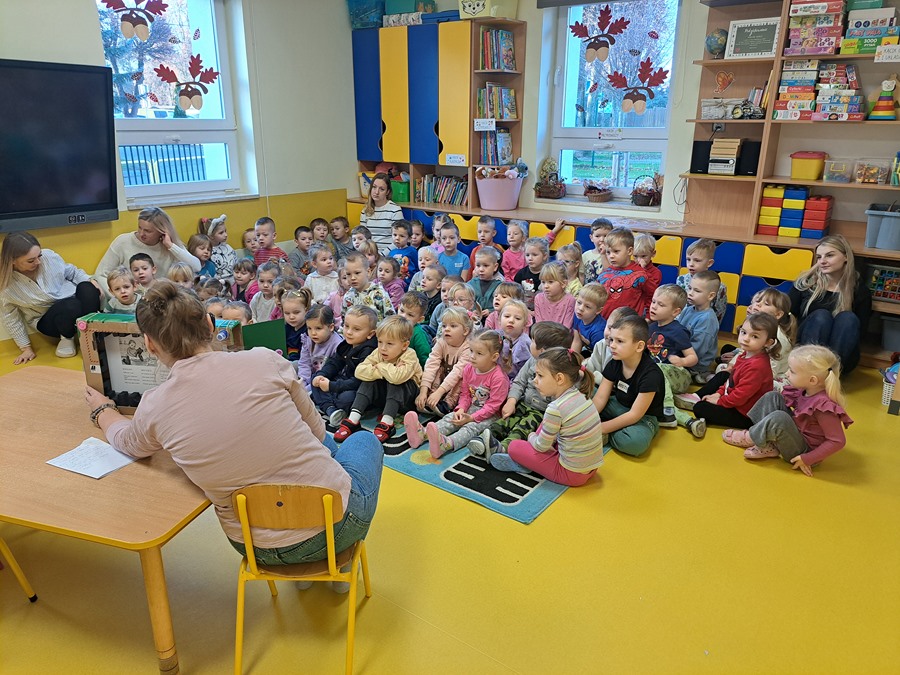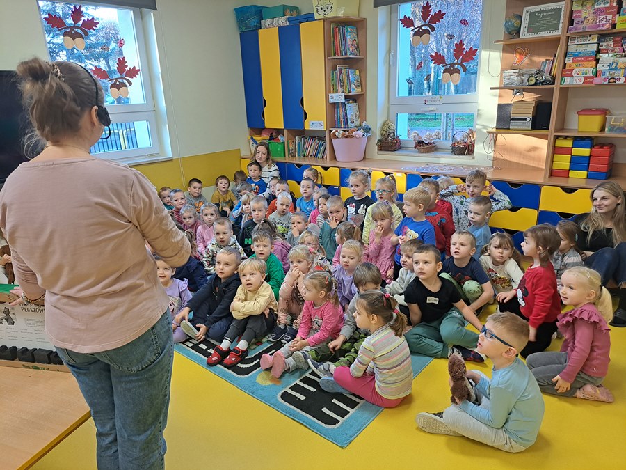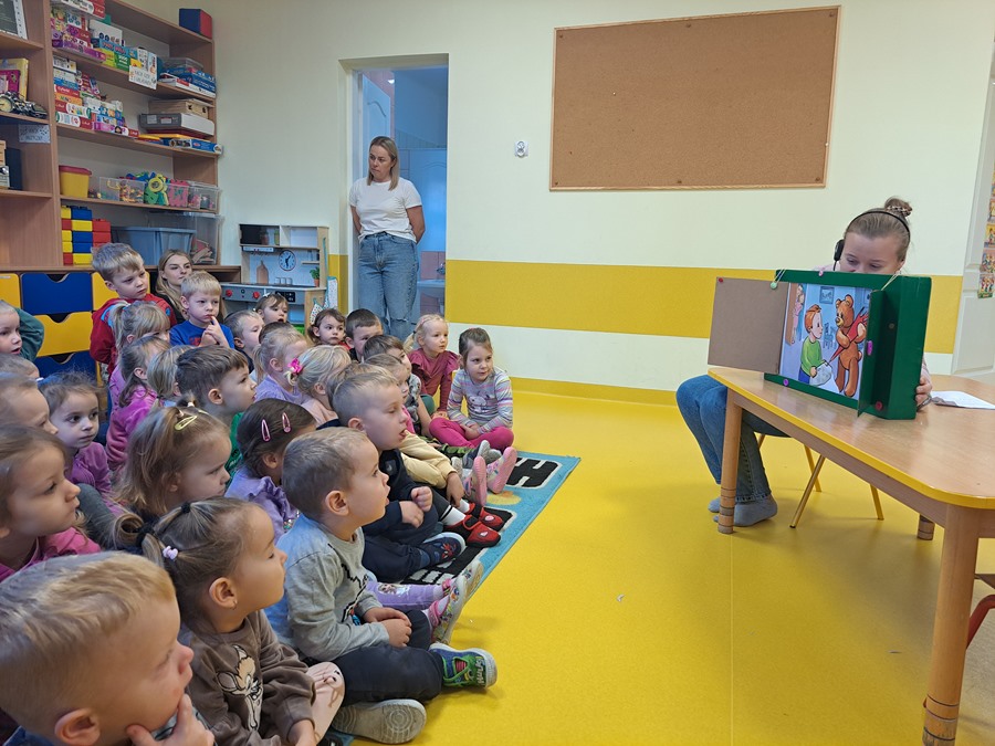 Z okazji Święta Pluszowego Misia Pani Kinga przedstawiła dzieciom opowiadanie pt. ,,Mój przyjaciel Pluszowy Miś”. Była to historia przyjaźni małego chłopca o imieniu Adaś z Pluszowym Misiem, przedstawiona za pomocą teatrzyku kamishibai. Akcja bajki rozgrywa się w realnym świecie. Chłopiec dzieli z misiem swoje smutki i radości. Być może misie przedszkolaków opowiedzą nam znacznie więcej o swoich ciekawych przygodach.