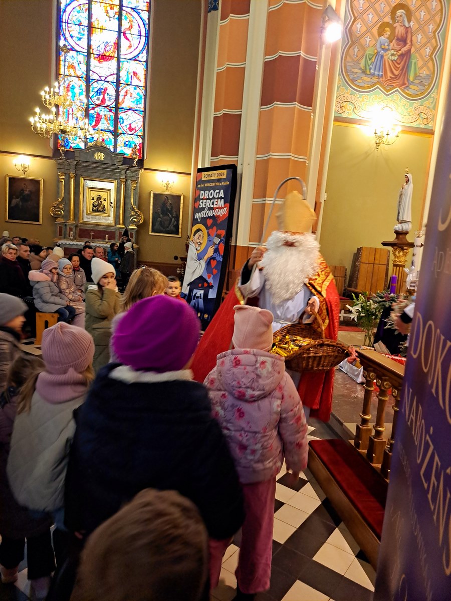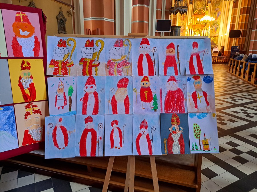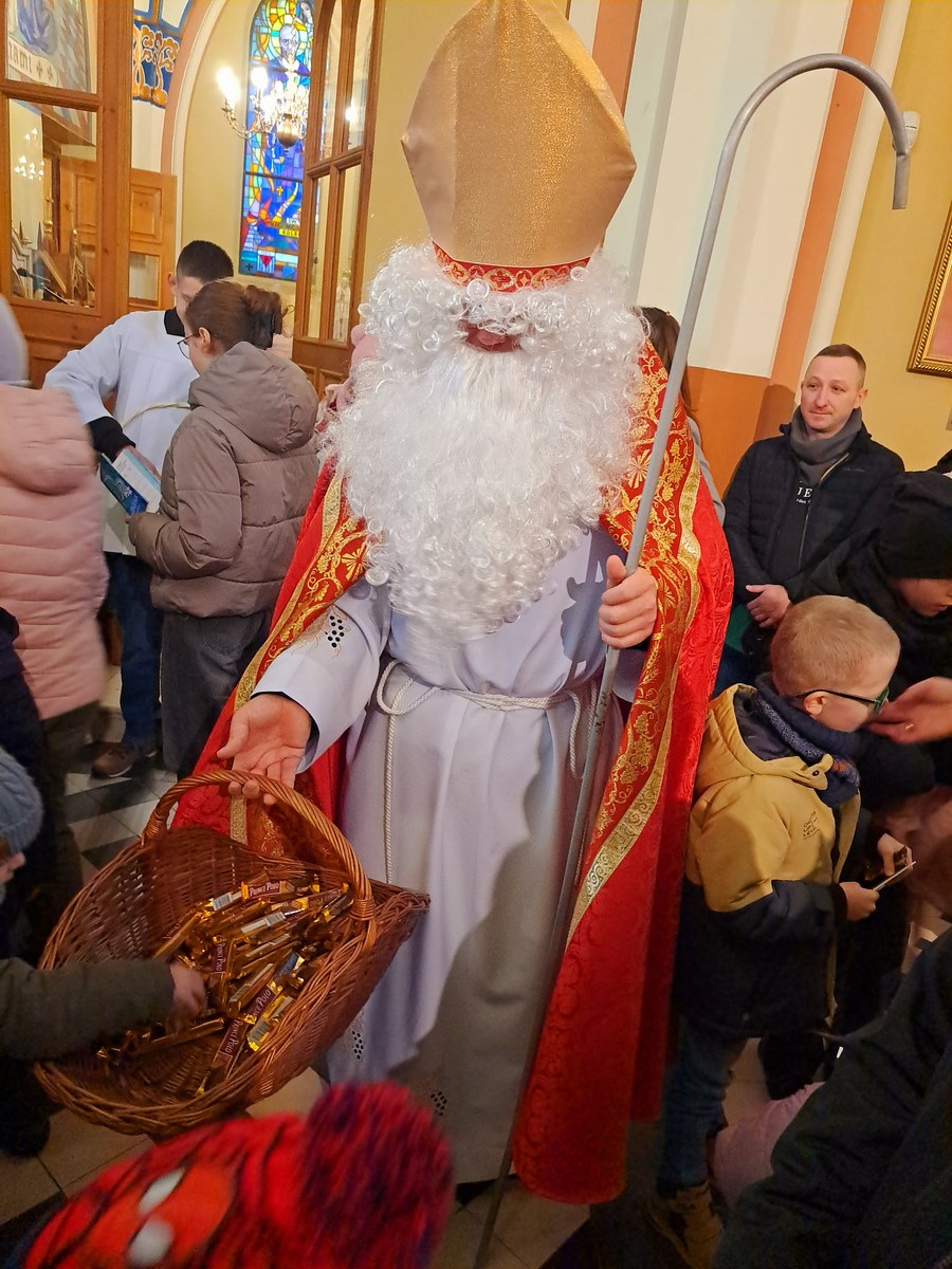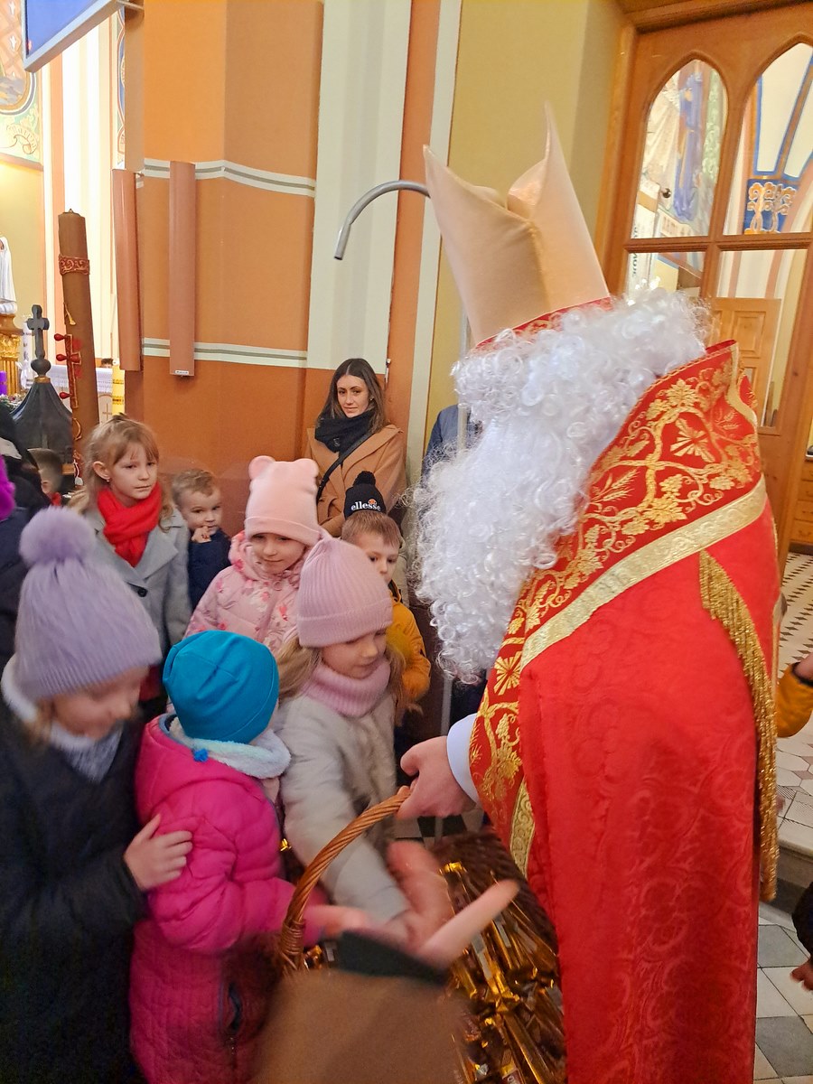 Tradycją naszego przedszkola jest udział we Mszy Świętej Adwentowej, która wprowadza nas w nowy okres liturgiczny. Dzieci, rodzice i pracownicy modlili się w intencji swoich rodzin. Podniosłym momentem, który zgromadził dużo dzieci była procesja z darami. Przedszkolaki niosły słodycze, które zostaną przekazane do domów seniora. Dzieci wspólnym śpiewem i wyrecytowaniem Modlitwy Wiernych wielbiły Pana Boga. Piękną oprawą artystyczną, była również wystawa prac dzieci przedstawiająca Św. Mikołaj z Miry, który zasłynął pomocą ubogim, ratował ludzi przed zagrożeniami i niesprawiedliwością, dokonując cudów. Pod koniec Mszy, oczom dzieci ukazała się postać biskupa, którego malowały. Mikołaj podziękował dzieciom, za przepiękne prace oraz obdarował je słodkimi niespodziankami. Chcemy serdecznie podziękować Mikołajowi za jego wizytę oraz wszystkim, którzy pomogli zorganizować tą piękna uroczystość. Jesteśmy wdzięczni, że mogliśmy wspólnie celebrować ten czas radości i dobroci. Święty Biskup zapewne uśmiecha się z Nieba widząc, że nadal naśladuję się jego zachowanie pełne dobroci i miłości do drugiego człowieka. Życzymy aby czas Adwentu stał się dla wszystkich okresem duchowego przygotowania do Świąt Bożego Narodzenia.