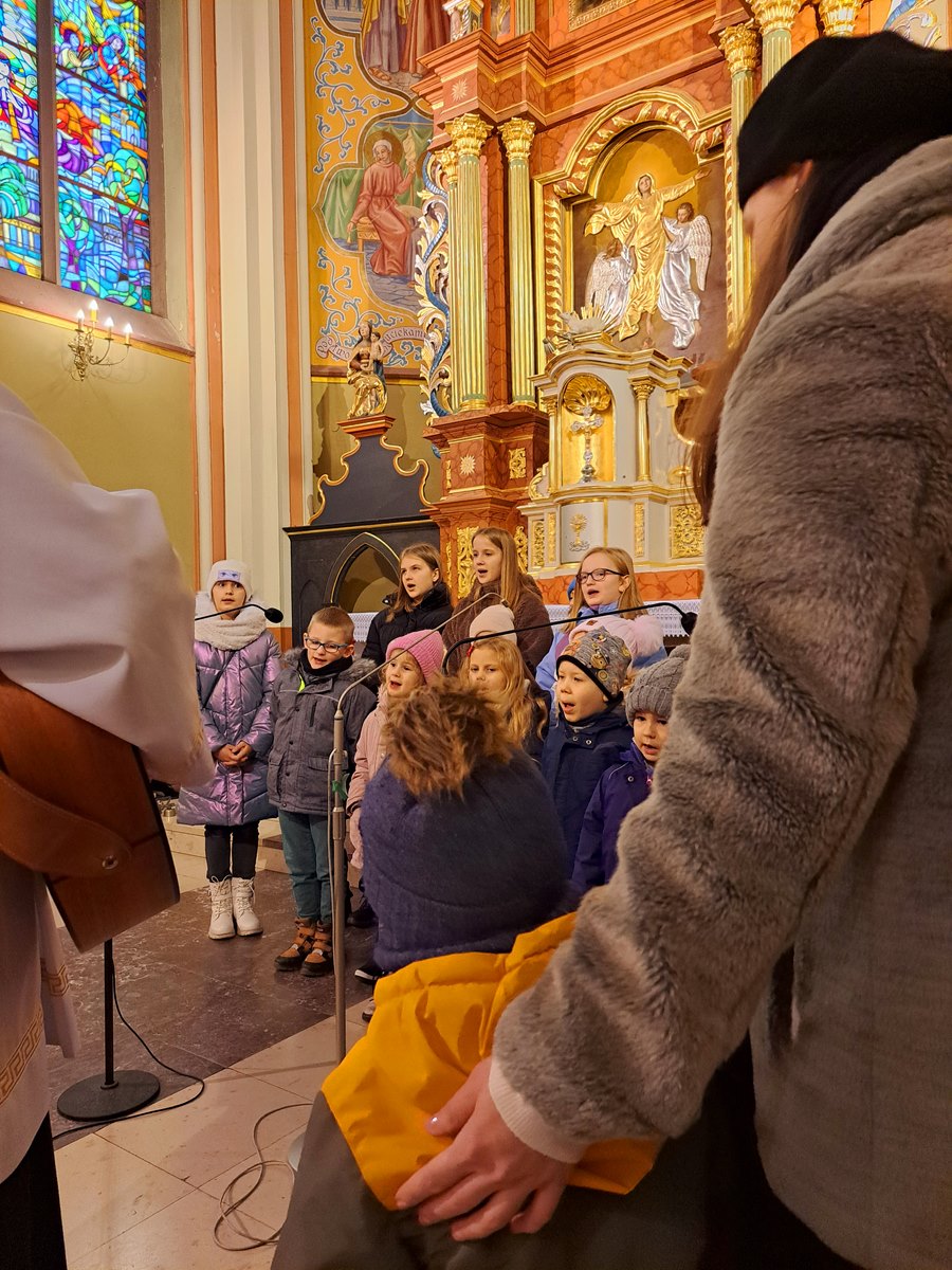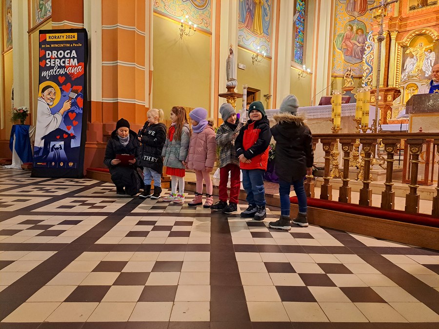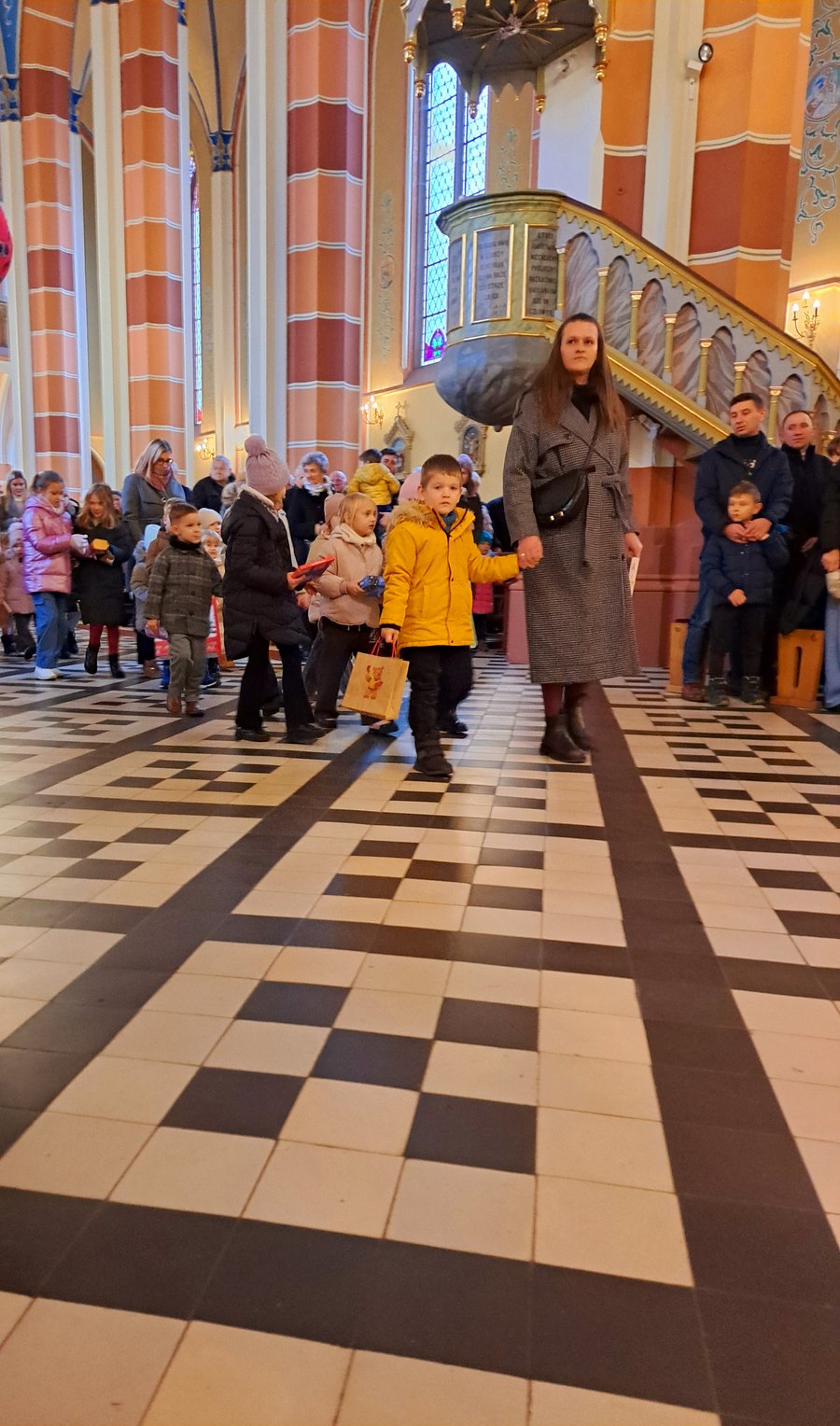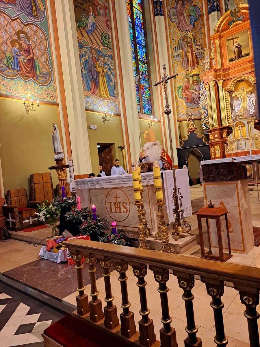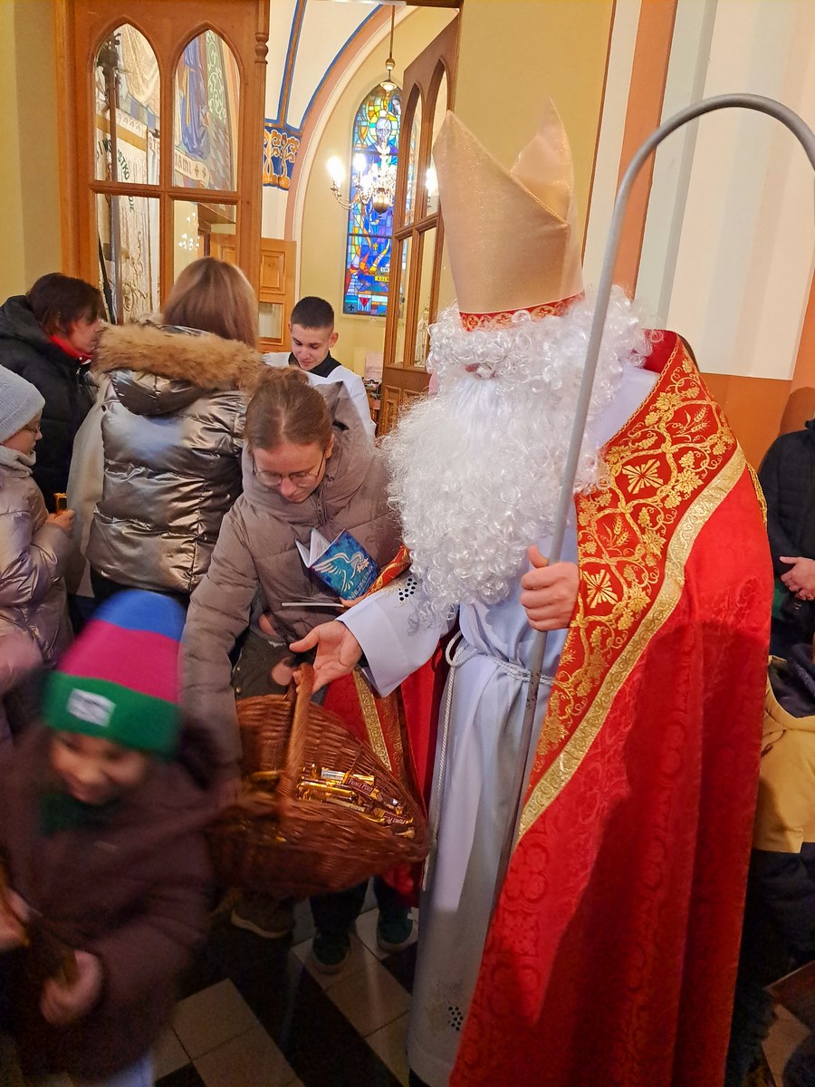 Tradycją naszego przedszkola jest udział we Mszy Świętej Adwentowej, która wprowadza nas w nowy okres liturgiczny. Dzieci, rodzice i pracownicy modlili się w intencji swoich rodzin. Podniosłym momentem, który zgromadził dużo dzieci była procesja z darami. Przedszkolaki niosły słodycze, które zostaną przekazane do domów seniora. Dzieci wspólnym śpiewem i wyrecytowaniem Modlitwy Wiernych wielbiły Pana Boga. Piękną oprawą artystyczną, była również wystawa prac dzieci przedstawiająca Św. Mikołaj z Miry, który zasłynął pomocą ubogim, ratował ludzi przed zagrożeniami i niesprawiedliwością, dokonując cudów. Pod koniec Mszy, oczom dzieci ukazała się postać biskupa, którego malowały. Mikołaj podziękował dzieciom, za przepiękne prace oraz obdarował je słodkimi niespodziankami. Chcemy serdecznie podziękować Mikołajowi za jego wizytę oraz wszystkim, którzy pomogli zorganizować tą piękna uroczystość. Jesteśmy wdzięczni, że mogliśmy wspólnie celebrować ten czas radości i dobroci. Święty Biskup zapewne uśmiecha się z Nieba widząc, że nadal naśladuję się jego zachowanie pełne dobroci i miłości do drugiego człowieka. Życzymy aby czas Adwentu stał się dla wszystkich okresem duchowego przygotowania do Świąt Bożego Narodzenia.