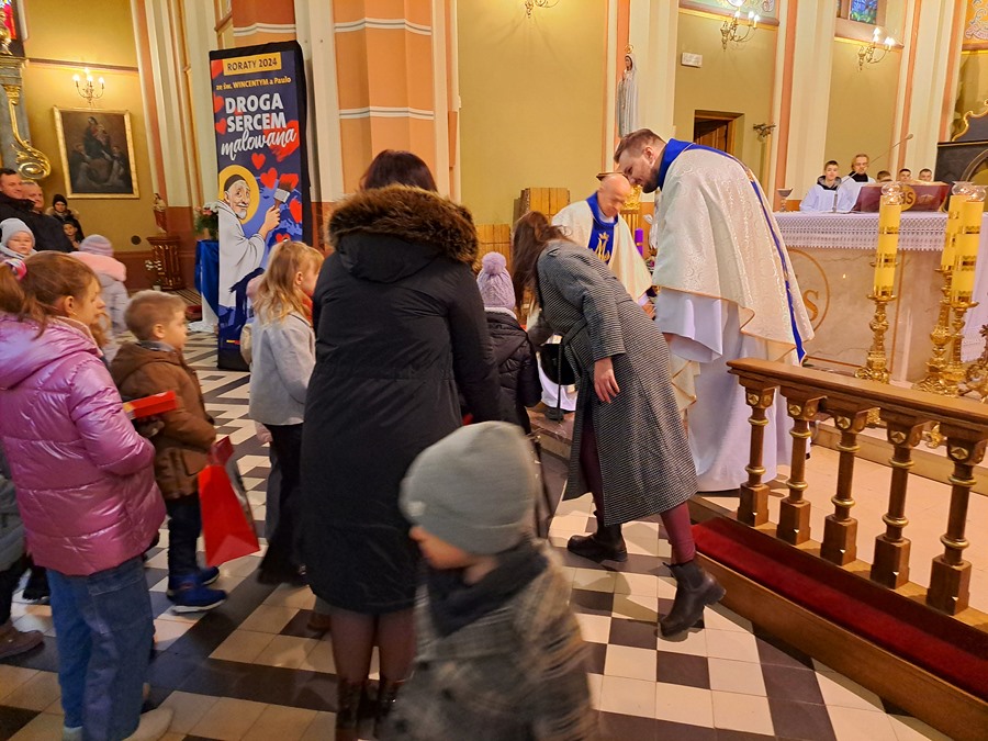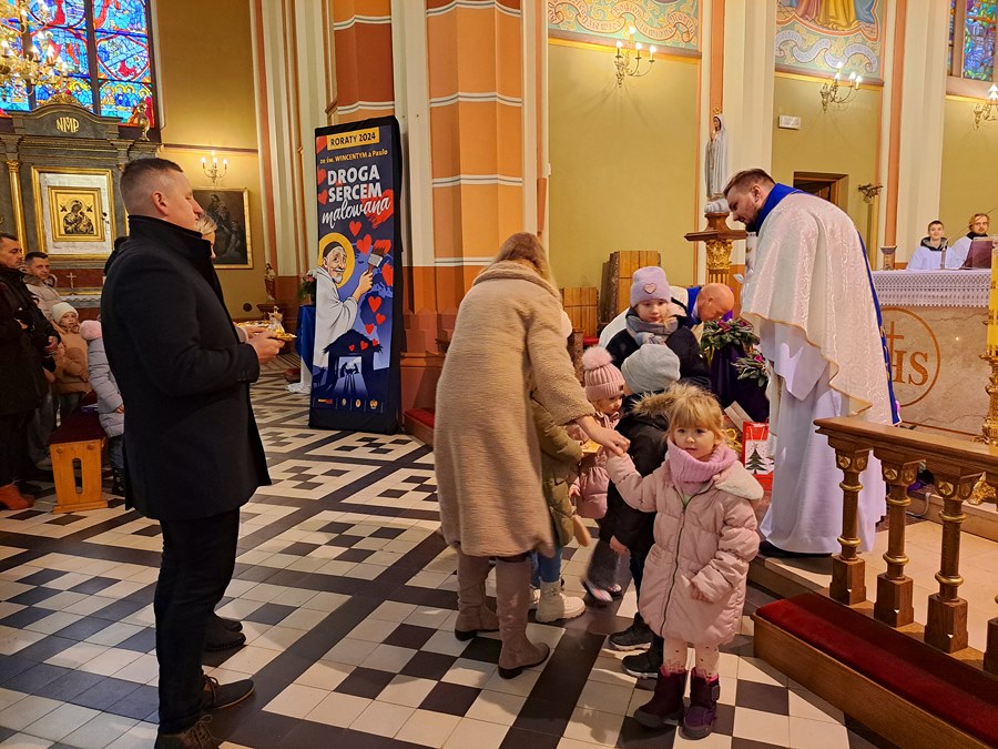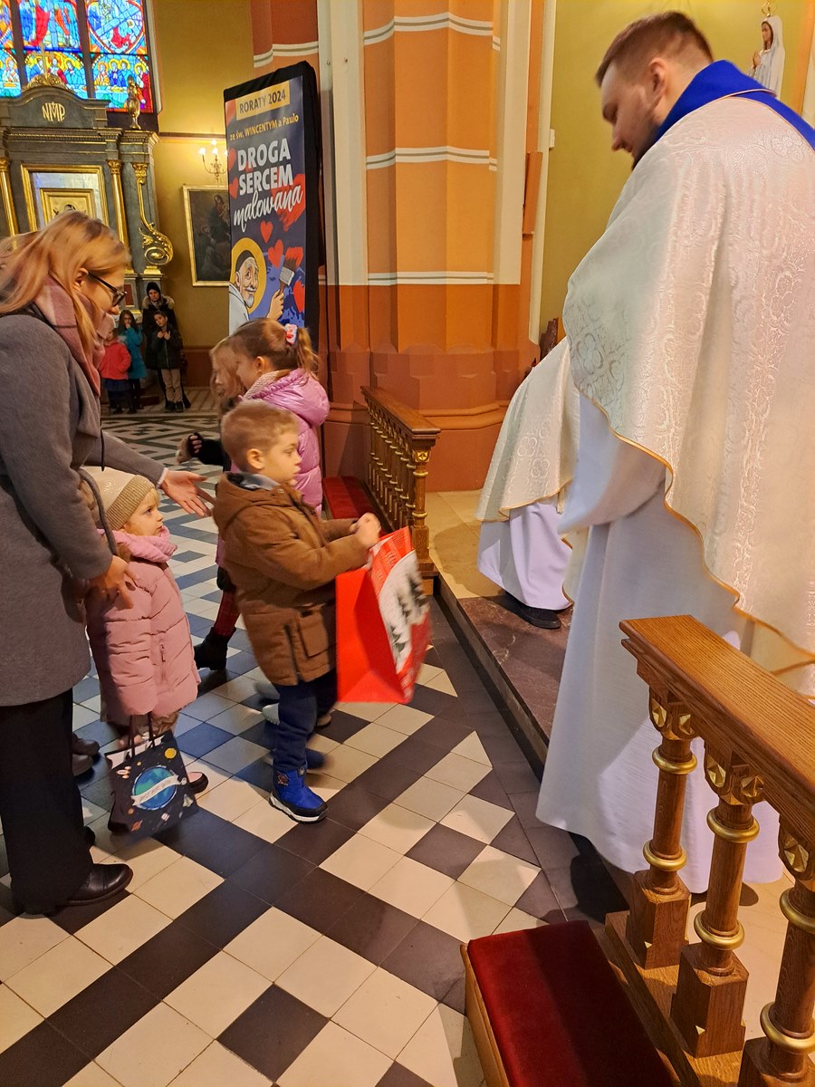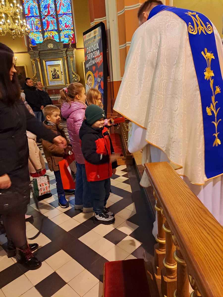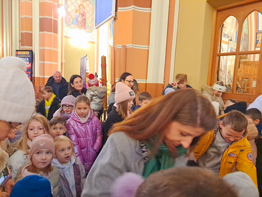 Tradycją naszego przedszkola jest udział we Mszy Świętej Adwentowej, która wprowadza nas w nowy okres liturgiczny. Dzieci, rodzice i pracownicy modlili się w intencji swoich rodzin. Podniosłym momentem, który zgromadził dużo dzieci była procesja z darami. Przedszkolaki niosły słodycze, które zostaną przekazane do domów seniora. Dzieci wspólnym śpiewem i wyrecytowaniem Modlitwy Wiernych wielbiły Pana Boga. Piękną oprawą artystyczną, była również wystawa prac dzieci przedstawiająca Św. Mikołaj z Miry, który zasłynął pomocą ubogim, ratował ludzi przed zagrożeniami i niesprawiedliwością, dokonując cudów. Pod koniec Mszy, oczom dzieci ukazała się postać biskupa, którego malowały. Mikołaj podziękował dzieciom, za przepiękne prace oraz obdarował je słodkimi niespodziankami. Chcemy serdecznie podziękować Mikołajowi za jego wizytę oraz wszystkim, którzy pomogli zorganizować tą piękna uroczystość. Jesteśmy wdzięczni, że mogliśmy wspólnie celebrować ten czas radości i dobroci. Święty Biskup zapewne uśmiecha się z Nieba widząc, że nadal naśladuję się jego zachowanie pełne dobroci i miłości do drugiego człowieka. Życzymy aby czas Adwentu stał się dla wszystkich okresem duchowego przygotowania do Świąt Bożego Narodzenia.