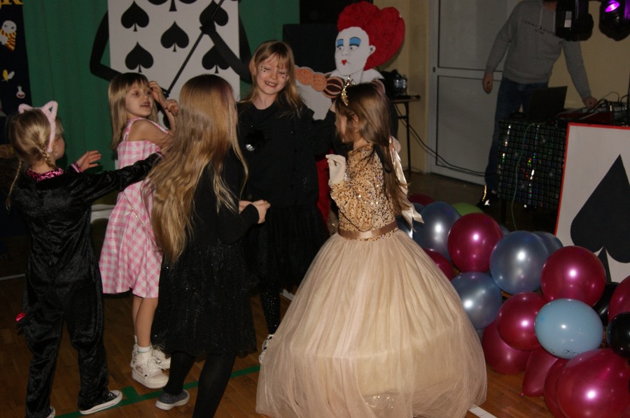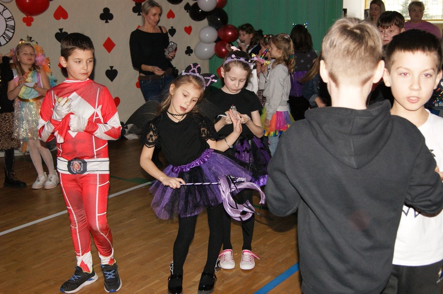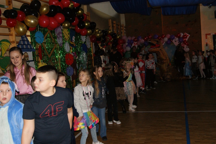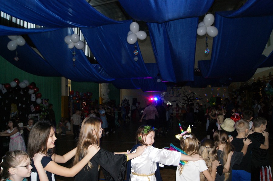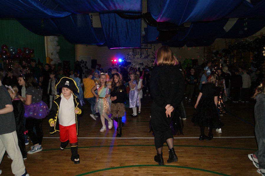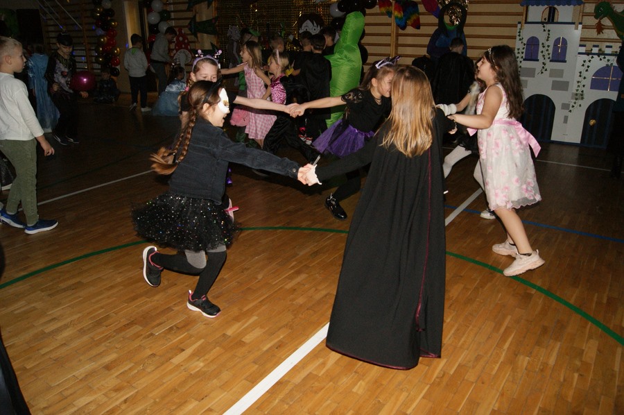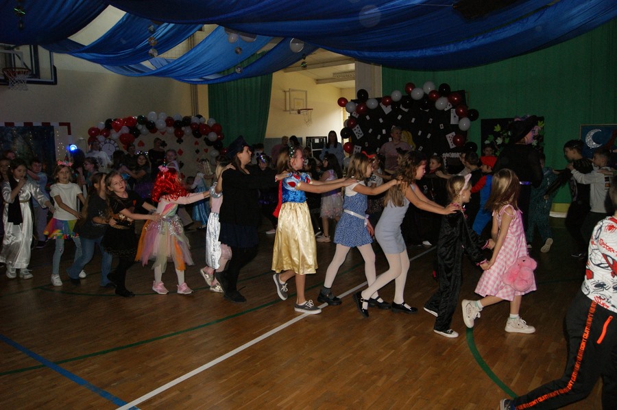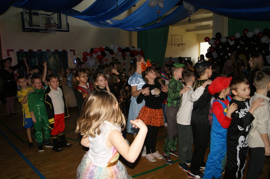 Bal rozpoczął się od wspólnego tańca, który wprowadził wszystkich w radosny nastrój. Uczniowie bawili się przy rytmach ulubionych przebojów. W programie znalazły się konkursy oraz zabawy zręcznościowe. Podczas balu nie zabrakło również słodkich przekąsek oraz kanapek, które dodały wszystkim energii do dalszej zabawy. Dzięki zaangażowaniu uczniów, nauczycieli i rodziców, tegoroczna zabawa była wyjątkowa i na długo pozostanie w naszej pamięci.