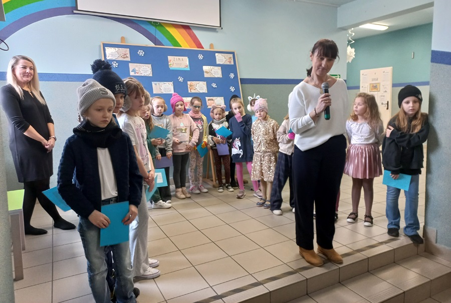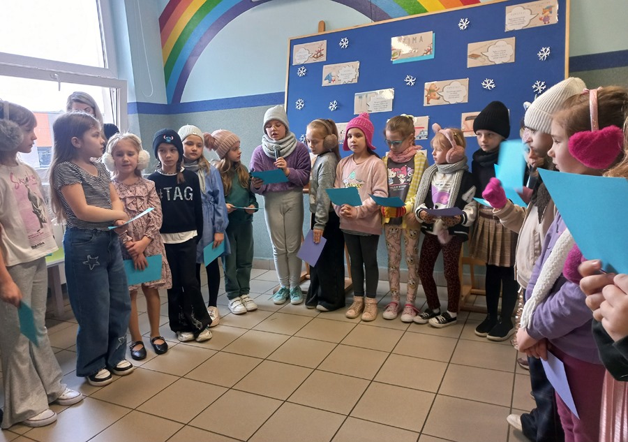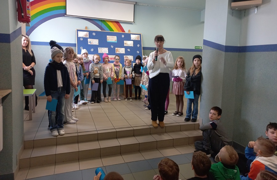 Apel przygotowany przez uczniów z koła teatralno-muzycznego przypomniał wszystkim zagadnienia związane z bezpieczeństwem w czasie ferii zimowych.