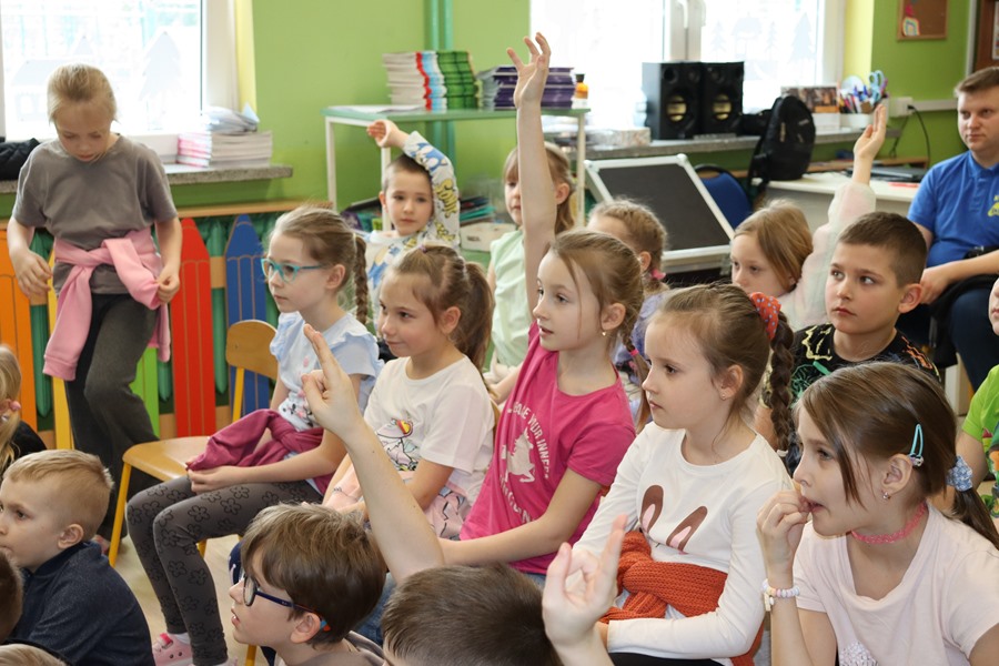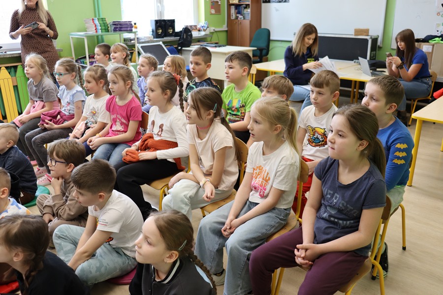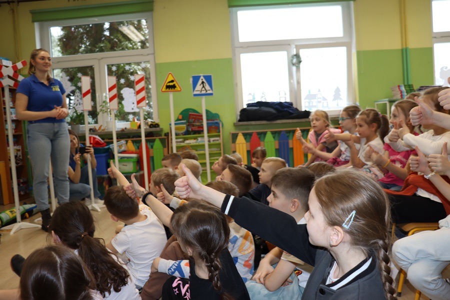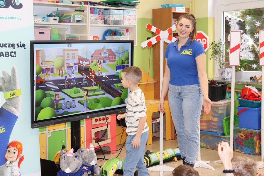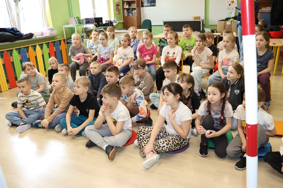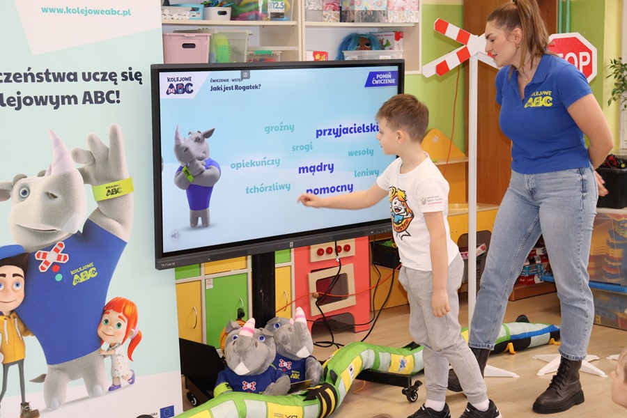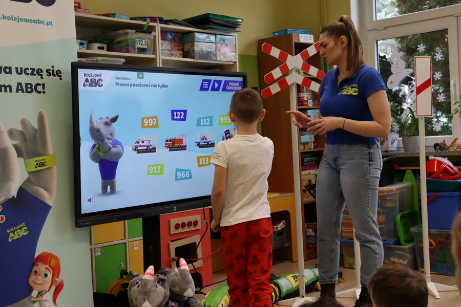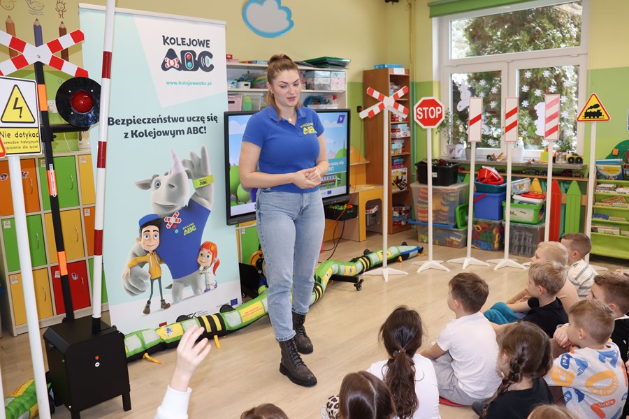 19 lutego 2025 roku uczniowie klas pierwszych wzięli udział w Ogólnopolskiej Kampanii „Kolejowe ABC III” prowadzonej przez Urząd Transportu Kolejowego. Celem tej inicjatywy jest zwiększenie świadomości dzieci na temat zagrożeń związanych z ruchem kolejowym. Poprzez udział w grze interaktywnej, uczniowie dowiedzieli się, jak prawidłowo zachowywać się na stacji kolejowej, co oznaczają różne znaki i sygnały oraz jak bezpiecznie przechodzić przez tory. Wszyscy byli bardzo zaangażowani i chętnie odpowiadali na pytania, co pokazało, jak istotny jest dla nich temat bezpieczeństwa. Po zakończeniu warsztatów dzieci podzieliły się swoimi wrażeniami, a na pamiątkę otrzymały maskotki i materiały edukacyjne.