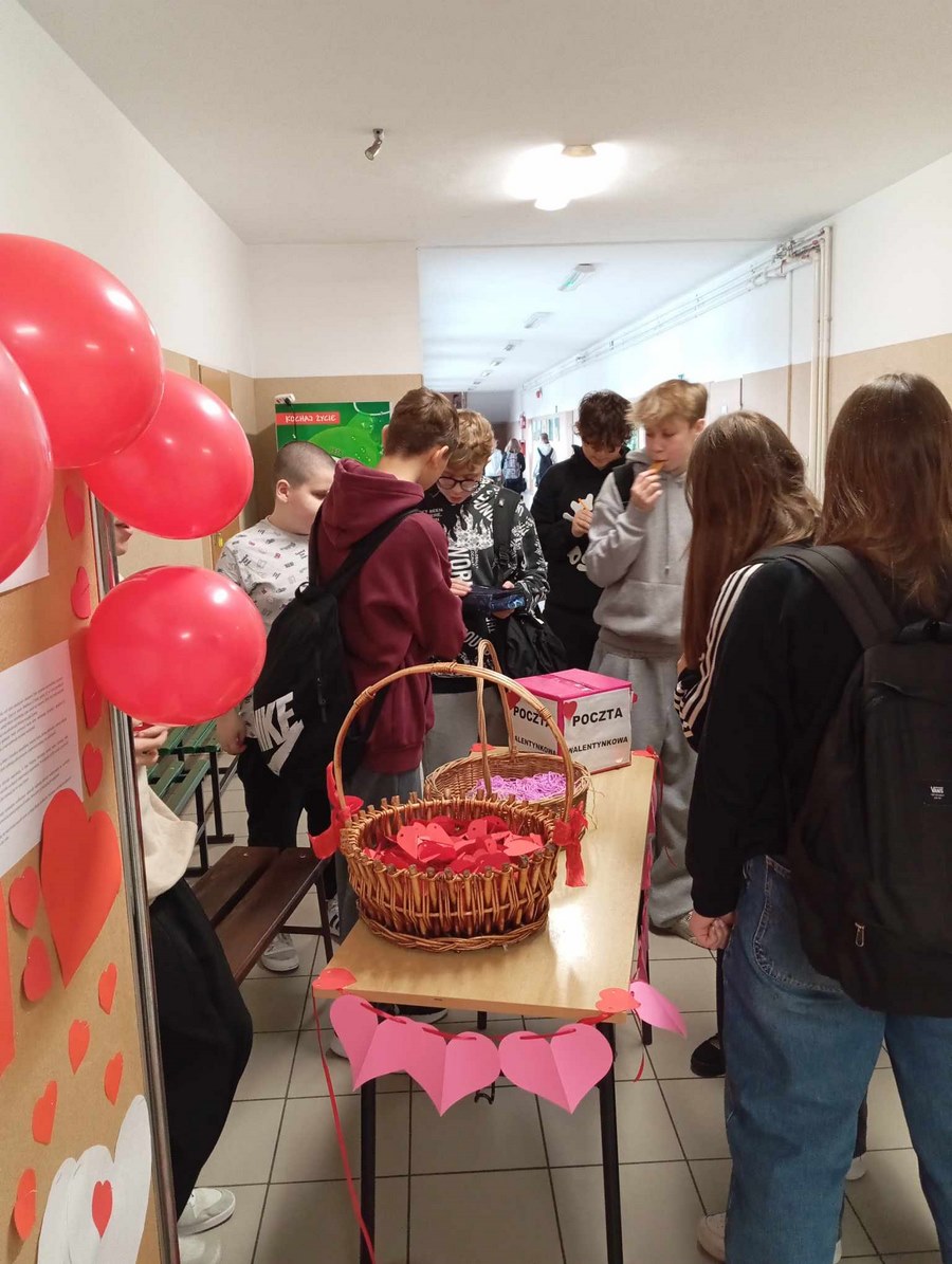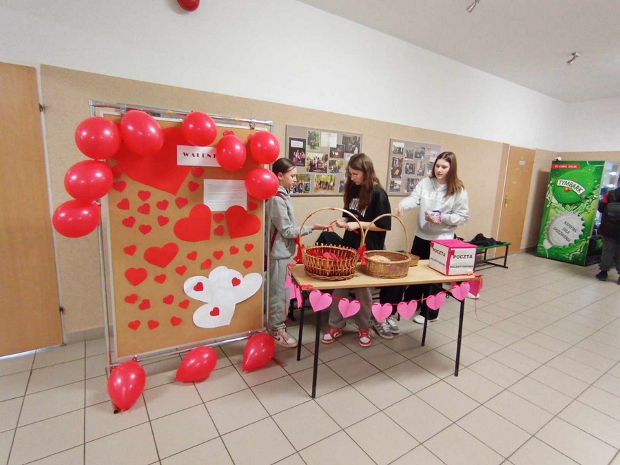 Walentynki to święto miłości i przyjaźni. Mimo tego, że dzień 14 lutego był w czasie ferii zimowych, nasi uczniowie postanowili je uczcić. Samorząd Uczniowski tego dnia zorganizował pocztę walentynkową. Już od samego rana można było wypisać serduszko osobie, której chcieliśmy okazać swoją sympatię i życzliwość. Po szkole kursowała walentynkowa poczta, obdarowując uczniów wysłanymi walentynkami.