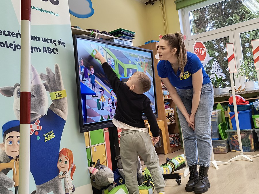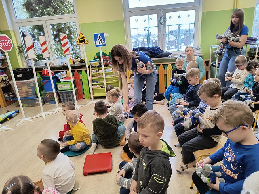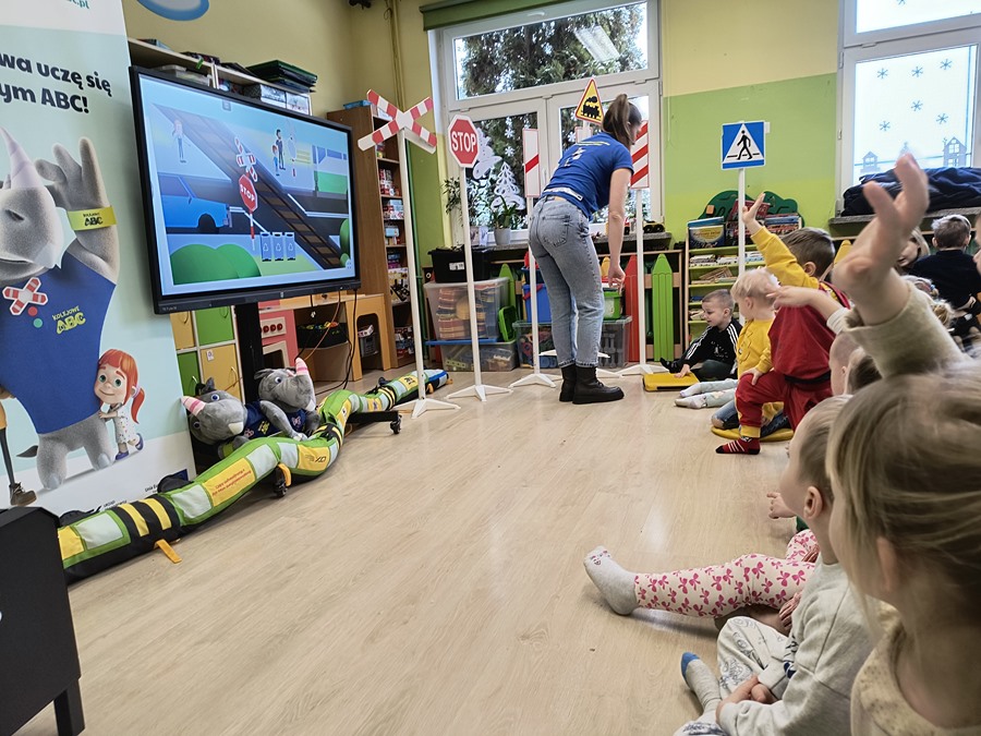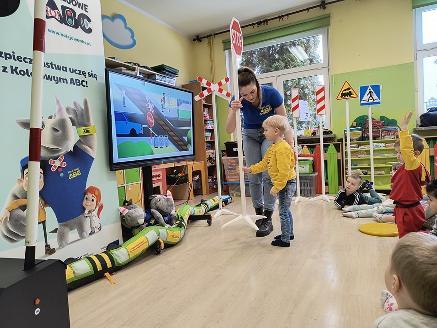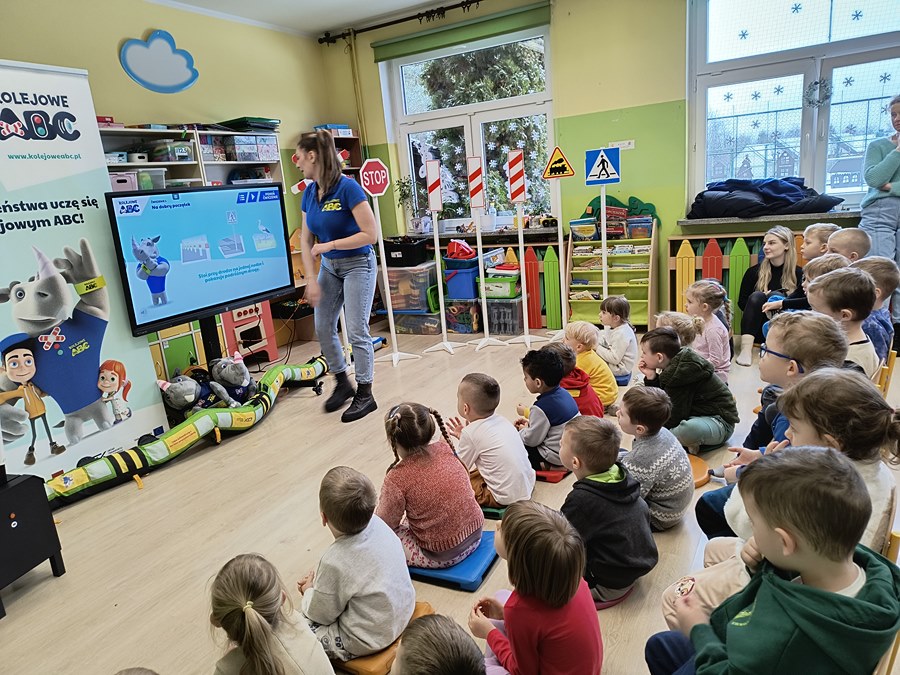 19 lutego dzieci z grup „Motylki” i „Pszczółki” uczestniczyły w zajęciach realizowanych przez Urząd Transportu Kolejowego w Warszawie, w ramach projektu "Kampania Kolejowe ABC" dotyczących edukacji w zakresie bezpieczeństwa kolejowego. Podczas warsztatów przedszkolaki poznały specyfikę działania zapór z sygnalizacją świetlną, znaki drogowe, które można spotkać przed przejazdami kolejowo-drogowymi. Dowiedziały się, co oznaczają piktogramy umieszczane na dworcach i w pociągach. Poznały prawidłowe zachowania w pobliżu torów, w pociągu i na peronie oraz na przejeździe kolejowym. Dzieci z zaciekawieniem i bardzo aktywnie brały udział w prezentacji multimedialnej, odpowiadały na zadawane pytania i rozwiązywały zagadki związane ze znakami kolejowymi. Na zakończenie dzieci otrzymały prezenty – maskotki nosorożca Rogatka. Dziękujemy Edukatorom z Urzędu Transportu Kolejowego za bardzo ciekawe zajęcia.