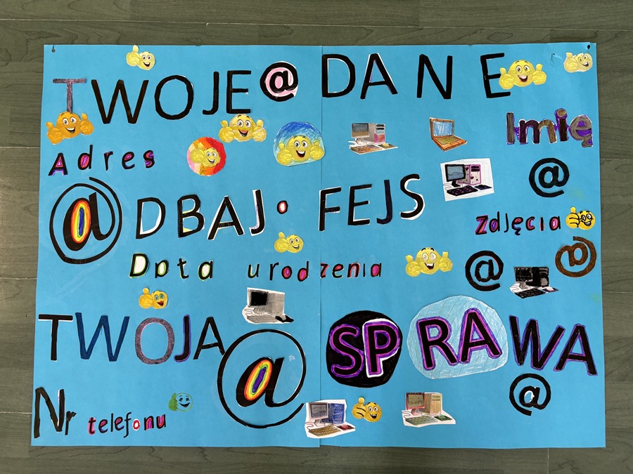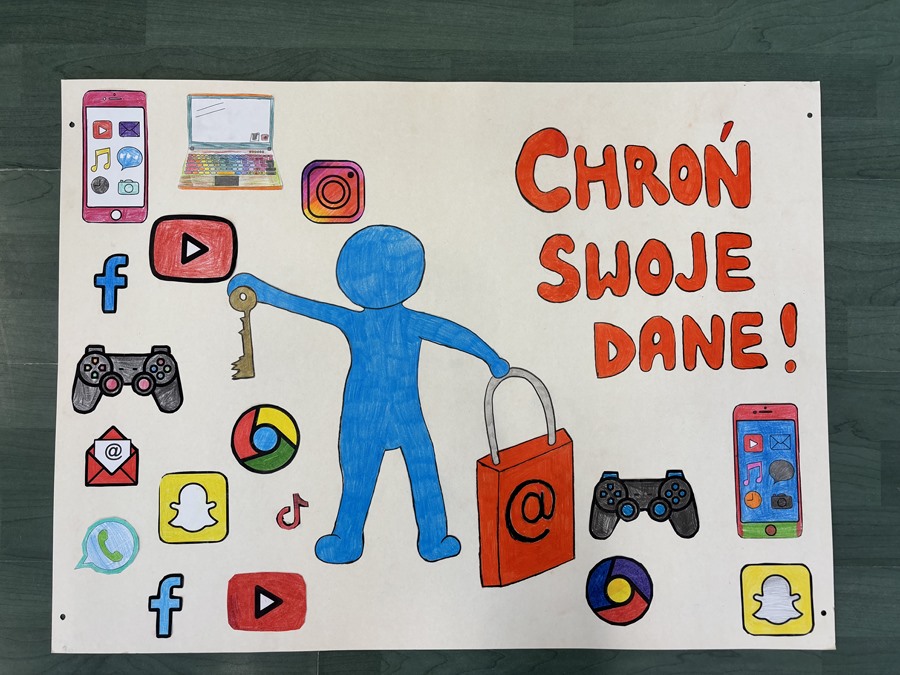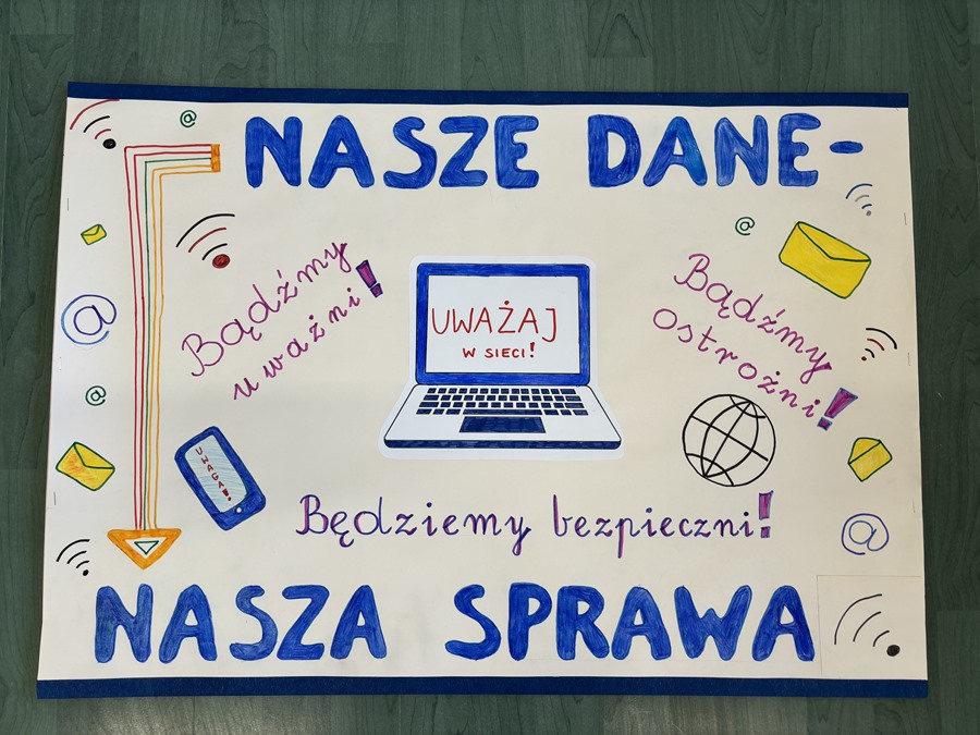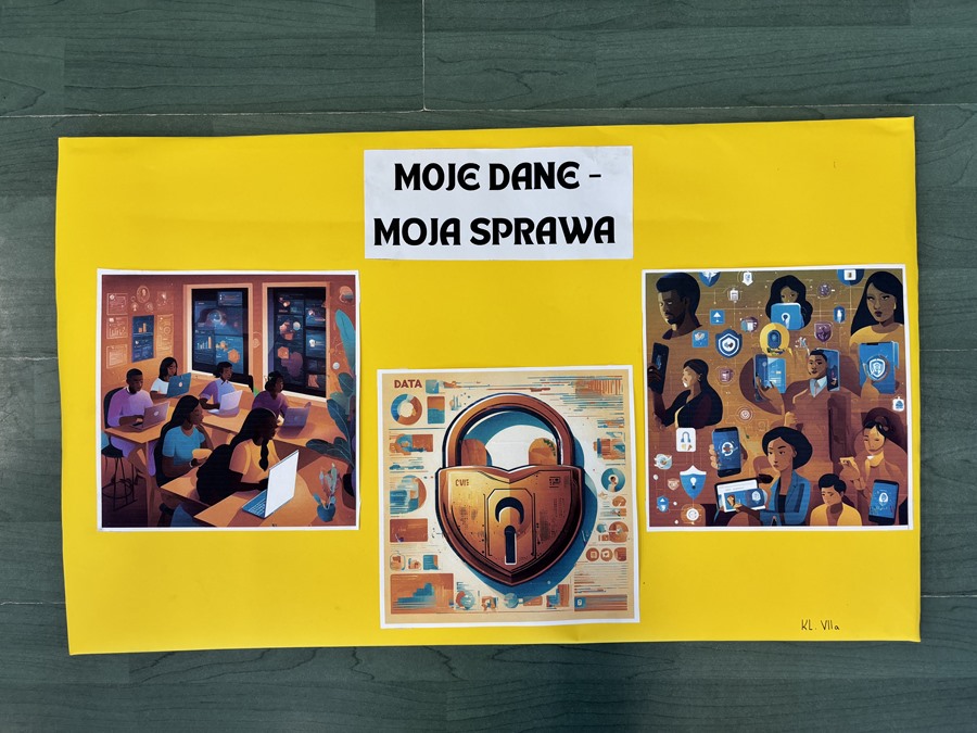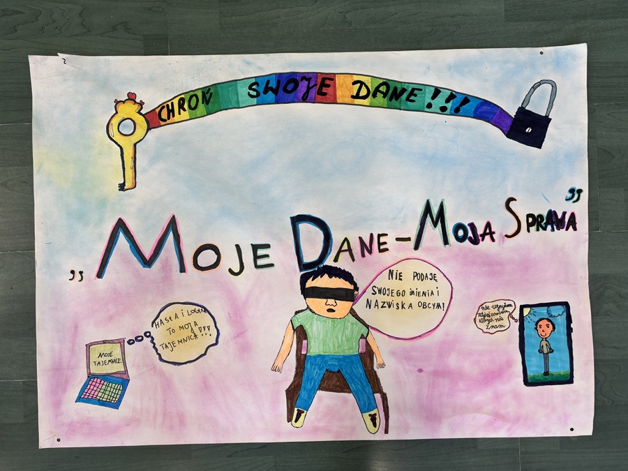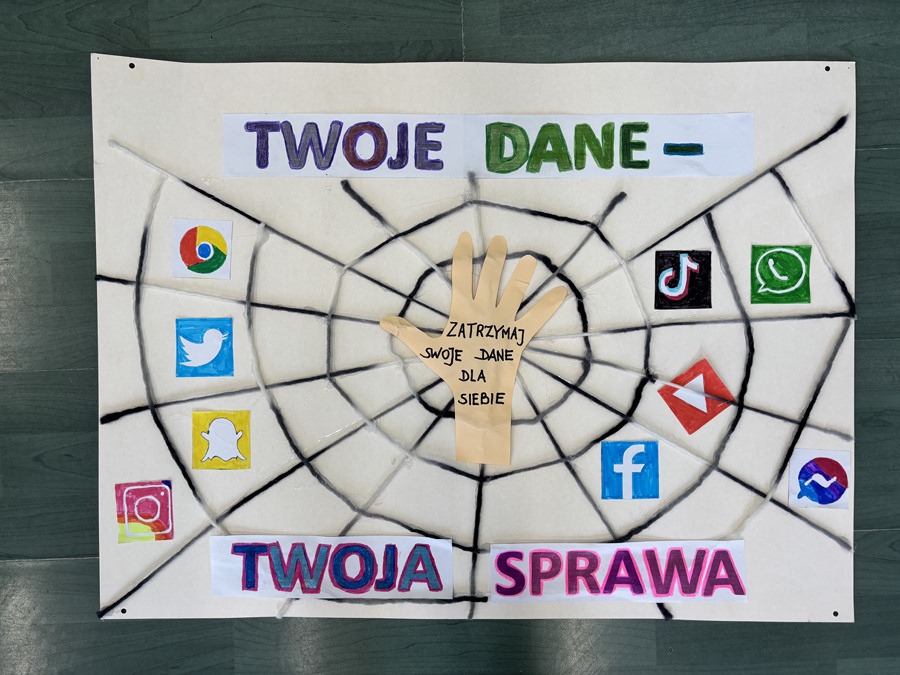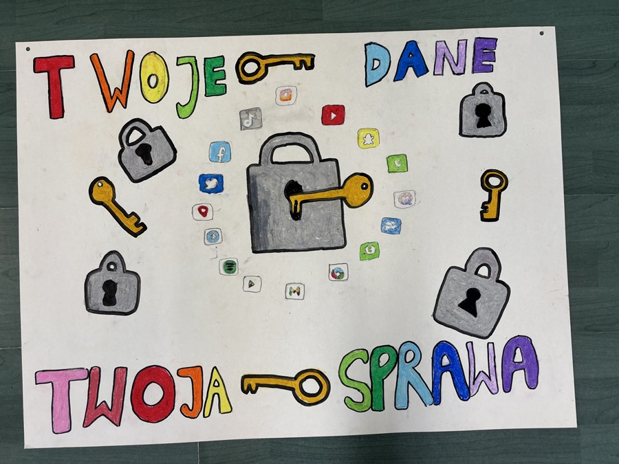 Głównym celem programu „Twoje dane – Twoja sprawa” jest inspirowanie nie tylko uczniów, ale całych społeczności szkolnych i lokalnych do działań na rzecz ochrony prywatności poprzez realizację ciekawych inicjatyw, w których młodzież aktywnie uczestniczy zdobywając przydatną wiedzę i kształtując dobre praktyki w tej dziedzinie. Program realizowany jest pod honorowym patronatem Ministra Edukacji Narodowej oraz Rzecznika Praw Dziecka w celu podniesienia kompetencji nauczycieli oraz kształtowania świadomych i odpowiedzialnych postaw wśród uczniów. Jedną z inicjatyw jaką podjęliśmy naszej szkole było wykonanie plakatów.