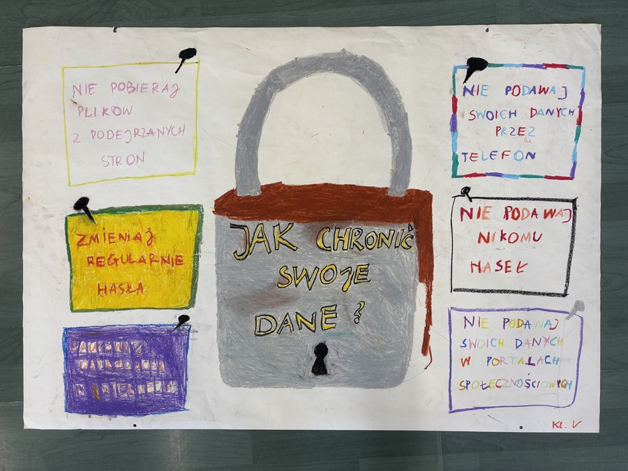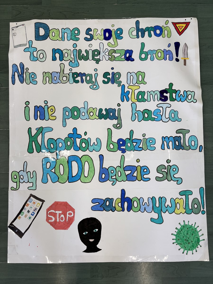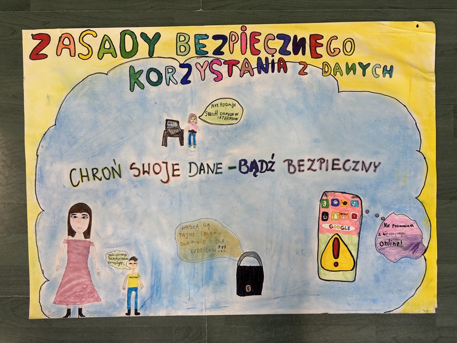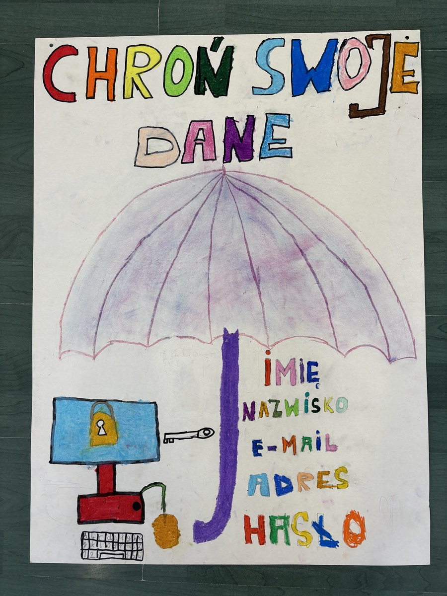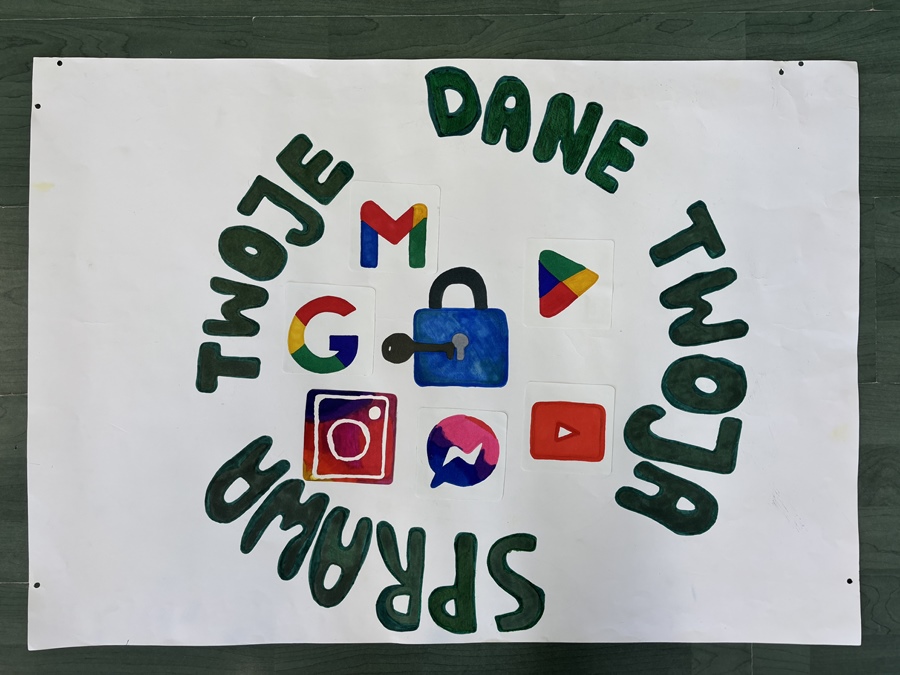 Głównym celem programu „Twoje dane – Twoja sprawa” jest inspirowanie nie tylko uczniów, ale całych społeczności szkolnych i lokalnych do działań na rzecz ochrony prywatności poprzez realizację ciekawych inicjatyw, w których młodzież aktywnie uczestniczy zdobywając przydatną wiedzę i kształtując dobre praktyki w tej dziedzinie. Program realizowany jest pod honorowym patronatem Ministra Edukacji Narodowej oraz Rzecznika Praw Dziecka w celu podniesienia kompetencji nauczycieli oraz kształtowania świadomych i odpowiedzialnych postaw wśród uczniów. Jedną z inicjatyw jaką podjęliśmy naszej szkole było wykonanie plakatów.
