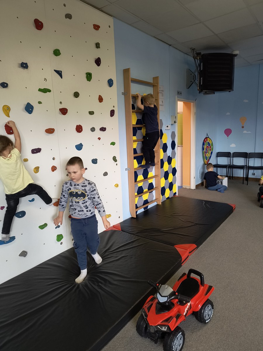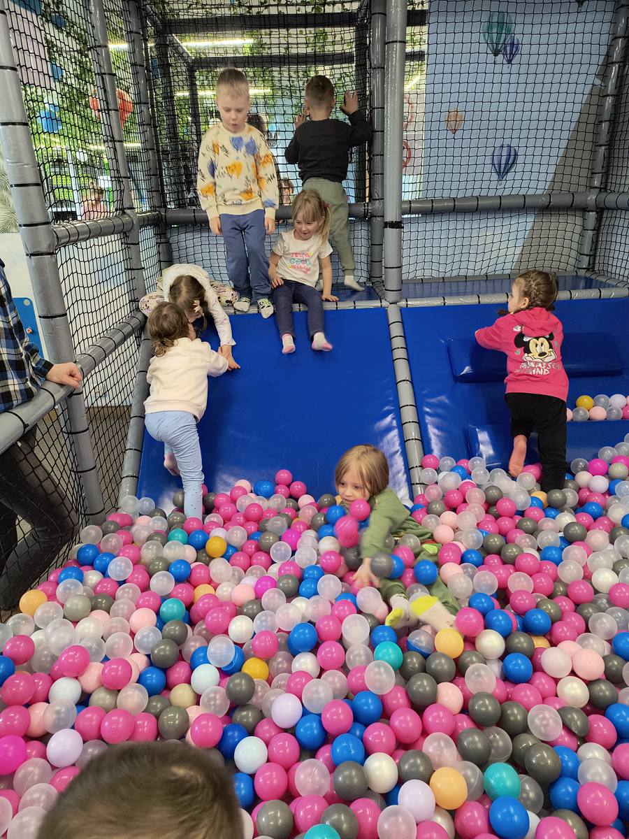 26 marca dzieci z grup „Pszczółki” i „Motylki” wybrały się na wycieczkę do Wyszkowa. Najpierw obejrzały film pt.: „Elfy rozrabiają” w kinie „Hutnik”, opowiadający o ekipie dobrych elfów mieszkających w wielkim mieście i pomagających ludziom oraz o gangu mniej dobrych elfów poszukujących mocnych wrażeń. Następnie udały się do sali zabaw Soft Play, w której czekało na dzieci mnóstwo atrakcji. Z ogromnym entuzjazmem i dużą dawką energii korzystały z dostępnych w sali sprzętów: ścianki wspinaczkowej, drabinki do podciągania, basenu z kulkami, zjeżdżalni, trampoliny, sali interaktywnej. Pobyt w sali zabaw był okazją do rozładowania dziecięcej energii, rozwijania ogólnej sprawności fizycznej, a co najważniejsze – radosnej zabawy.