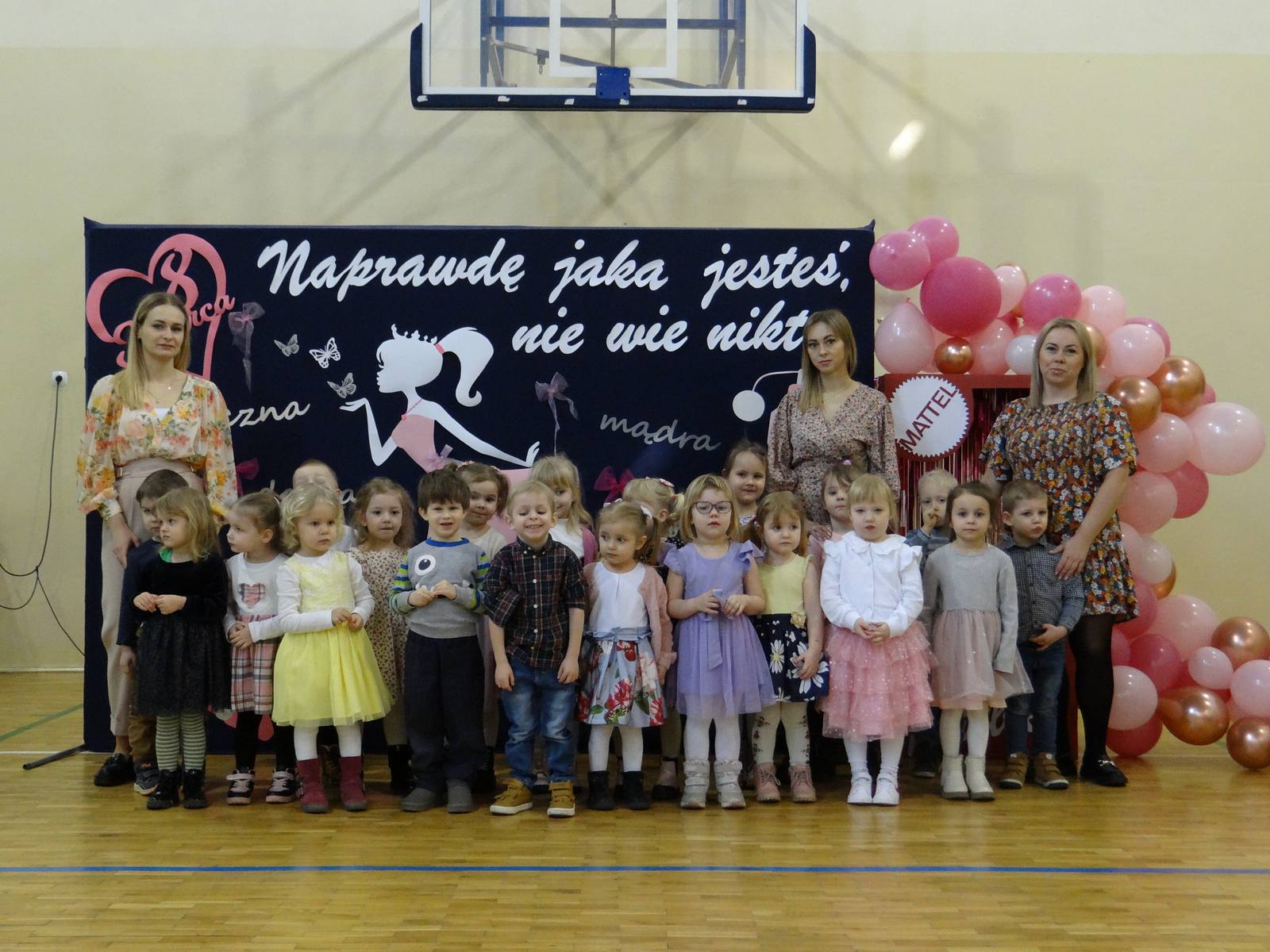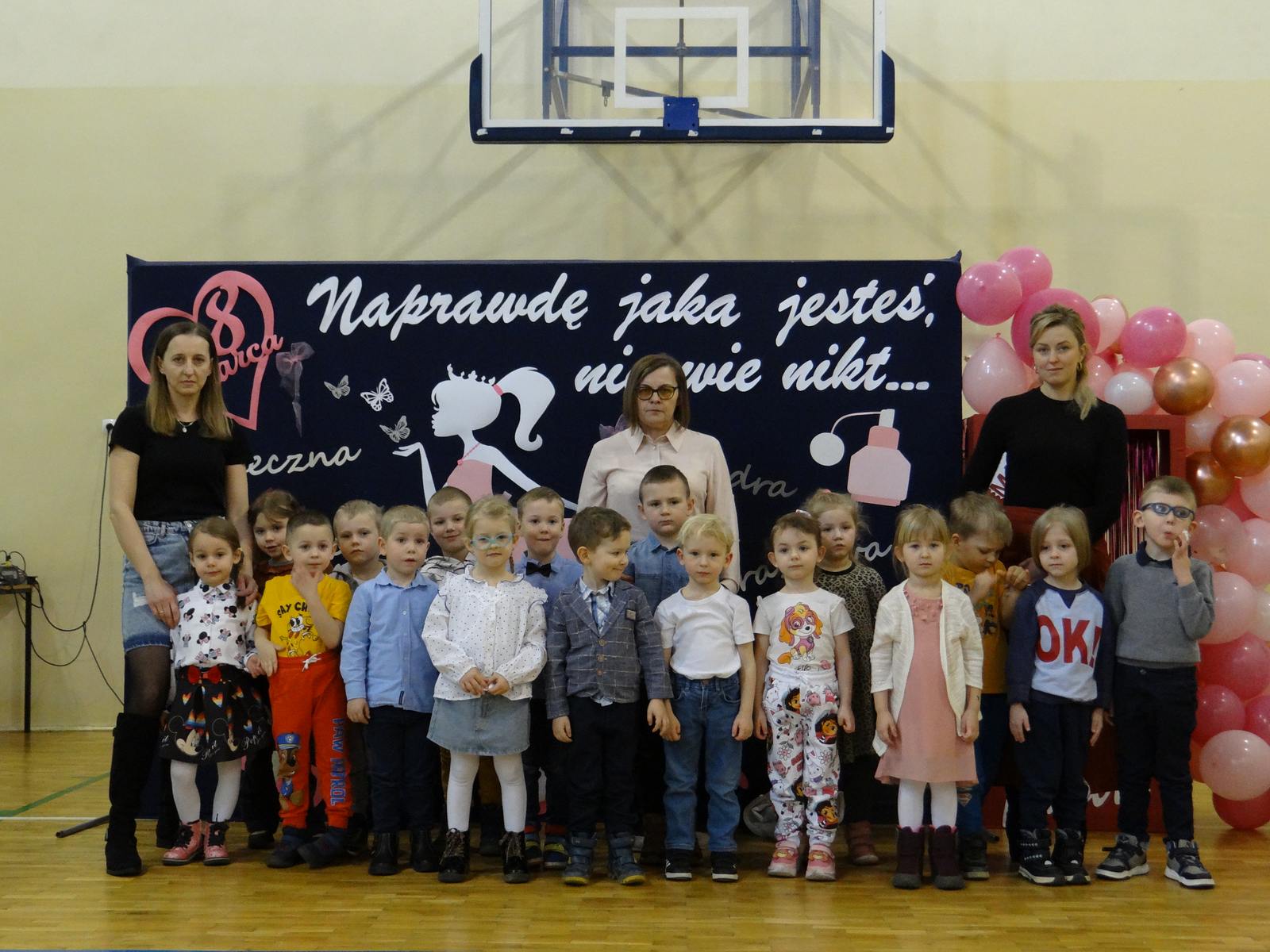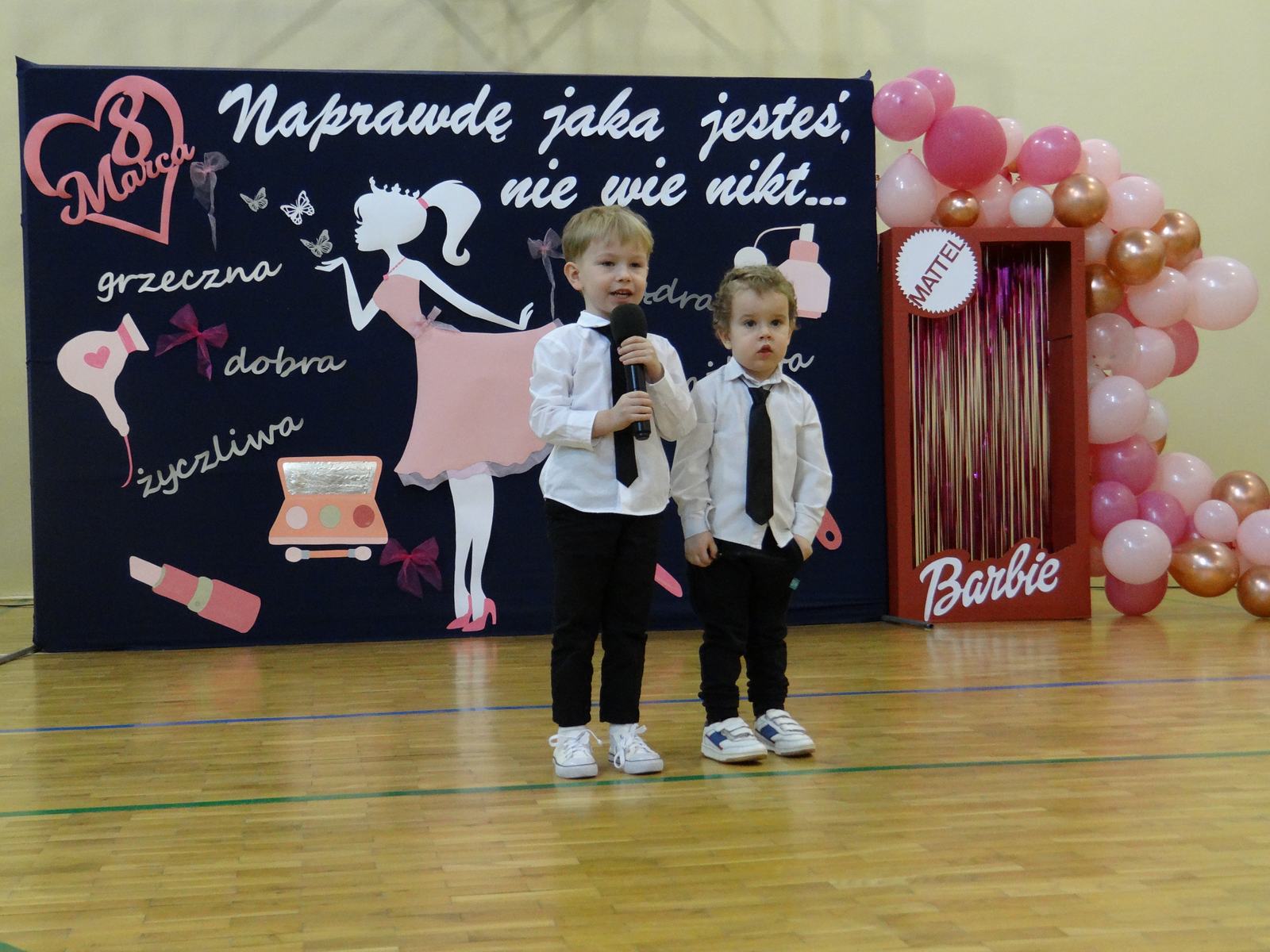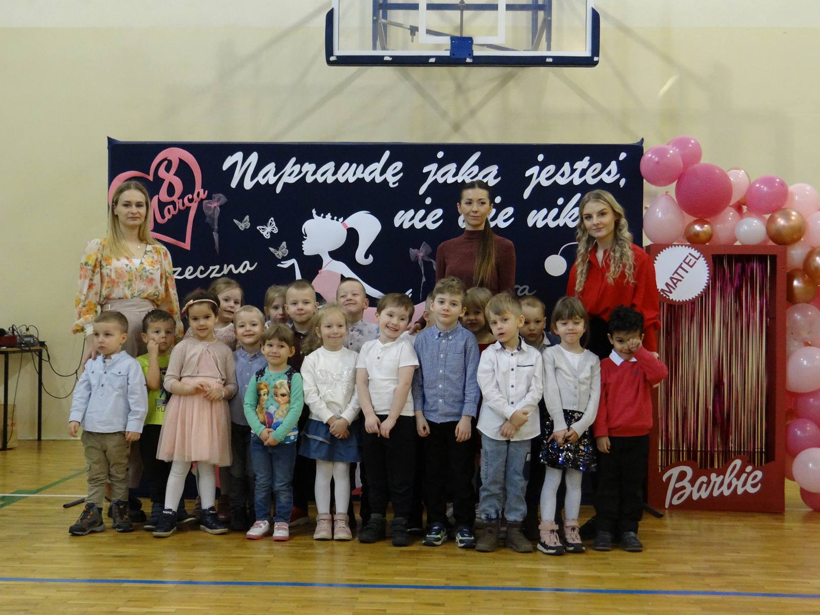 Dzień Kobiet to wyjątkowy dzień, ważny dla wszystkich kobiet, zarówno tych dużych, jak i małych. 7 marca w naszym przedszkolu odbyła się uroczystość z tej okazji. Radosna atmosfera panowała już od samego rana. Wszystkie kobietki otrzymały serdeczne życzenia i upominki. Tegoroczny program artystyczny przygotowała grupa ,,Króliczki”. Było różowo, brokatowo oraz słodko – w stylu BARBIE! Dzieci z humorem pokazały piękno i wyjątkowość współczesnej kobiety. Występ wzbogaciły muzyczne hity, a niespodzianką były układy choreograficzne, w których dzieci pokazały swoje umiejętności taneczne. Niech przesłanie naszej uroczej laleczki – „kobiety mogą być kim chcą" - będzie naszą dewizą życiową!