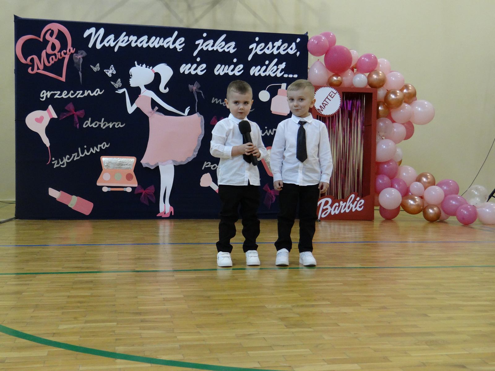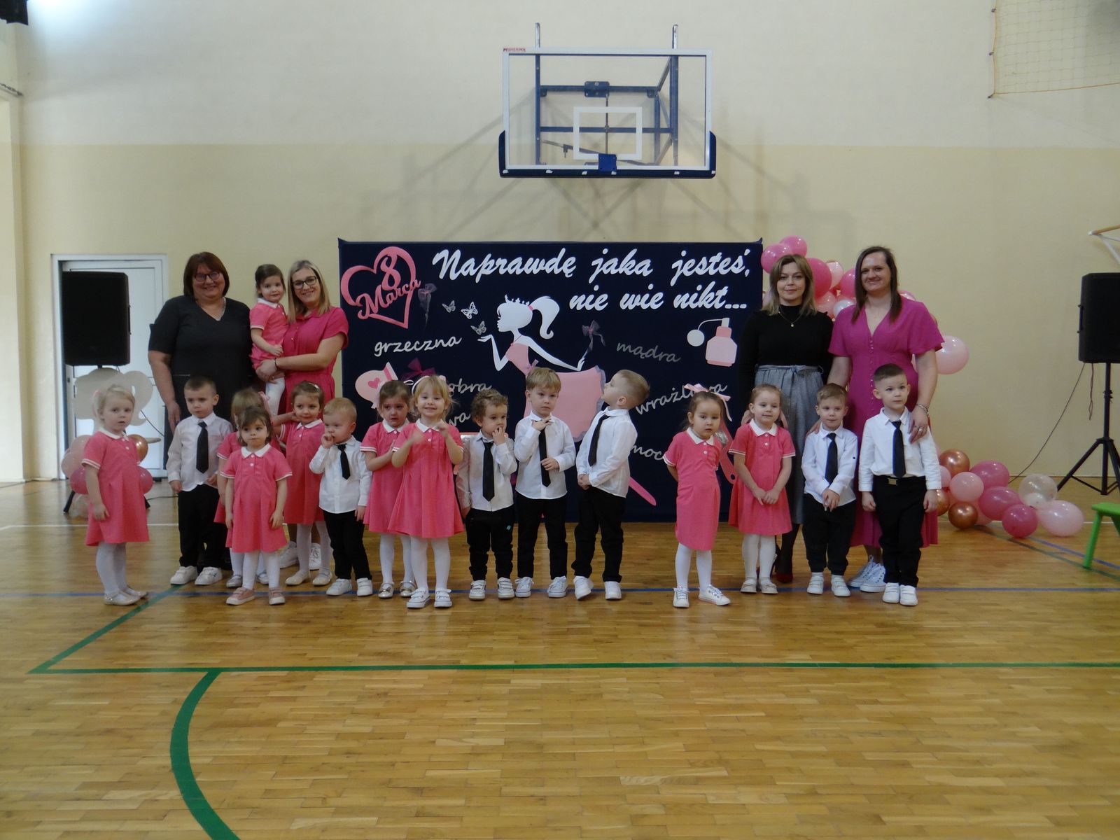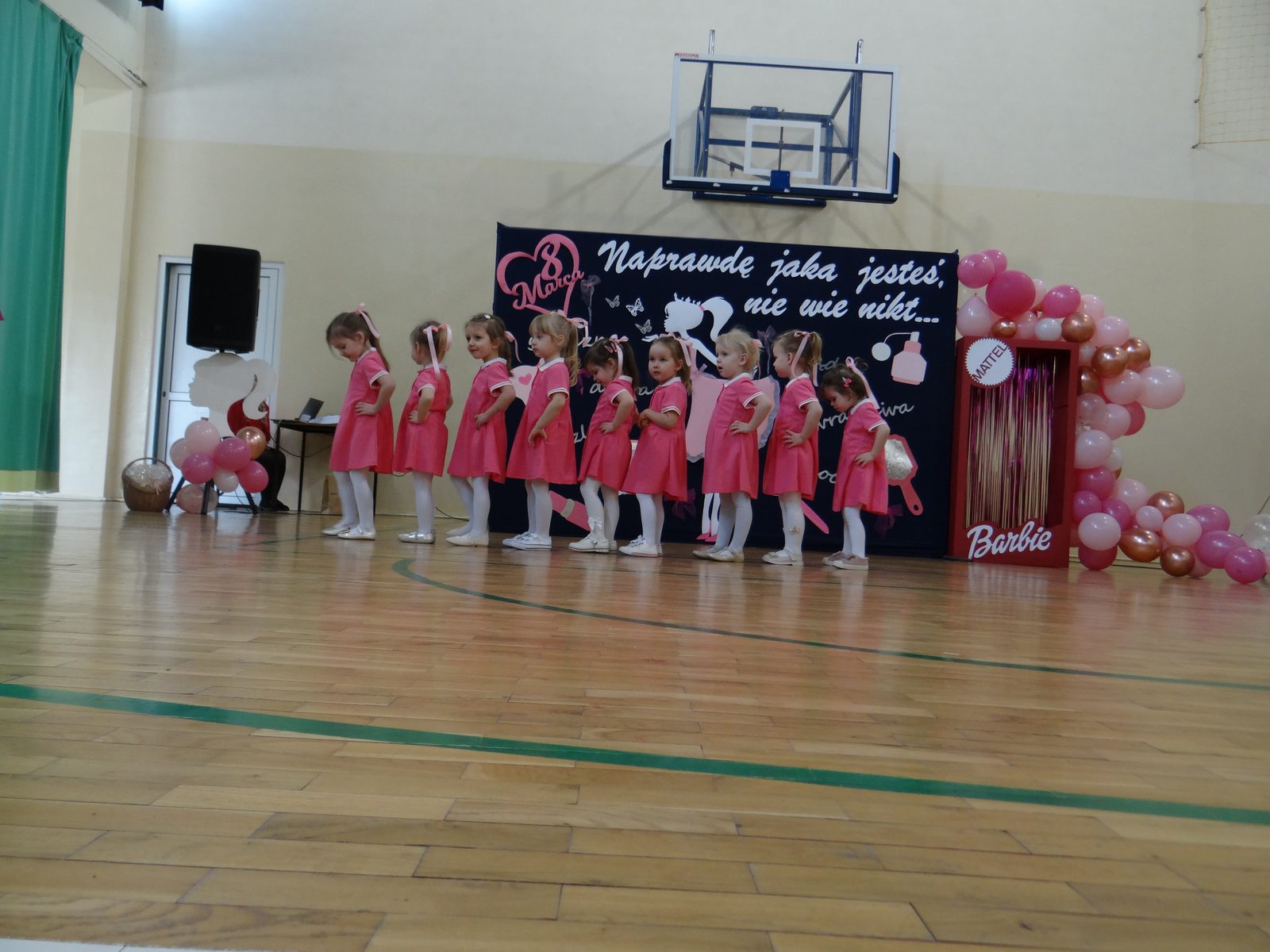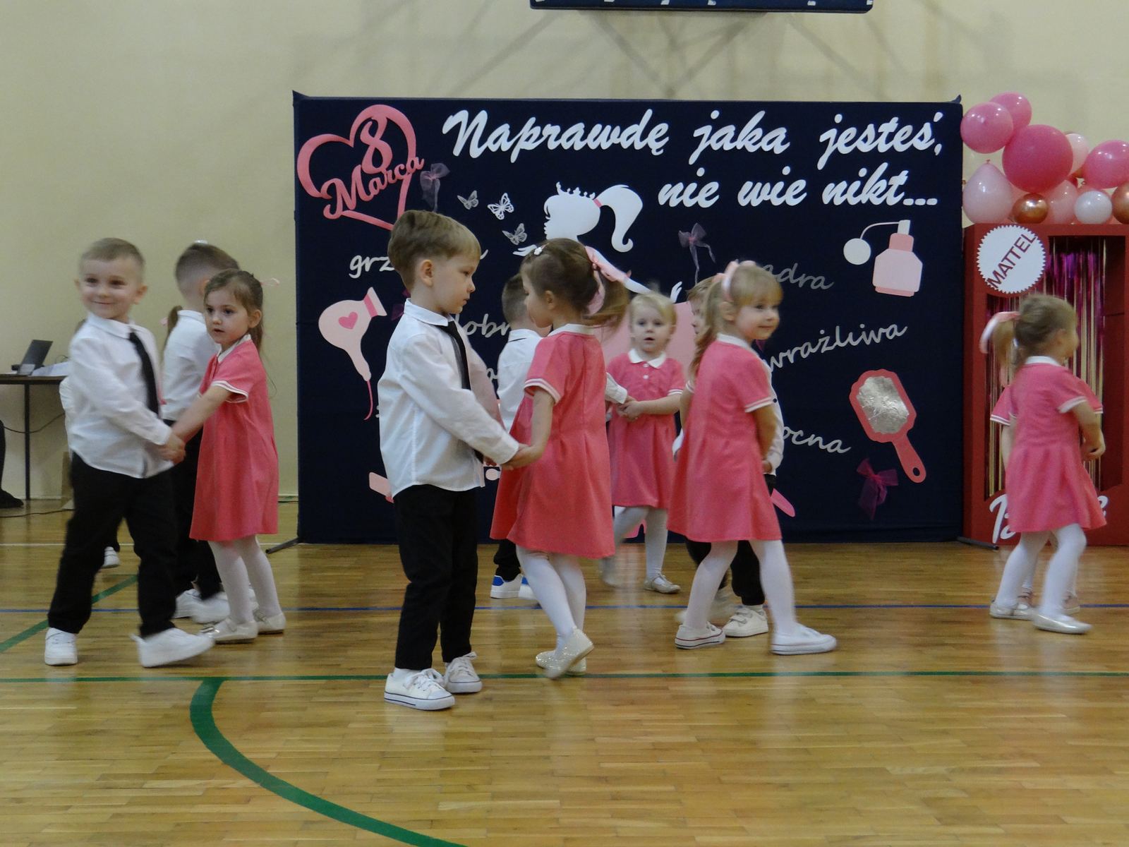 Dzień Kobiet to wyjątkowy dzień, ważny dla wszystkich kobiet, zarówno tych dużych, jak i małych. 7 marca w naszym przedszkolu odbyła się uroczystość z tej okazji. Radosna atmosfera panowała już od samego rana. Wszystkie kobietki otrzymały serdeczne życzenia i upominki. Tegoroczny program artystyczny przygotowała grupa ,,Króliczki”. Było różowo, brokatowo oraz słodko – w stylu BARBIE! Dzieci z humorem pokazały piękno i wyjątkowość współczesnej kobiety. Występ wzbogaciły muzyczne hity, a niespodzianką były układy choreograficzne, w których dzieci pokazały swoje umiejętności taneczne. Niech przesłanie naszej uroczej laleczki – „kobiety mogą być kim chcą" - będzie naszą dewizą życiową!
