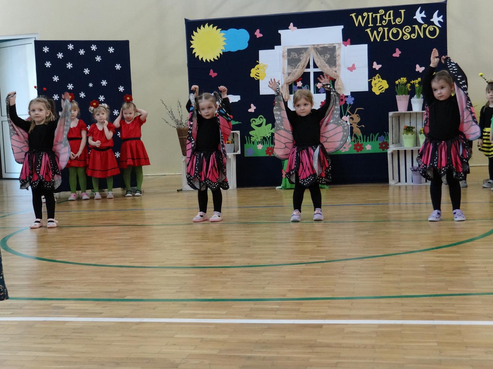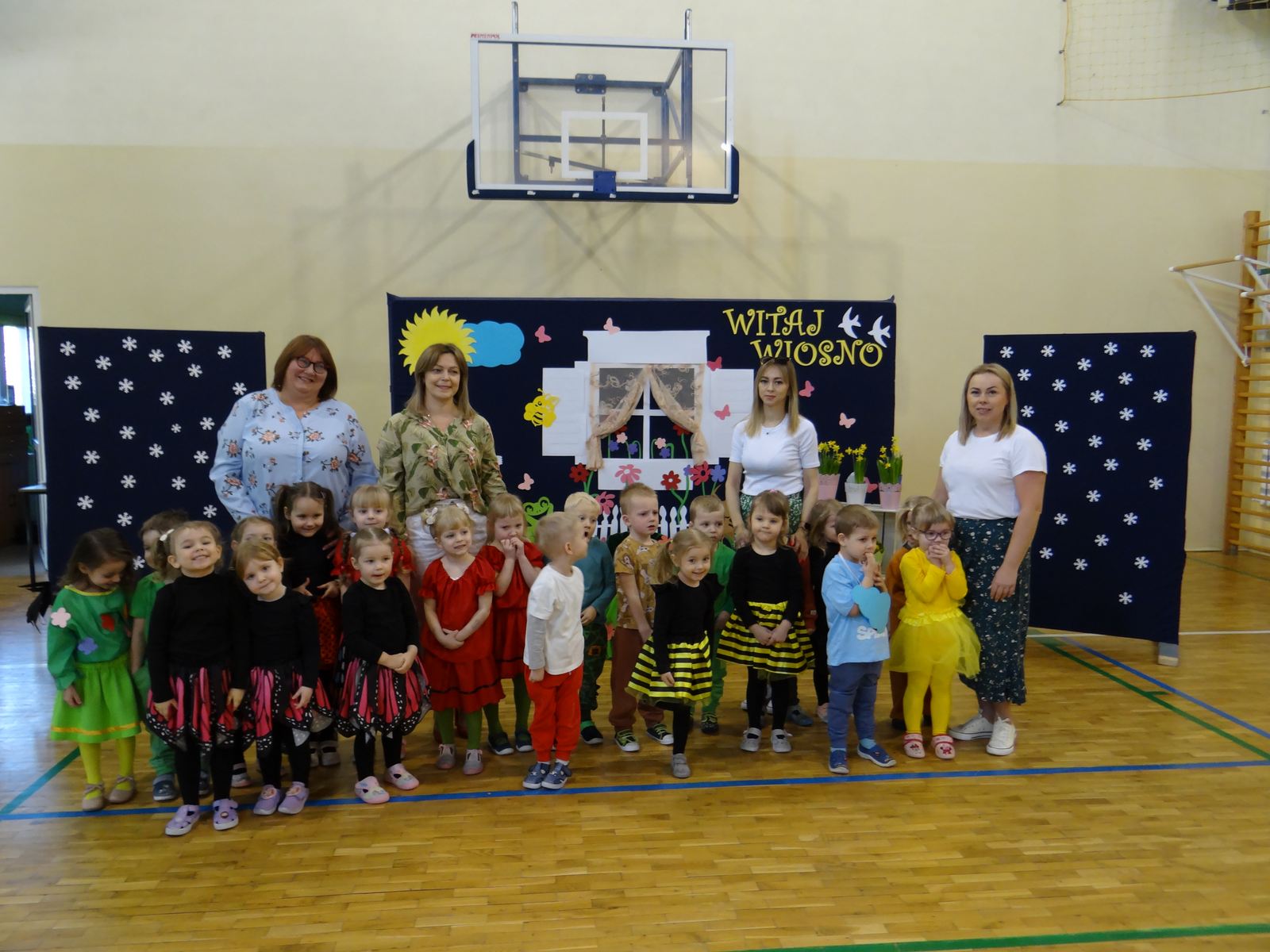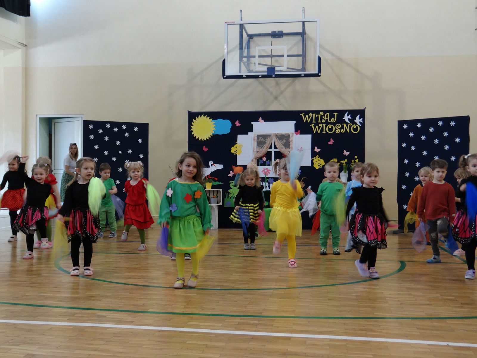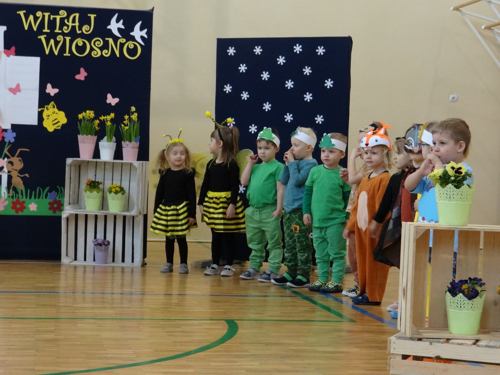 20 marca w naszym przedszkolu obchodziliśmy Pierwszy Dzień Wiosny. Uroczystość rozpoczęły dzieci z grupy „Jeżyki” przedstawieniem pt. „Witaj wiosno". Recytacja wierszy, wspólne śpiewanie piosenek, improwizacja ruchowa motyli oraz skoczny taniec z kolorowymi chustkami do piosenki pt. „Wiosna, wiosenka”, bardzo spodobały się publiczności, która nagrodziła aktorów brawami. Po przedszkolnych występach, wesołym barwnym korowodem z Marzanną na czele przeszliśmy nad rzekę, by pożegnać zimę w tradycyjny sposób. Jesteśmy pewni, że starania naszych wspaniałych przedszkolaków sprawią, że wiosna zawita do nas na dobre.