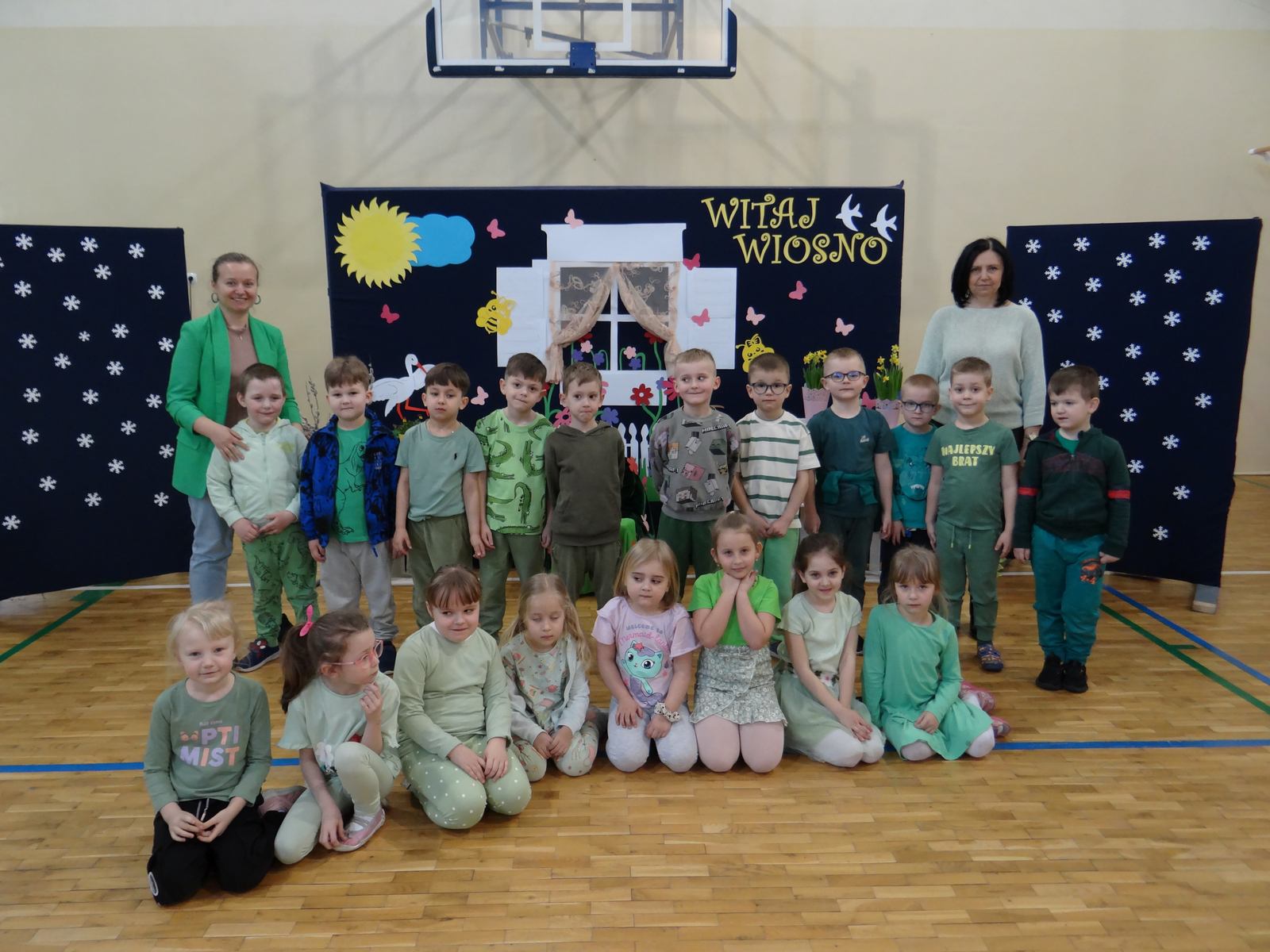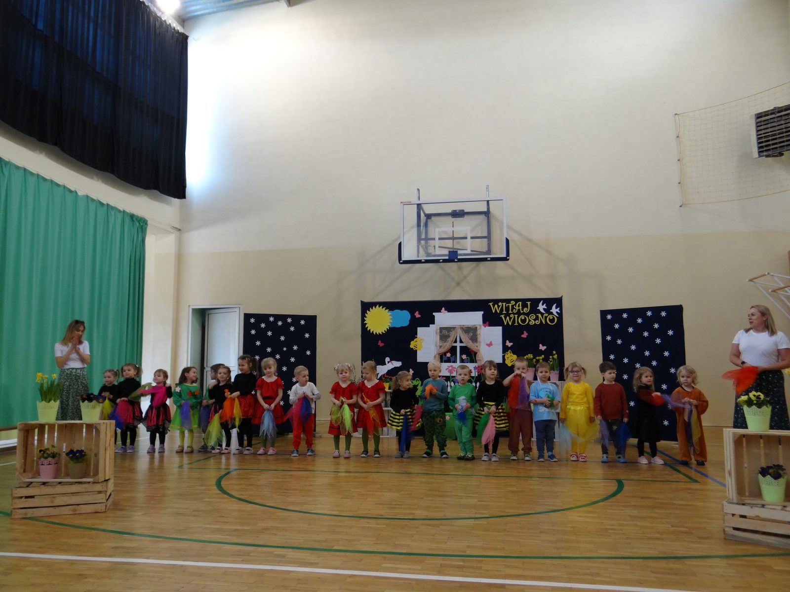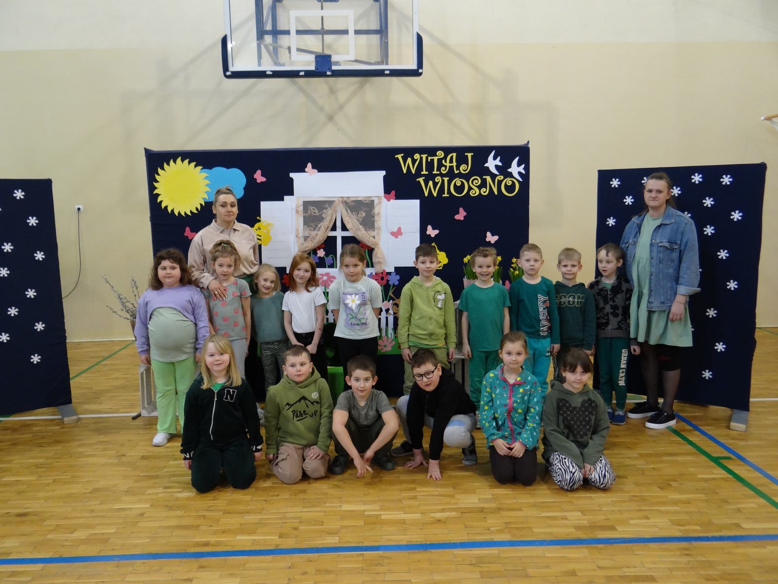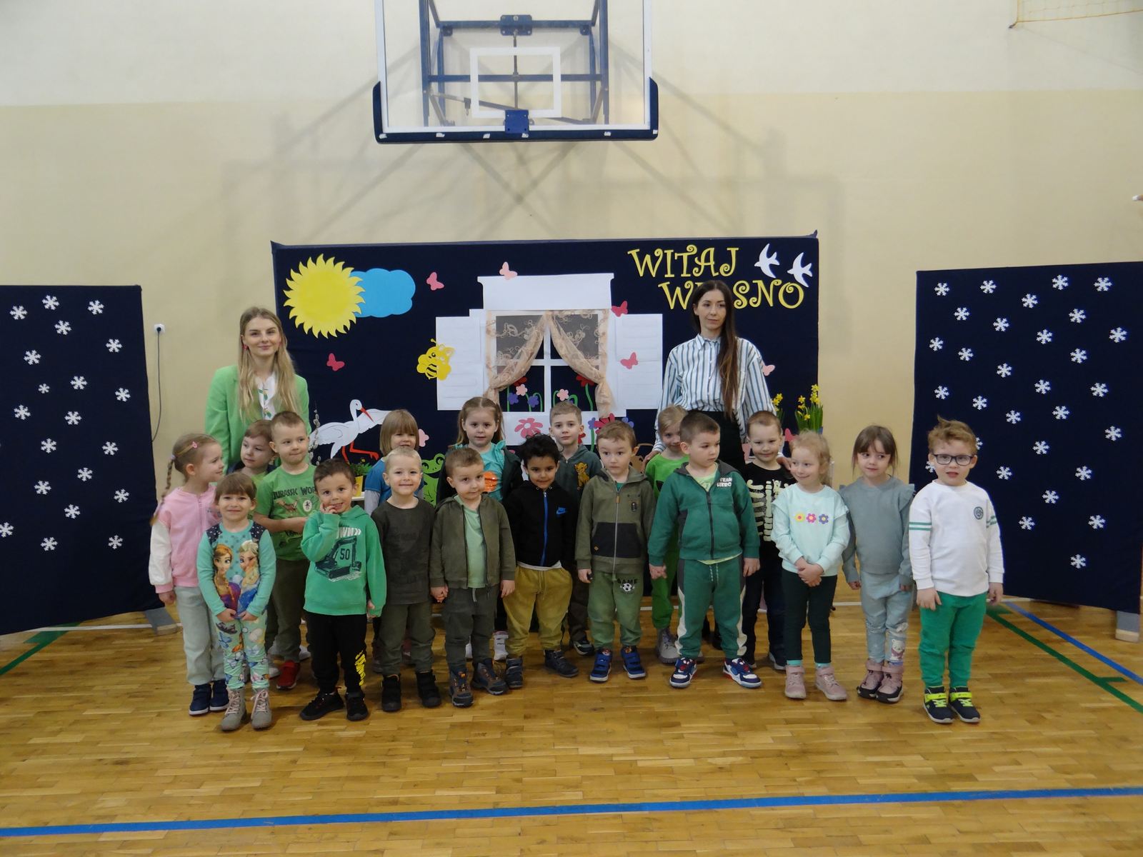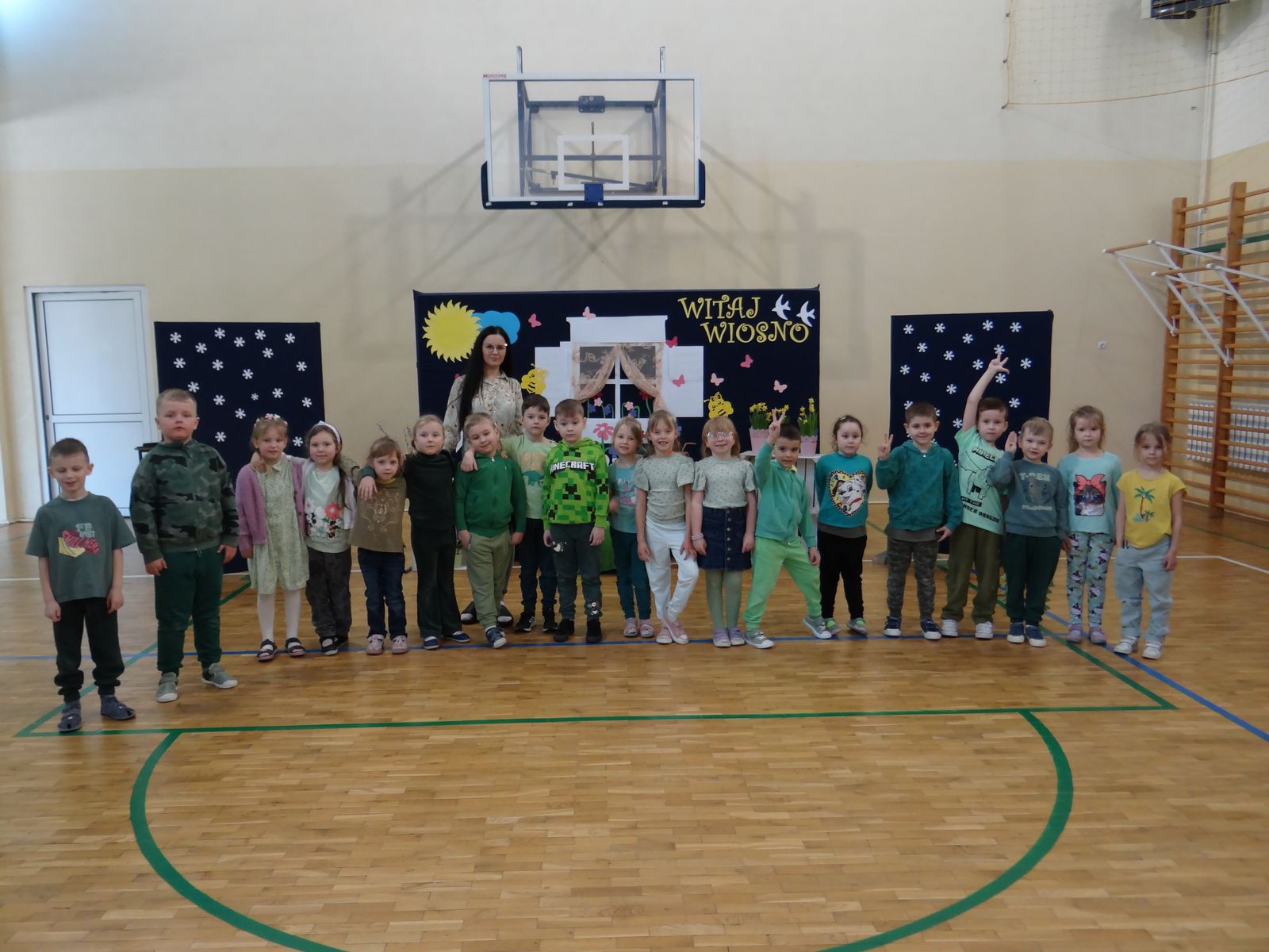 20 marca w naszym przedszkolu obchodziliśmy Pierwszy Dzień Wiosny. Uroczystość rozpoczęły dzieci z grupy „Jeżyki” przedstawieniem pt. „Witaj wiosno". Recytacja wierszy, wspólne śpiewanie piosenek, improwizacja ruchowa motyli oraz skoczny taniec z kolorowymi chustkami do piosenki pt. „Wiosna, wiosenka”, bardzo spodobały się publiczności, która nagrodziła aktorów brawami. Po przedszkolnych występach, wesołym barwnym korowodem z Marzanną na czele przeszliśmy nad rzekę, by pożegnać zimę w tradycyjny sposób. Jesteśmy pewni, że starania naszych wspaniałych przedszkolaków sprawią, że wiosna zawita do nas na dobre.
