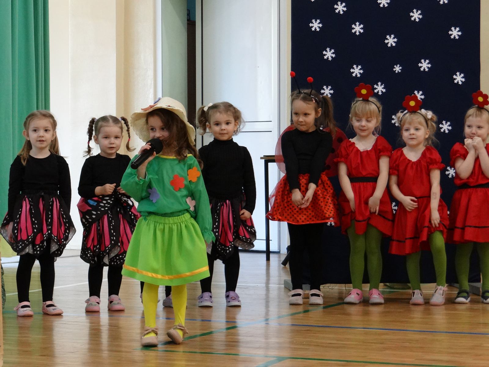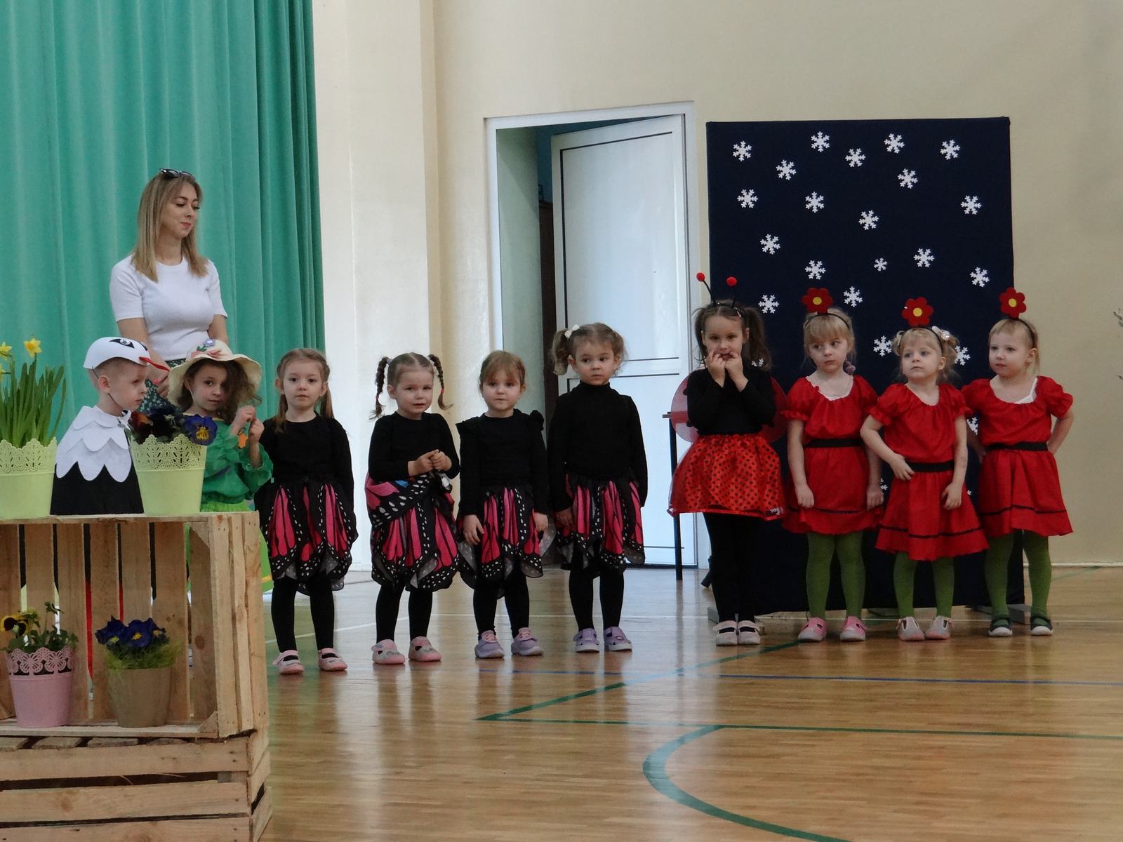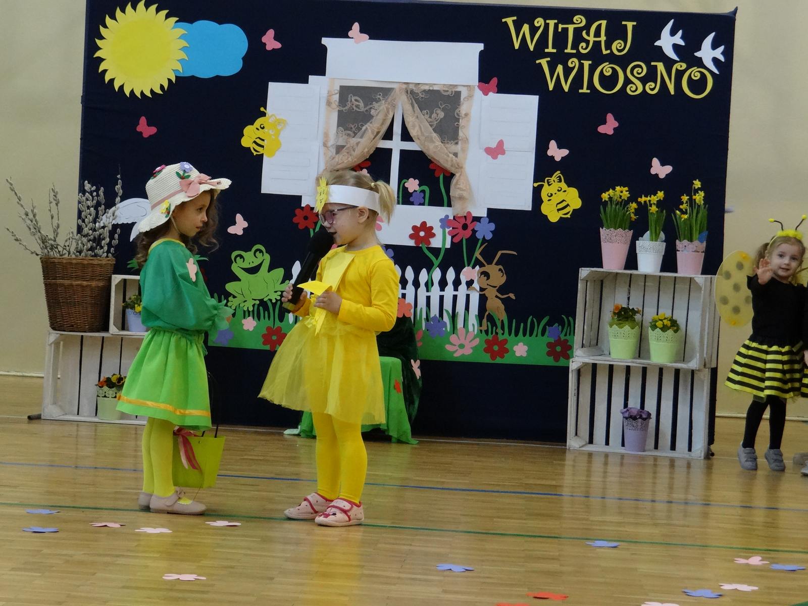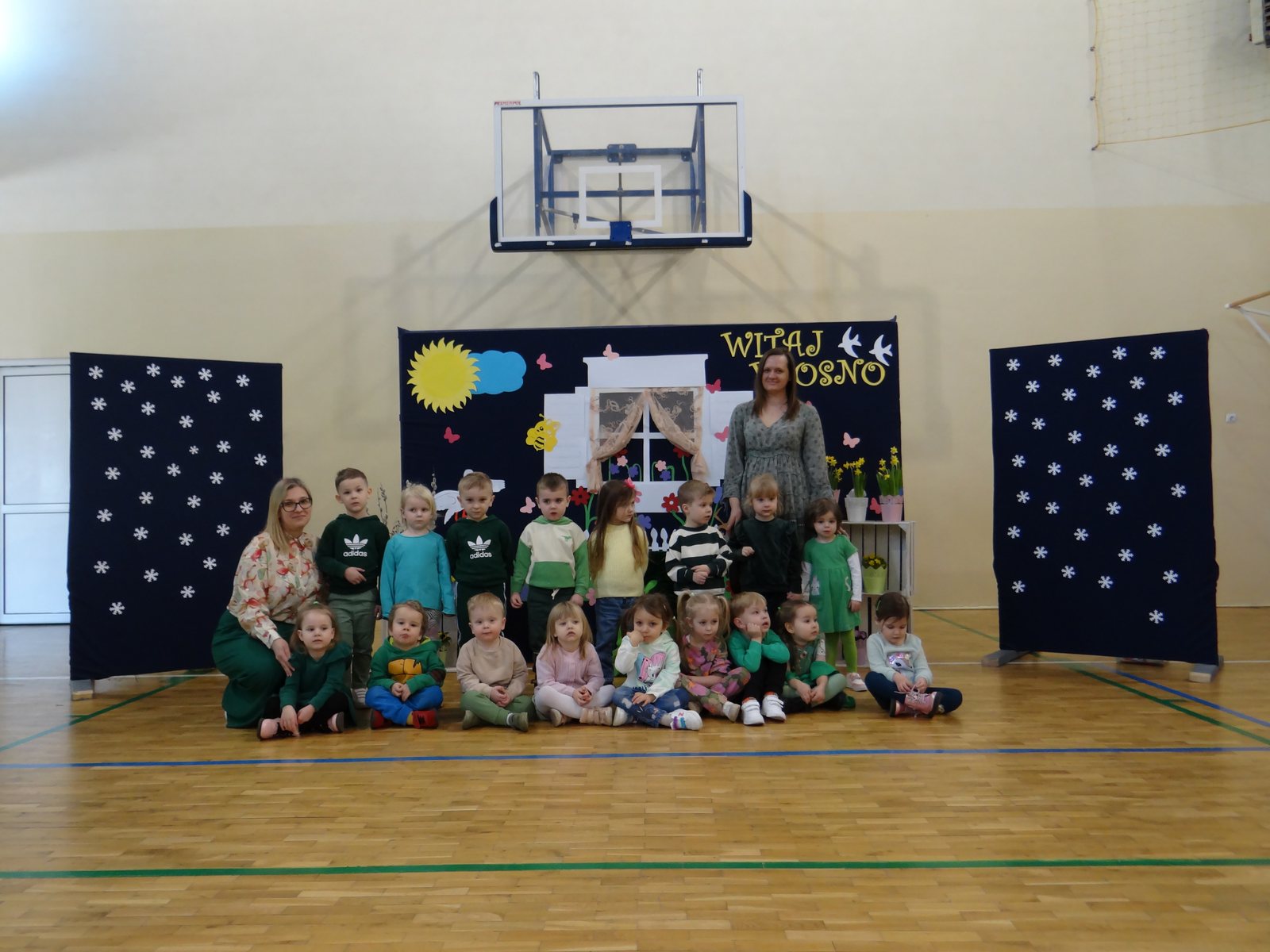 20 marca w naszym przedszkolu obchodziliśmy Pierwszy Dzień Wiosny. Uroczystość rozpoczęły dzieci z grupy „Jeżyki” przedstawieniem pt. „Witaj wiosno". Recytacja wierszy, wspólne śpiewanie piosenek, improwizacja ruchowa motyli oraz skoczny taniec z kolorowymi chustkami do piosenki pt. „Wiosna, wiosenka”, bardzo spodobały się publiczności, która nagrodziła aktorów brawami. Po przedszkolnych występach, wesołym barwnym korowodem z Marzanną na czele przeszliśmy nad rzekę, by pożegnać zimę w tradycyjny sposób. Jesteśmy pewni, że starania naszych wspaniałych przedszkolaków sprawią, że wiosna zawita do nas na dobre.
