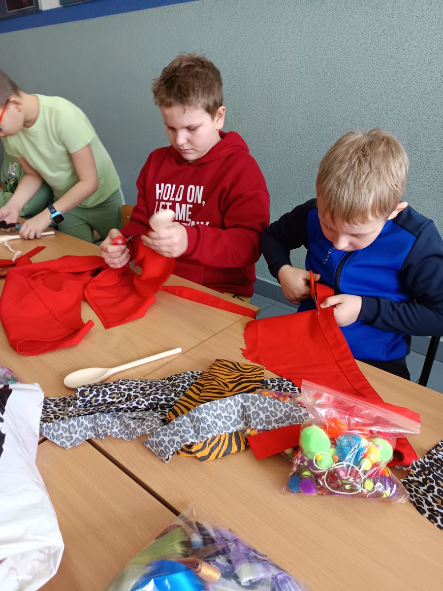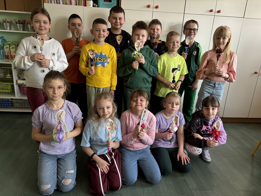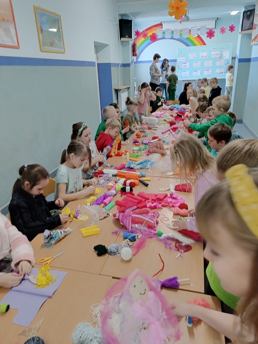 Po śniadaniu przyszedł czas na kreatywną część dnia. Uczniowie z wielkim zaangażowaniem przystąpili do wykonania tradycyjnej Marzanny – symbolu odchodzącej zimy. W tym roku powstały one z drewnianych łyżek, które uczniowie ozdabiali bibułą, kolorowymi wstążkami i papierem. Każda marzanna była wyjątkowa i pełna dziecięcej wyobraźni.