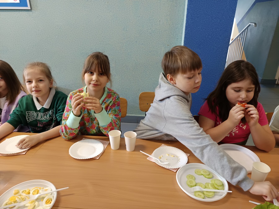 Świętowanie rozpoczęliśmy od smacznego i kolorowego śniadania. Wspólne posiłki to doskonała okazja do rozmów i śmiechu, co sprawiło, że poranek upłynął w wyjątkowo radosnej atmosferze.