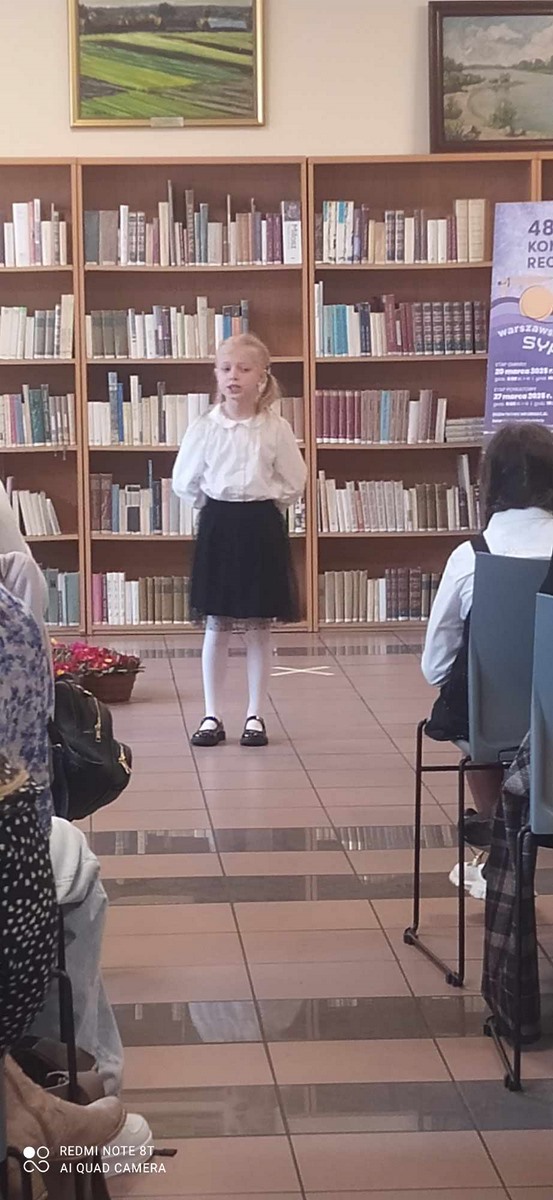 27 marca uczniowie naszej szkoły wzięli udział w etapie powiatowym konkursu recytatorskiego „Warszawska Syrenka”. W kategorii klas I-III były to Adrianna Majewska z kl. Ia, która zdobyła wyróżnienie i Barbara Otwinowska z kl. IIIa. Kategorię klas IV-VI reprezentowała Zuzanna Plakwicz z kl IVa, natomiast najstarszą kategorię klas VII -VIII reprezentował Dawid Turowski z kl. VIII.