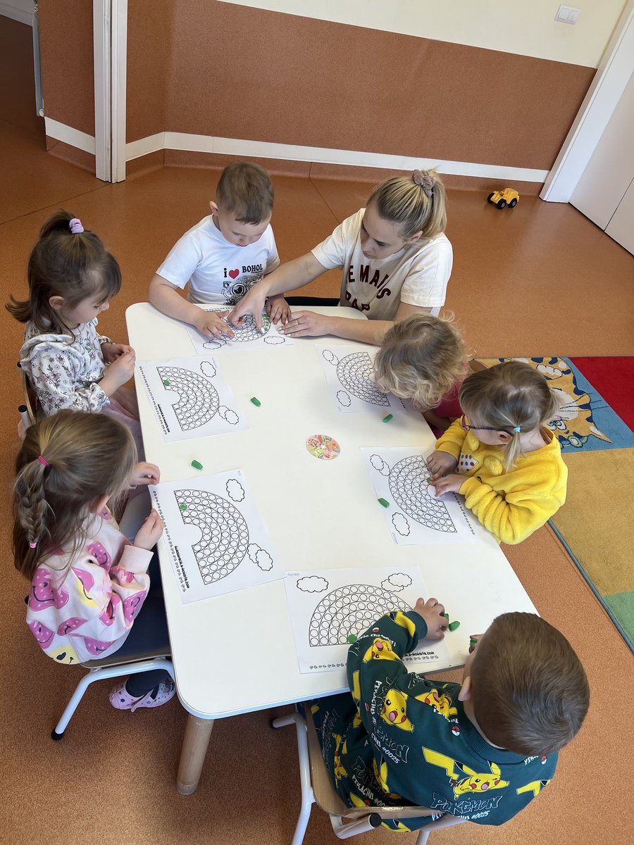 W dniu 03.04 ,,Jeżyki” i ,,Króliczki” obchodziły Dzień Tęczy. Jak każdy wie tęcza to wyjątkowe zjawisko optyczne i meteorologiczne. Nie ważne w jakim wieku jesteśmy każdego zachwyca tak samo. Podczas zajęć dzieci dowiedziały się jak powstaje tęcza, jakie zjawiska pogodowe są potrzebne do tego by tęcza ubarwiła nam niebo. Każda grupa starała się uzyskać taką tęcze poprzez różne doświadczenia. Dzieci przypomniały sobie jakie kolory posiada tęcza oraz przeliczały ile ich jest. Przedszkolaki z wielkim zaangażowaniem wykonywały prace plastyczne, które ubarwiły nam naszą przedszkolną szatnię. Dzień przebieg w wielkiej radości, a uśmiech pojawiał się na każdej dziecięcej buzi.