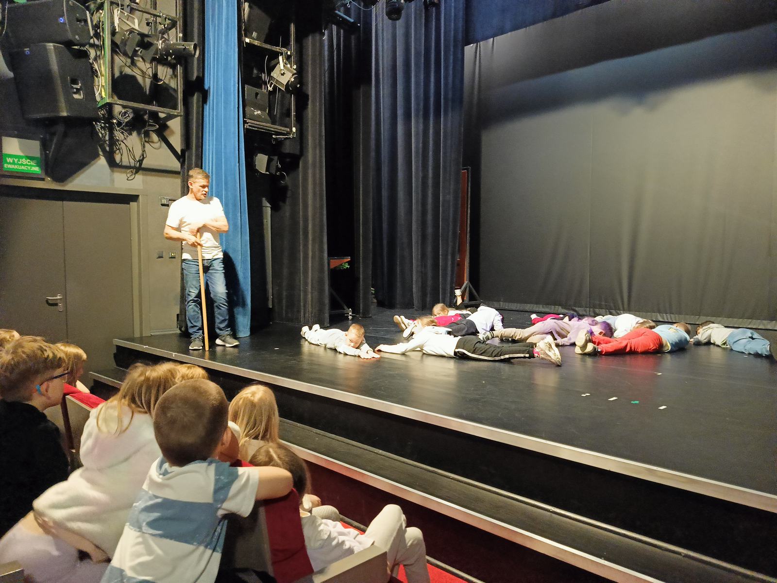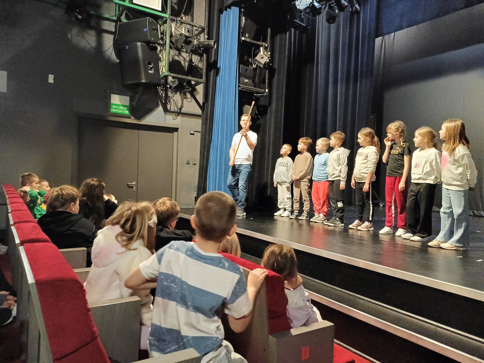 Po spektaklu uczniowie mieli okazję uczestniczyć w lekcji teatralnej, gdzie mogli poznać tajniki sztuki aktorskiej. Prowadzący zajęcia z pasją opowiadał o różnych aspektach teatru, a dzieci mogły spróbować swoich sił w krótkich scenkach. Był to nie tylko świetny sposób na rozwijanie kreatywności, ale również na naukę współpracy i wyrażania siebie.