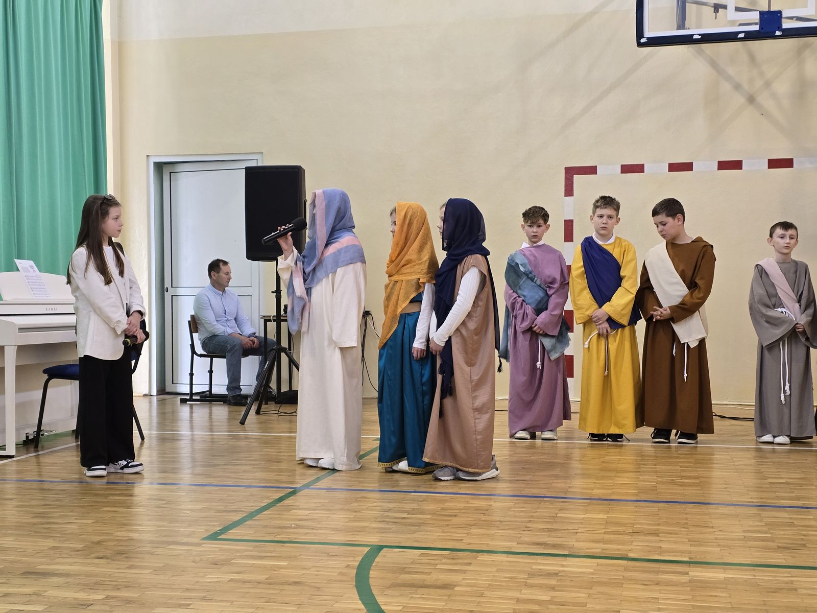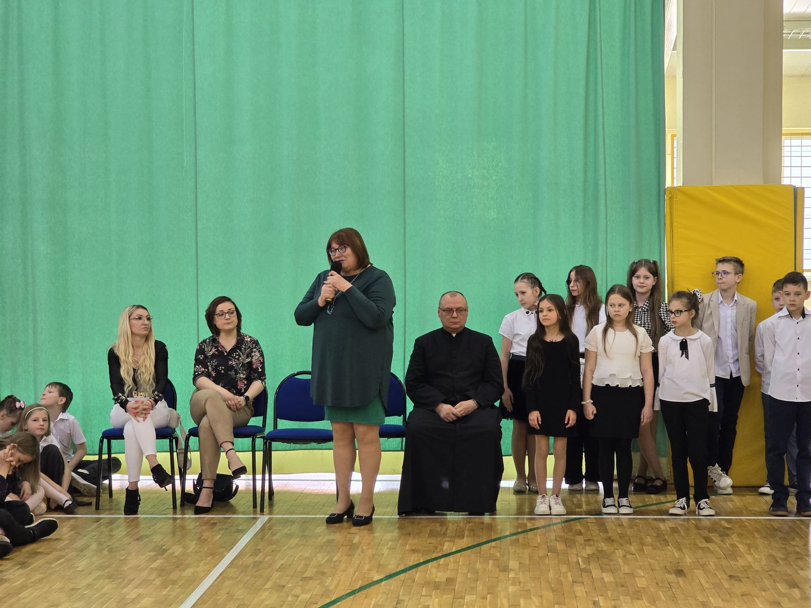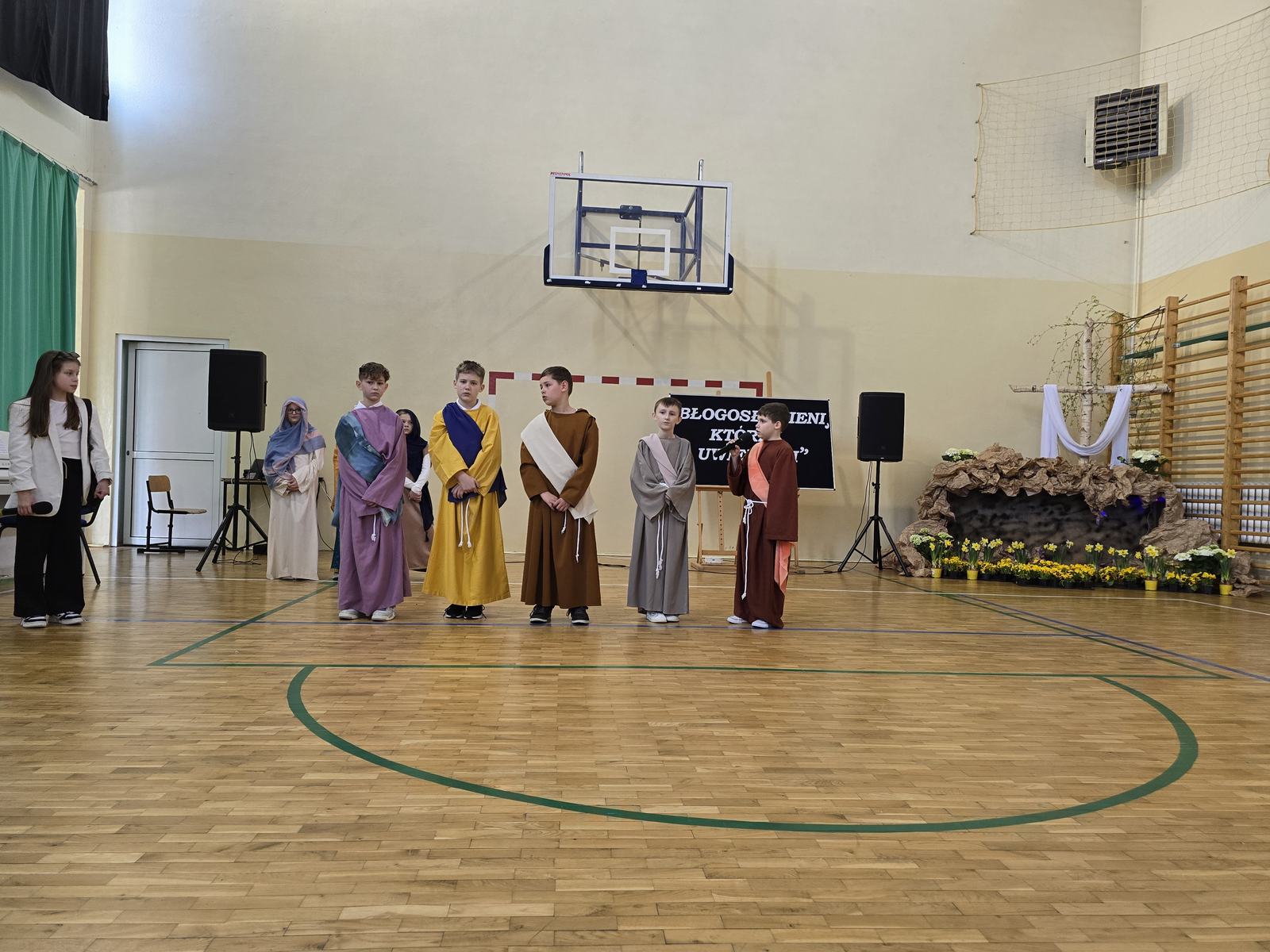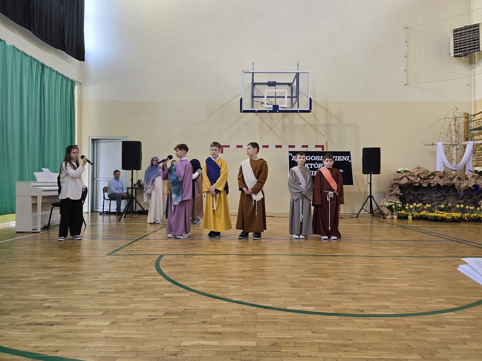 16 kwietnia 2025 r odbyła się w naszej szkole akademia z okazji nadchodzących Świąt Wielkanocnych. Uczniowie, nauczyciele oraz przedstawiciele rodziców zgromadzili się na sali gimnastycznej, aby wspólnie uczcić ten wyjątkowy czas refleksji, nadziei i odrodzenia. Uczniowie klasy IVa przygotowali program artystyczny pt. "Błogosławieni, którzy uwierzyli", który wprowadził zgromadzonych w świąteczny nastrój.