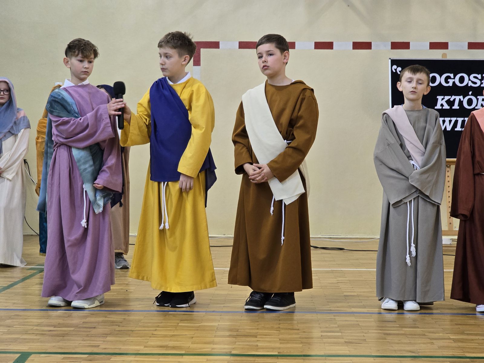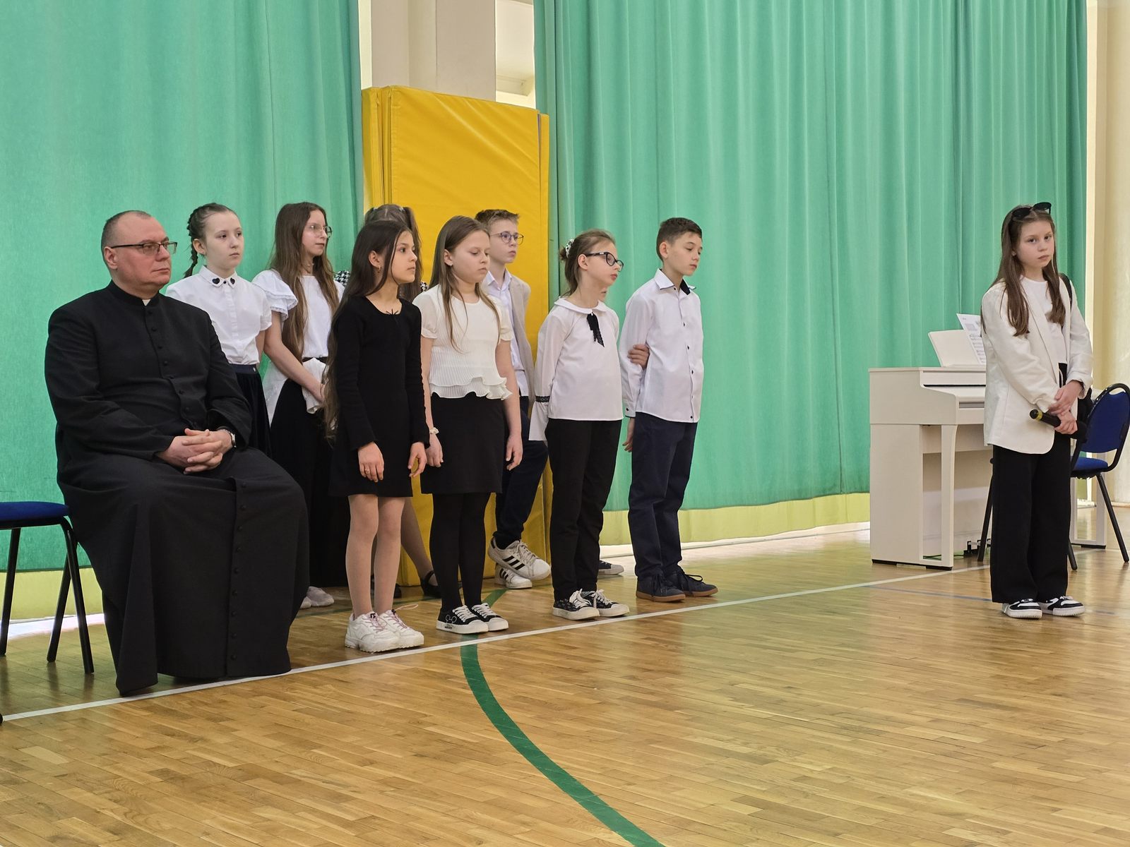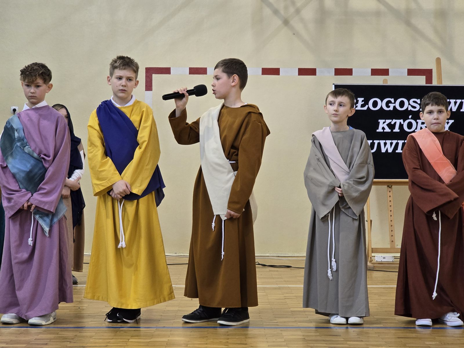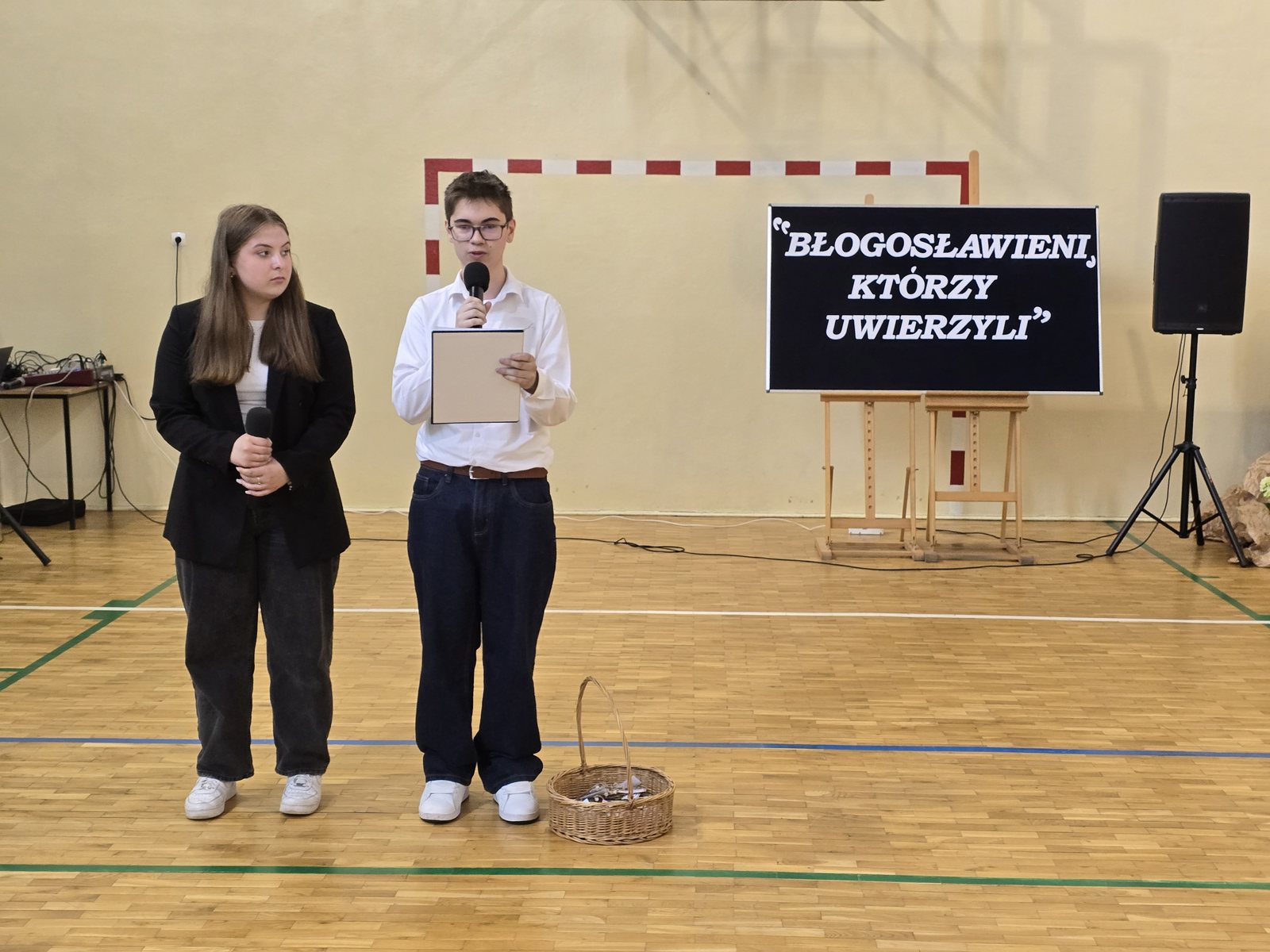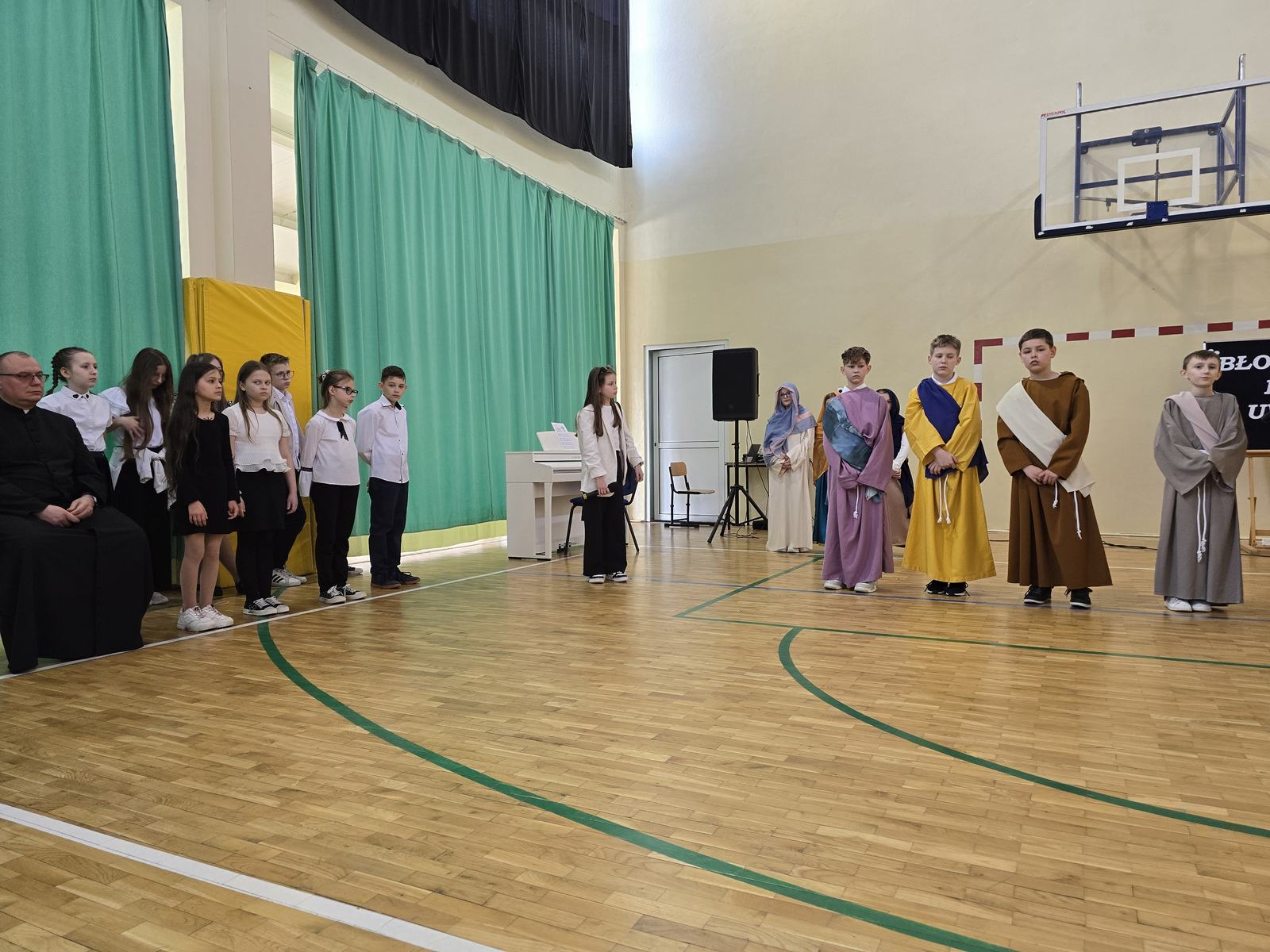 16 kwietnia 2025 r odbyła się w naszej szkole akademia z okazji nadchodzących Świąt Wielkanocnych. Uczniowie, nauczyciele oraz przedstawiciele rodziców zgromadzili się na sali gimnastycznej, aby wspólnie uczcić ten wyjątkowy czas refleksji, nadziei i odrodzenia. Uczniowie klasy IVa przygotowali program artystyczny pt. "Błogosławieni, którzy uwierzyli", który wprowadził zgromadzonych w świąteczny nastrój.