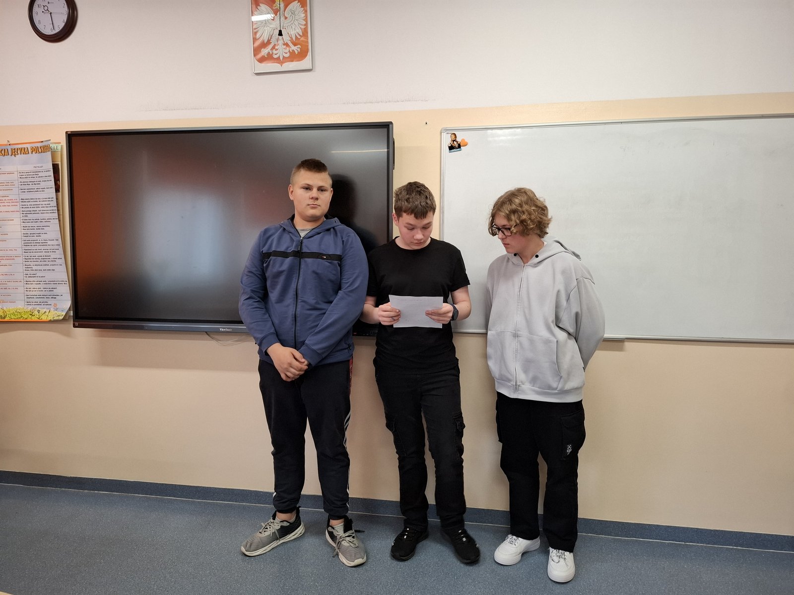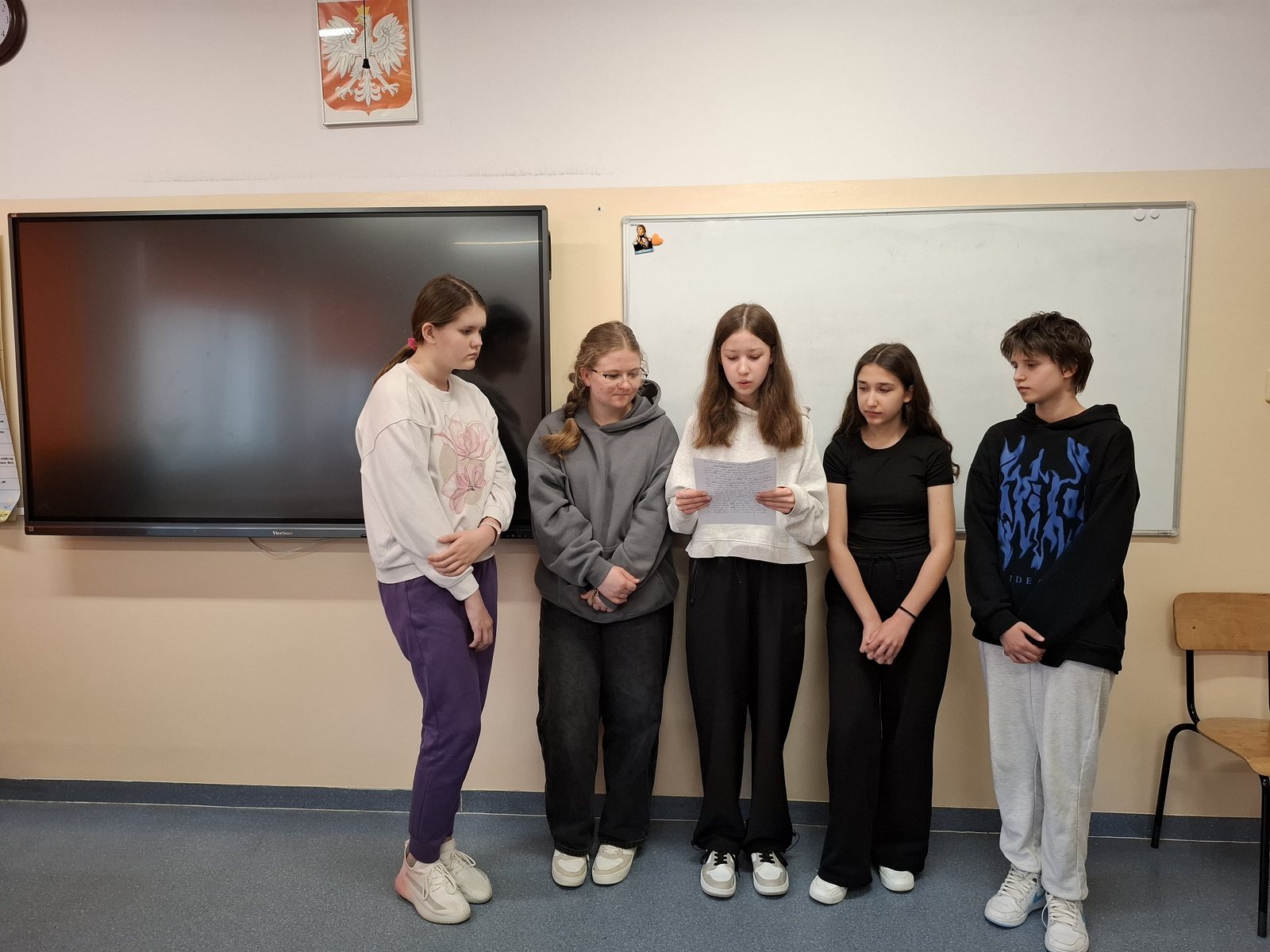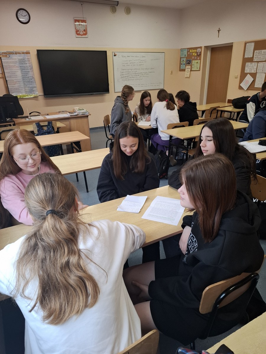 W ramach programu „Twoje dane – Twoja sprawa” w klasie VIIa odbyła się lekcja, podczas której uczniowie napisali rozprawki o konieczności ochrony danych osobowych. Praca w grupach pozwoliła na wspólne poszukiwanie argumentów oraz przykładów konsekwencji udostępniania danych osobowych. Podczas pisania rozprawki uczniowie pracowali bardzo aktywnie i dzielili się swoimi przemyśleniami. Lekcję zakończyła prezentacja wspólnie napisanych prac. Każda z nich została przez klasę nagrodzona brawami.