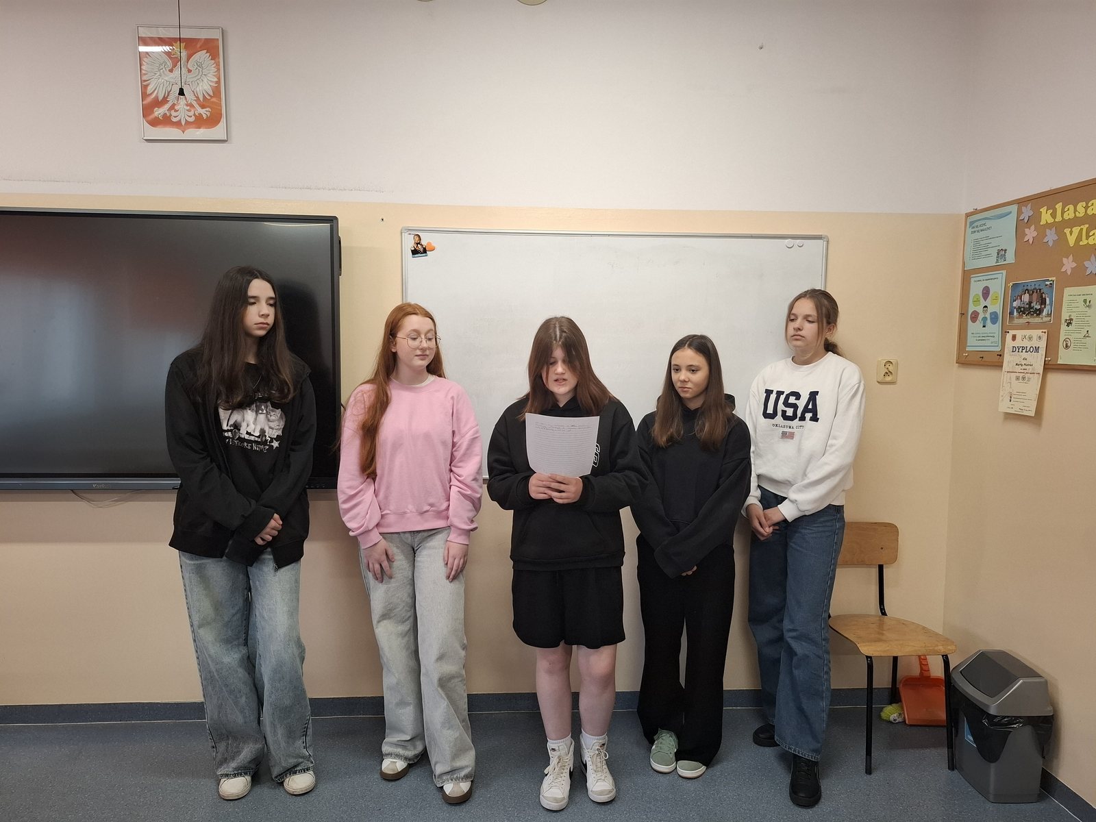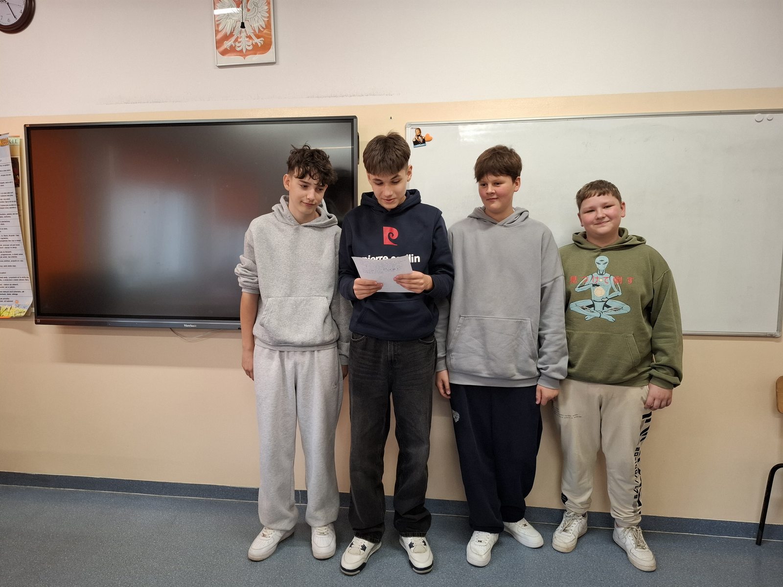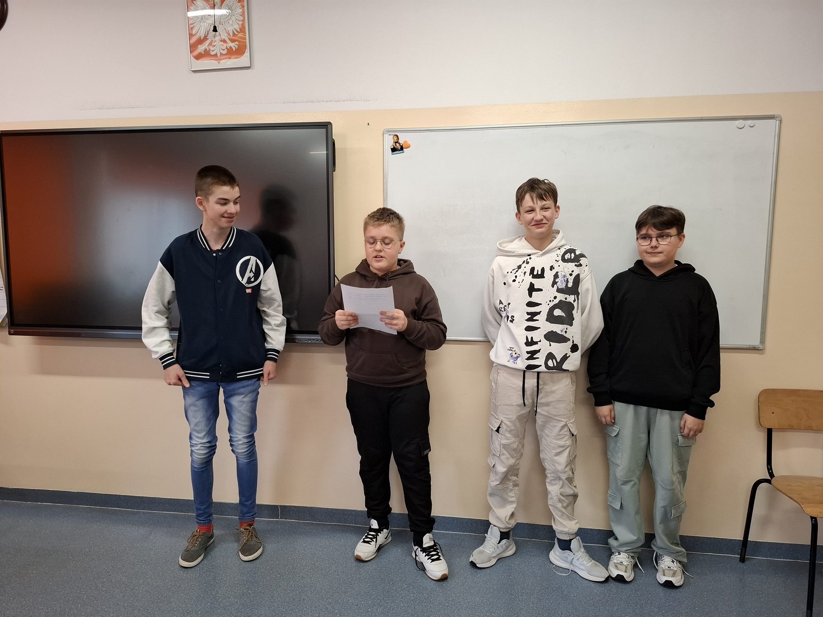 W ramach programu „Twoje dane – Twoja sprawa” w klasie VIIa odbyła się lekcja, podczas której uczniowie napisali rozprawki o konieczności ochrony danych osobowych. Praca w grupach pozwoliła na wspólne poszukiwanie argumentów oraz przykładów konsekwencji udostępniania danych osobowych. Podczas pisania rozprawki uczniowie pracowali bardzo aktywnie i dzielili się swoimi przemyśleniami. Lekcję zakończyła prezentacja wspólnie napisanych prac. Każda z nich została przez klasę nagrodzona brawami.