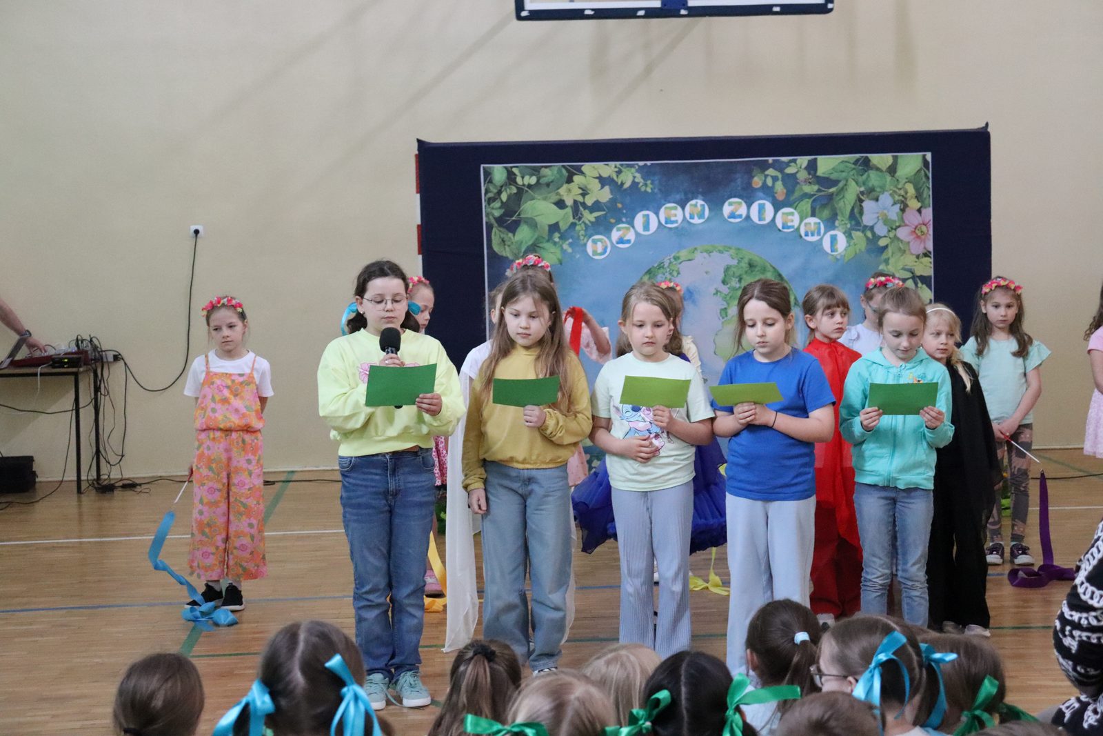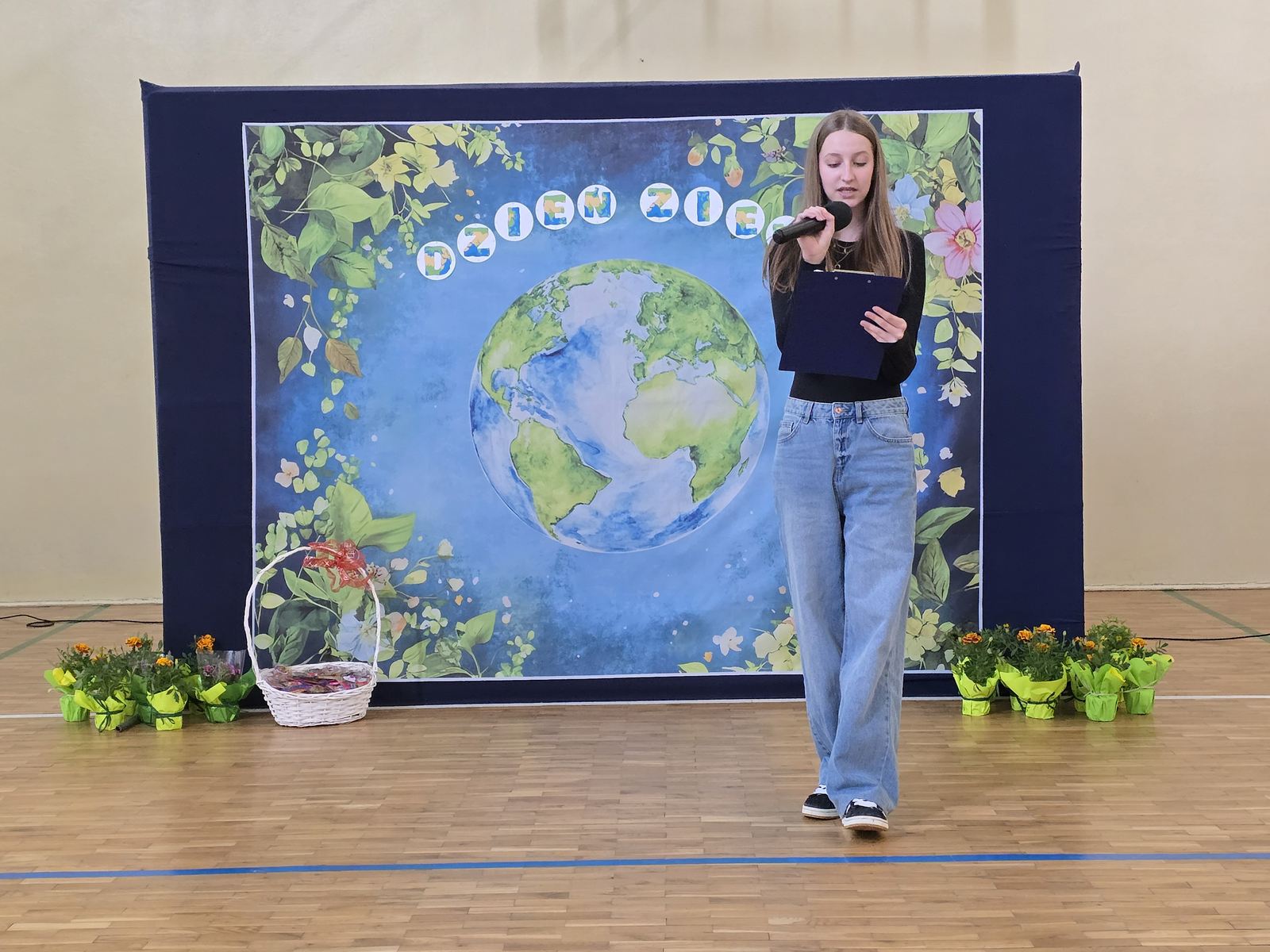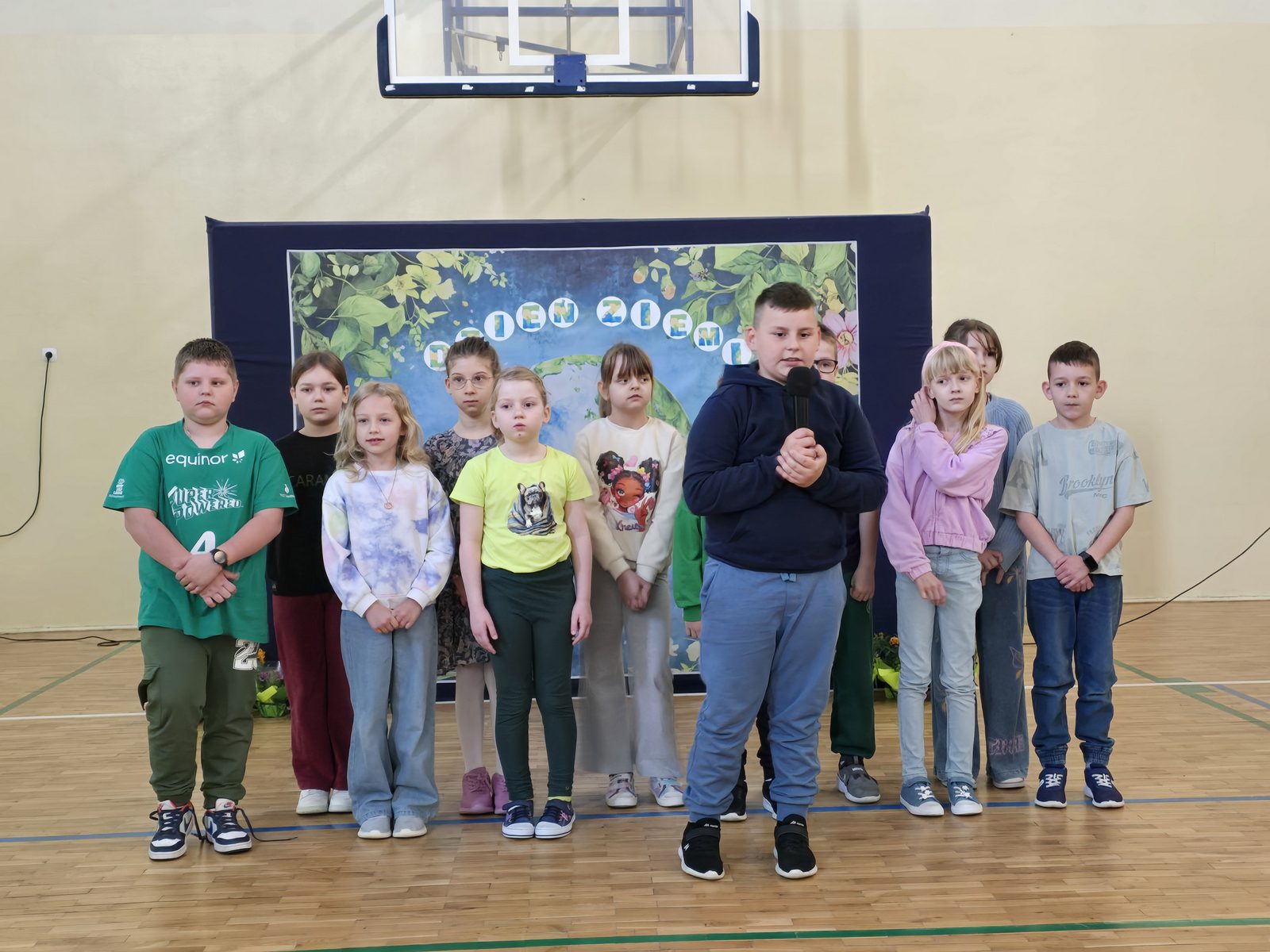 Na wstępie uczniowie z koła teatralnego klas I-III przybliżyli ideę Dnia Ziemi oraz zaprezentowali krótki taniec z przesłaniem dotyczącym skutków zanieczyszczeń środowiska. Młodzi aktorzy nie tylko pokazali swoje umiejętności aktorskie, ale również zainspirowali wszystkich do myślenia o ochronie naszej planety.