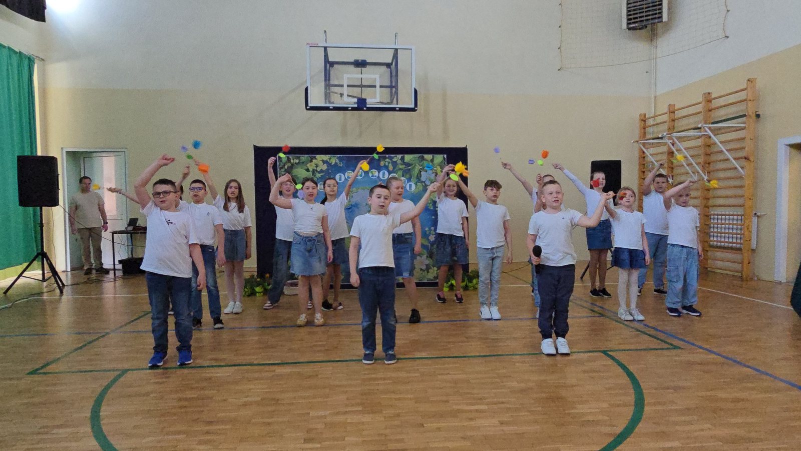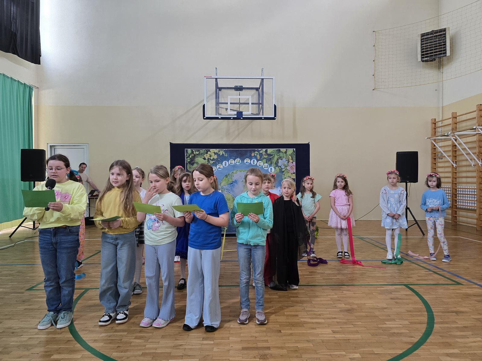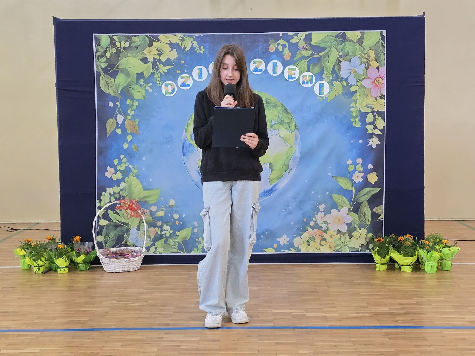 Na wstępie uczniowie z koła teatralnego klas I-III przybliżyli ideę Dnia Ziemi oraz zaprezentowali krótki taniec z przesłaniem dotyczącym skutków zanieczyszczeń środowiska. Młodzi aktorzy nie tylko pokazali swoje umiejętności aktorskie, ale również zainspirowali wszystkich do myślenia o ochronie naszej planety.