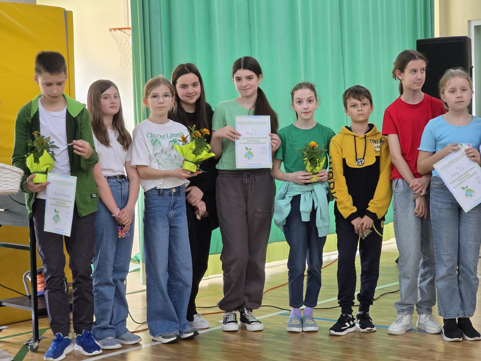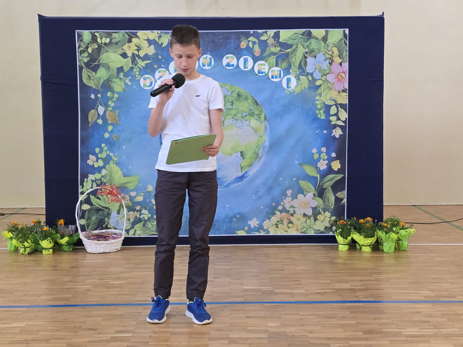 Po występie przyszedł czas na drugi punkt programu – konkurs "Ekologia w wierszu i piosence". Uczniowie mieli za zadanie przygotować wiersze lub piosenki o tematyce ekologicznej, które następnie prezentowali przed jury oraz zgromadzoną publicznością. Uczestnicy wykazali się ogromną kreatywnością, a ich utwory poruszały różnorodne aspekty ochrony środowiska. Nie brakowało emocji – niektóre wystąpienia były pełne humoru, inne zaś skłaniały do refleksji. Wiersze o przyrodzie, piosenki o sprzątaniu świata czy o otaczającej przyrodzie to tylko niektóre z tematów, które zdominowały konkurs. Komisja przyznała nagrody i wyróżnienia w każdej z kategorii.