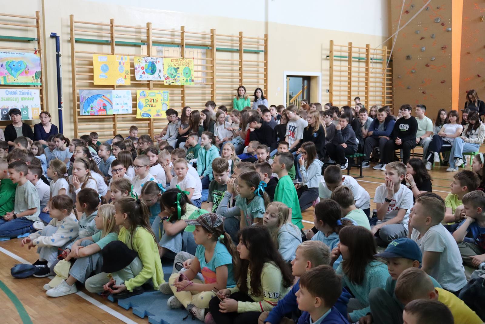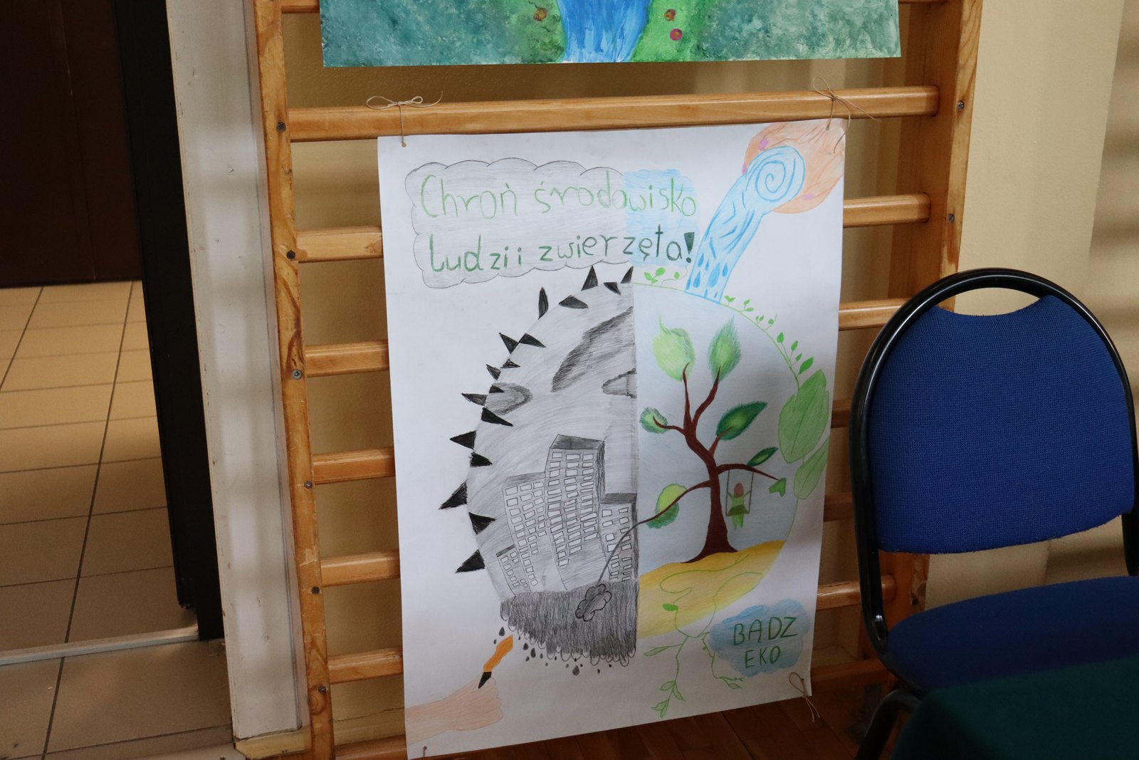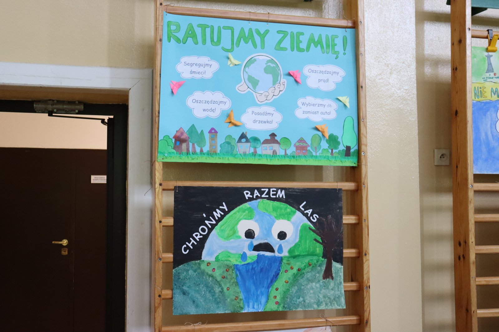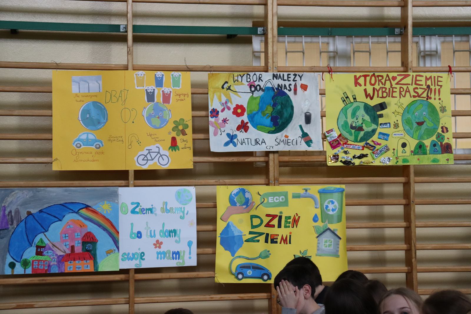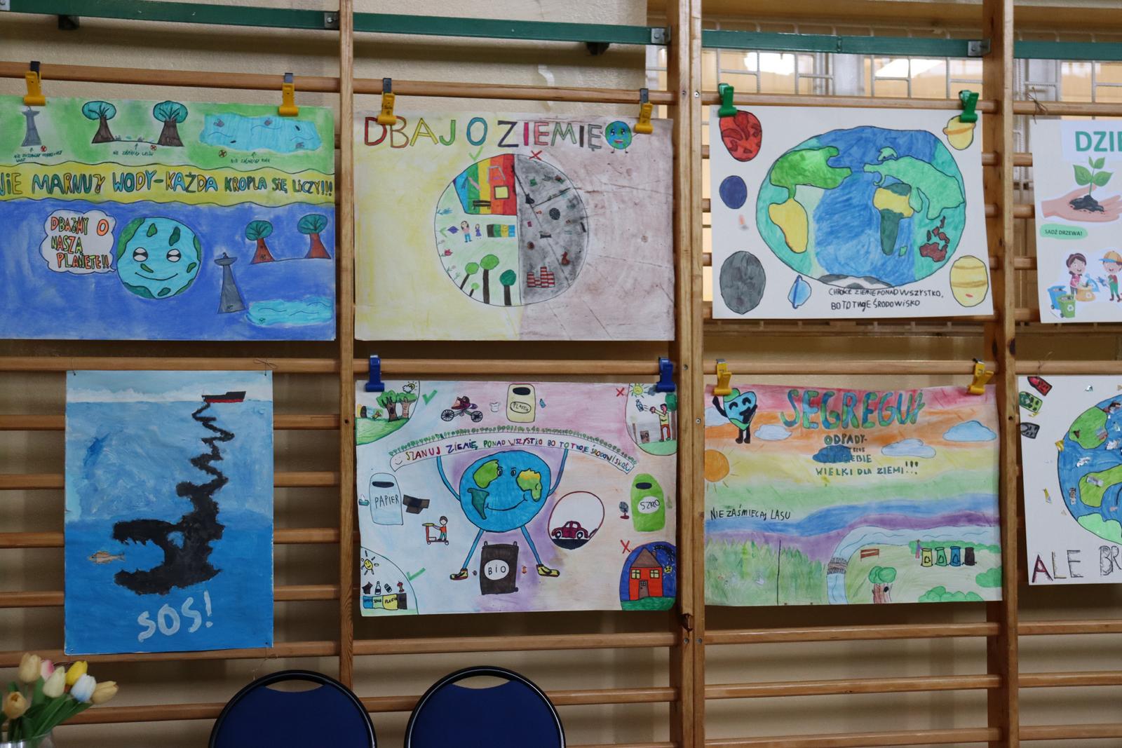 Każda klasa przygotowała plakaty dotyczące ochrony środowiska, które ozdobiły salę, tworząc niepowtarzalną atmosferę.