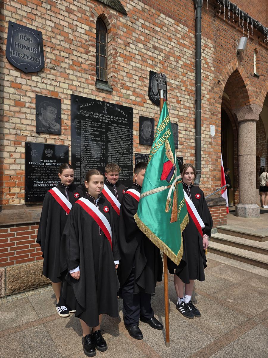 Udział pocztu sztandarowego w mszy świętej z okazji Święta Narodowego Trzeciego Maja