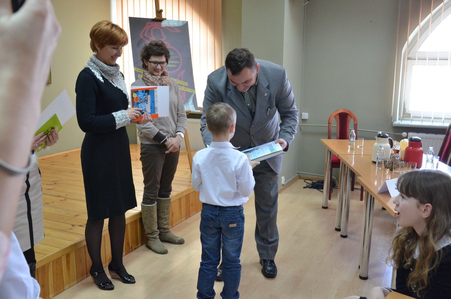 Decyzją jury w kategorii klas I-III I miejsce zajął Jakub Kaniewski z kl. II i zakwalifikował się do etapu wojewódzkiego, który odbędzie się 13 i 14 kwietnia w Warszawiie. W kategorii klas IV-VI wyróżnienie zdobył Mateusz Kot z kl. VIa.