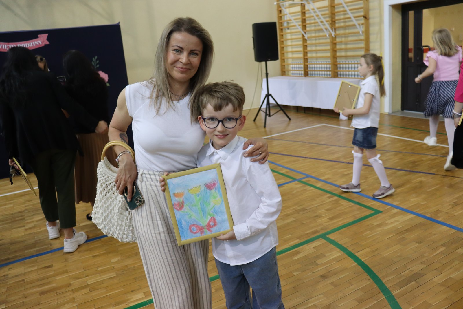 Na zakończenie uroczystości dzieci wręczyły swoim najbliższym samodzielnie wykonane rysunki w ramkach, przygotowane z ogromnym sercem i starannością. Był to symboliczny i wzruszający gest, który sprawił wiele radości wszystkim obecnym.