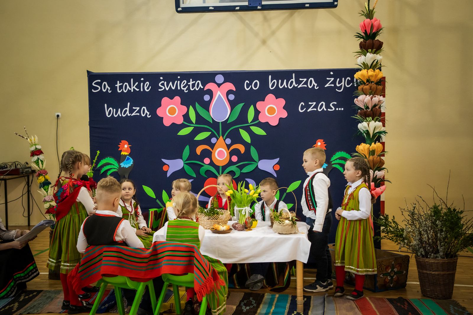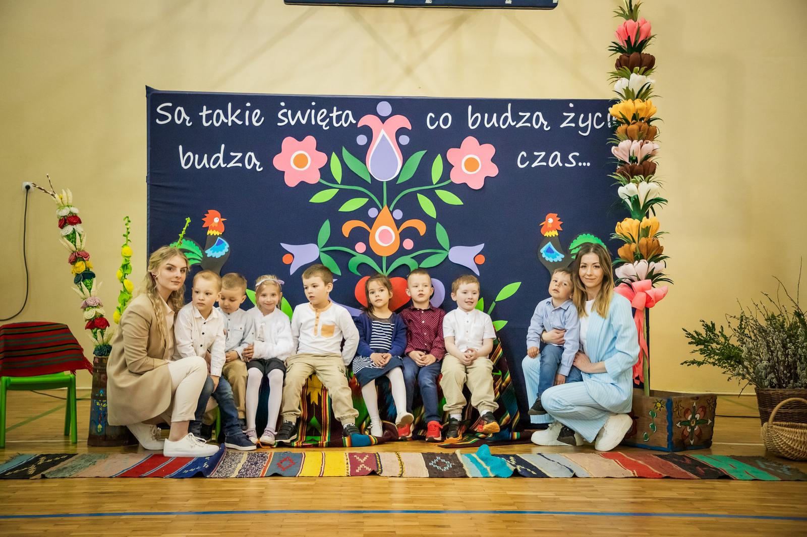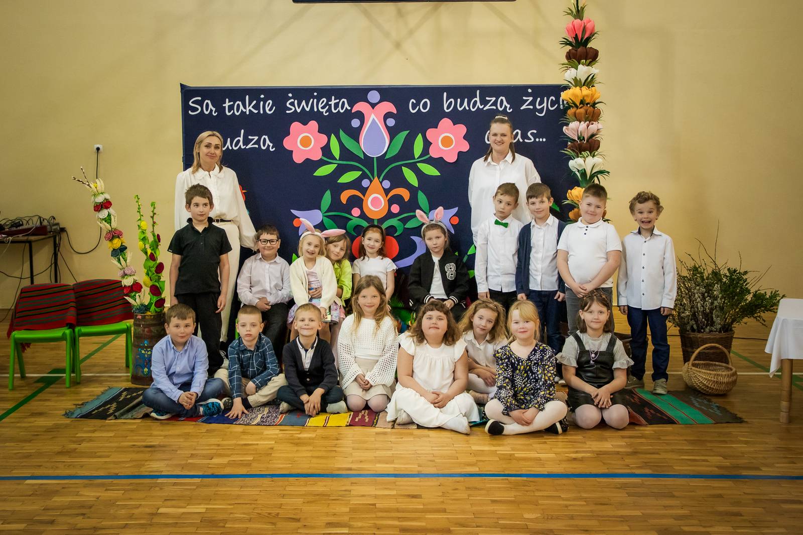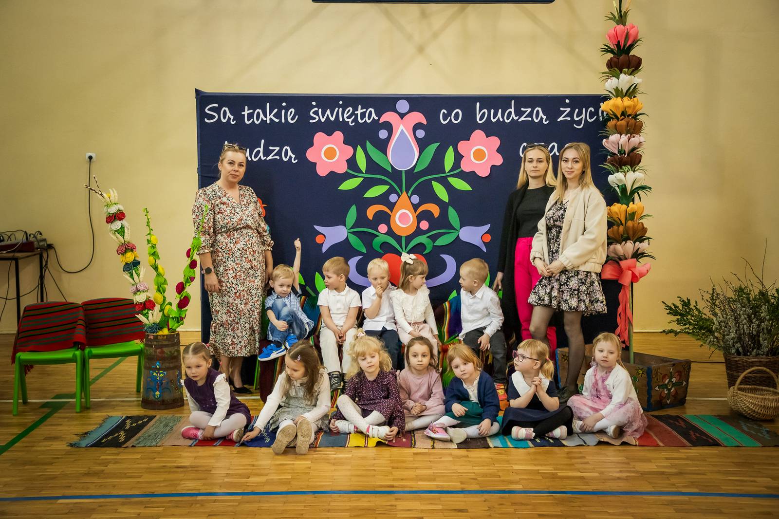 W naszym przedszkolu bardzo starannie przygotowywaliśmy się do Świąt Wielkanocnych. Przedszkolaki przez cały tydzień miały okazję poznać zwyczaje i tradycje wielkanocne. Dzieci malowały i wyklejały kolorowe pisanki, wykonywały kurczaczki, siały rzeżuchę oraz owies. Poznały też wiersze, piosenki i inscenizacje o tematyce wielkanocnej oraz ludowe zabawy związane z tymi świętami. Zwieńczeniem powyższych działań było ,,Uroczyste spotkanie Wielkanocne”. na którym zgromadziły się dzieci, pracownicy przedszkola oraz rodzice. Po przywitaniu wszystkich zgromadzonych, grupa "Misie" zaprezentowała program słowno-muzyczny, w którym opowiedziała o tradycjach wielkanocnych: od Triduum Paschalnego aż po Lany Poniedziałek. Występom dzieci towarzyszył śpiew, taniec i wiersze w których przywoływały wielkanocne obyczaje. Czas ten upłynął wszystkim w serdecznej i podniosłej atmosferze.