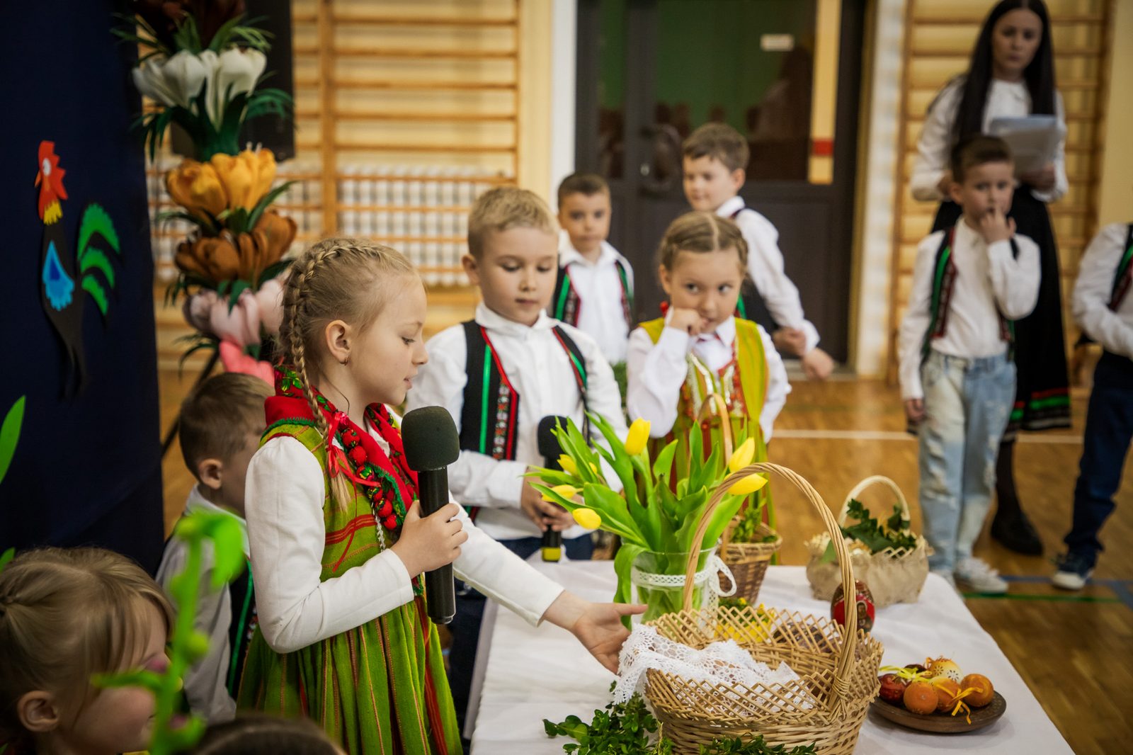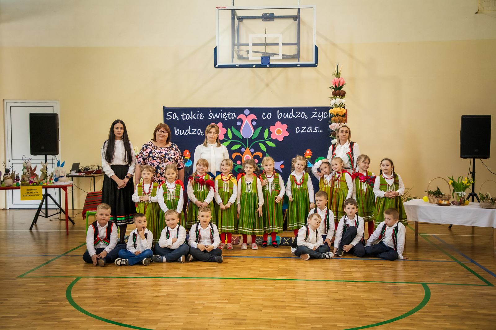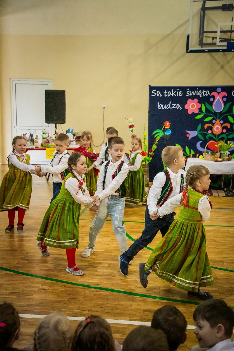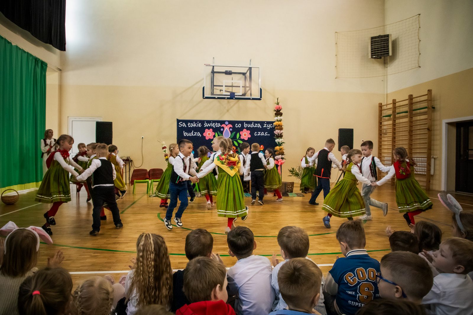 W naszym przedszkolu bardzo starannie przygotowywaliśmy się do Świąt Wielkanocnych. Przedszkolaki przez cały tydzień miały okazję poznać zwyczaje i tradycje wielkanocne. Dzieci malowały i wyklejały kolorowe pisanki, wykonywały kurczaczki, siały rzeżuchę oraz owies. Poznały też wiersze, piosenki i inscenizacje o tematyce wielkanocnej oraz ludowe zabawy związane z tymi świętami. Zwieńczeniem powyższych działań było ,,Uroczyste spotkanie Wielkanocne”. na którym zgromadziły się dzieci, pracownicy przedszkola oraz rodzice. Po przywitaniu wszystkich zgromadzonych, grupa "Misie" zaprezentowała program słowno-muzyczny, w którym opowiedziała o tradycjach wielkanocnych: od Triduum Paschalnego aż po Lany Poniedziałek. Występom dzieci towarzyszył śpiew, taniec i wiersze w których przywoływały wielkanocne obyczaje. Czas ten upłynął wszystkim w serdecznej i podniosłej atmosferze.