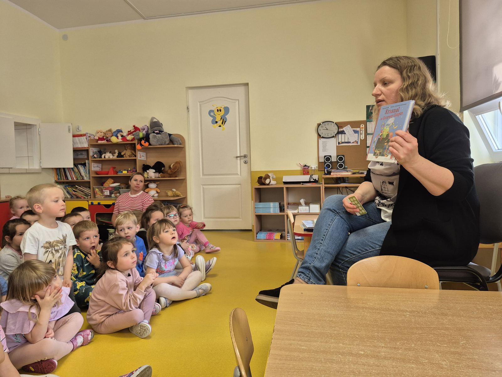14 maja grupy 3 i 4-latków odwiedziła p. Monika Jachimowicz, która pracuje w Gminnej Bibliotece Publicznej w Długosiodle.