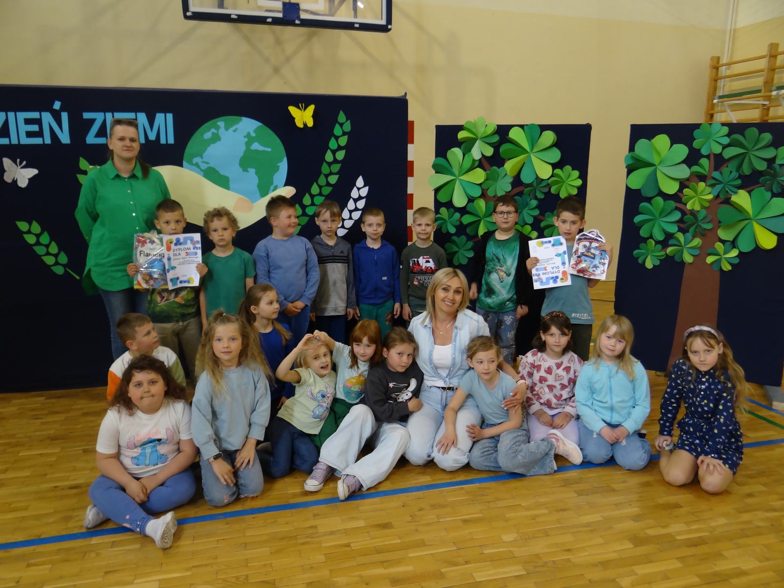 9 maja w naszym przedszkolu obchodziliśmy największe święto ekologiczne na świecie, czyli Dzień Ziemi. Celem święta jest promowanie proekologicznych postaw wśród przedszkolaków oraz budowanie wspólnej odpowiedzialności za naszą planetę. Dzieci w tym dniu przyszły do przedszkola ubrane w kolorach zielonych i niebieskich symbolizujących barwy krajobrazu kuli ziemskiej. Uroczystość rozpoczęła się występem grupy „Pszczółki”, w którym przedszkolaki zaprezentowały wiersze i piosenki zawierające treści ekologiczne. Ważnym działaniem w tym dniu była też akcja sprzątania. Uprzątnęliśmy teren wokół szkoły i przedszkola. Jesteśmy przekonani, że nasze przedszkolaki dbają o Ziemię codziennie, nie tylko od święta!