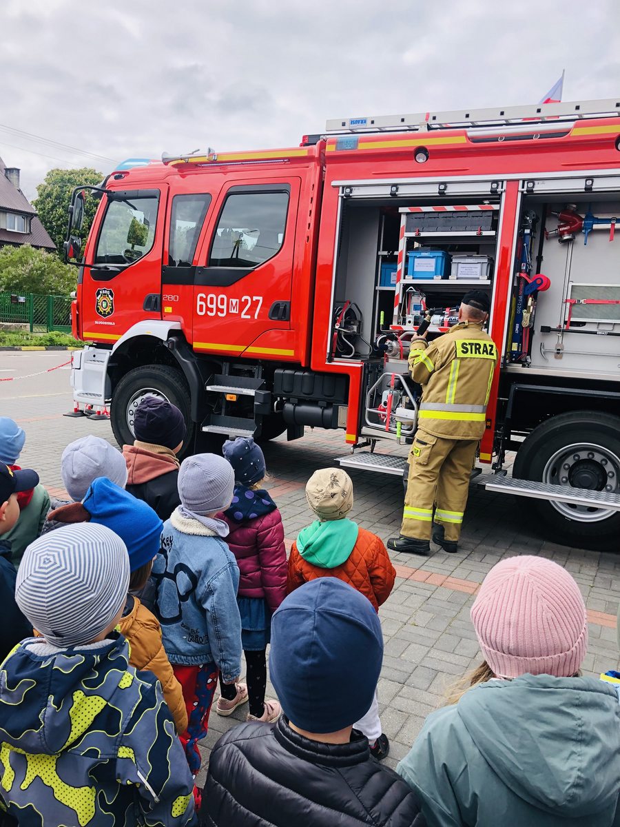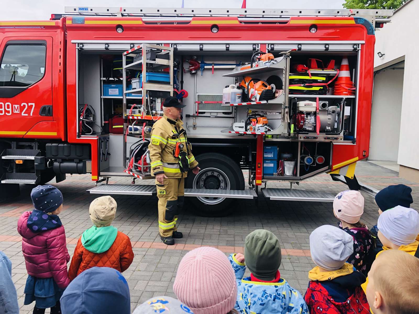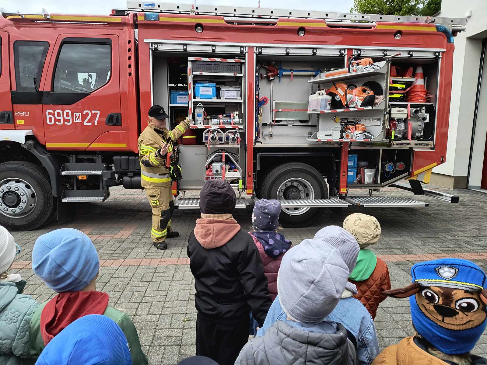 05.05.2025 r. grupy „Pszczółki" i „Motylki" odwiedziły Ochotniczą Straż Pożarną w Długosiodle. Spotkanie prowadził prezes OSP Długosiodło Pan Sylwester Suchta. Przedszkolaki z zachwytem i wielkim zaciekawieniem uczestniczyły w spotkaniu, podczas którego mogły poznać specyfikę pracy strażaków, umundurowanie strażackie oraz niektóre sprzęty jakimi dysponują. Dzieci dowiedziały się, że strażacy nie tylko gaszą pożary, ale również są wzywani do wypadków samochodowych, do zalanych domów, a także ratują zwierzęta. Podczas spotkania Pan Suchta uświadomił dzieciom jak zachowywać się w sytuacjach zagrożenia, oraz jak powiadomić służby ratownicze. Wielką radość przedszkolakom sprawiło obejrzenie z bliska wozu strażackiego oraz zapoznania się z jego wyposażeniem. Dzieci zobaczyły również jak działa wąż strażacki. Serdecznie dziękujemy Panu Sylwestrowi Suchcie za spotkanie. Wiedza, którą dzieci nabyły utrwalana będzie przy każdej okazji podczas zajęć, aby dzieci nabrały pewności siebie w trudnych sytuacjach i mogły udzielić pomocy sobie i innym. Dzięki takim spotkaniom dzieci poznają a zarazem szanują ciężką i odpowiedzialną pracę strażaka, wiedzą jak dbać o własne i innych bezpieczeństwo, kształtują odpowiednie zachowania w trudnych sytuacjach, zaznajamiają się z sytuacjami, w których powinny korzystać z numerów alarmowych.